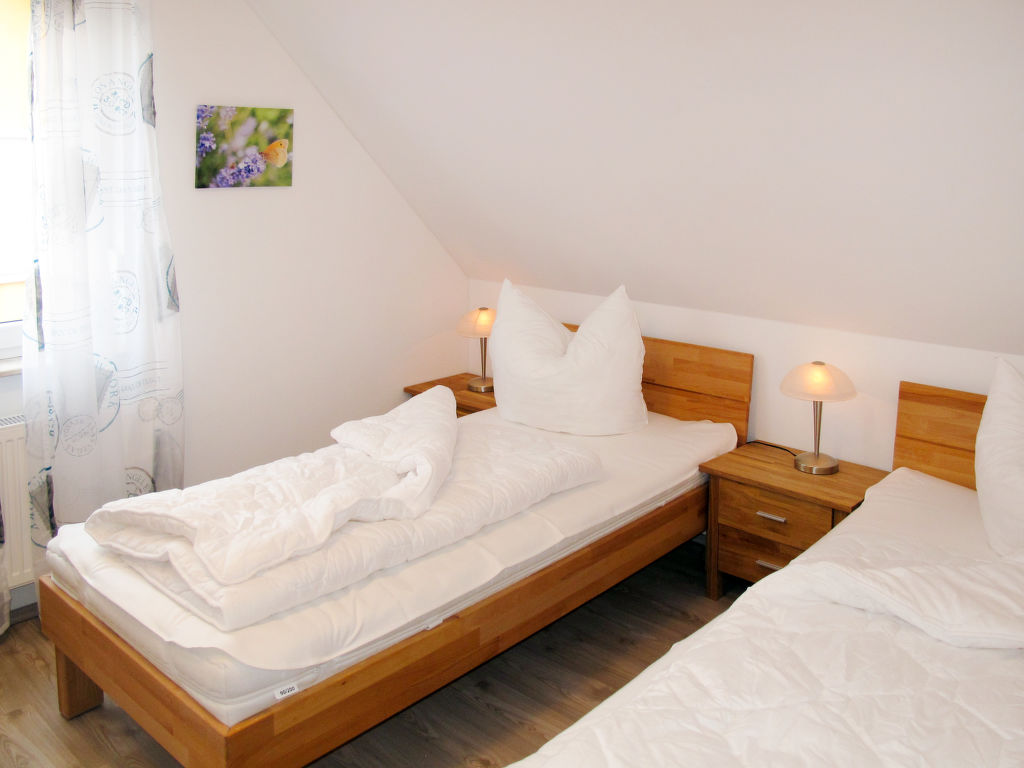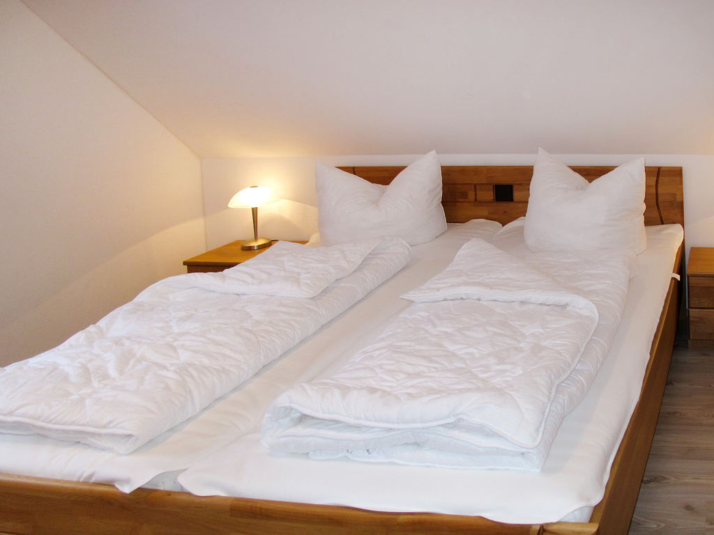 5-Zimmer-Haus 100 m2 auf 2 Stockwerken. Modern eingerichtet: Wohn-/Esszimmer mit Sat-TV, Radio und CD. Ausgang zur Terrasse. 1 Doppelzimmer. Kochnische (Backofen, Geschirrspüler, 4 Glaskeramikherd Platten, Toaster, Wasserkocher, elektrische Kaffeemaschine). Dusche/WC. Obergeschoss: 2 abgeschrägte Doppelzimmer. 1 abgeschrägtes Zimmer mit 2 Schlafmöglichkeiten. Dusche/WC. G-Heizung. Parkettböden. Terrasse, Garten 300 m2. Terrassenmöbel, Gartengrill (mobil). Zur Verfügung: Kinderhochstuhl, Babybett (extra). Parkplatz beim Haus. Bitte beachten: Nichtraucher-Haus. 1 Haustier/Hund erlaubt. Rauchmelder. Internetzugang nur an der Rezeption.