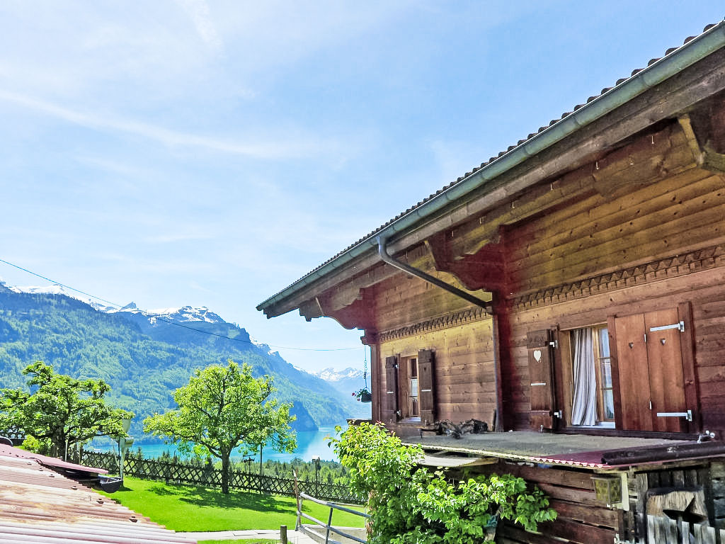 Oberschwanden 2 km von Brienz: Sehr schönes, gemütliches Chalet "Boden 19", Baujahr 1988, renoviert im Jahre 2014, umgeben von Bäumen und Wiesen. Ruhige, sonnige, erhöhte Lage am Hang, in einer Sackgasse. Zur Mitbenutzung: naturbelassenes Grundstück. Im Hause: Skiraum, Zentralheizung, Waschmaschine (zur Mitbenutzung). 160 m lange schmale Zufahrt. Parkplatz beim Haus. Einkaufsgeschäft 1 km, Lebensmittelgeschäft 2.6 km, Restaurant 1.9 km, Bushaltestelle 250 m, Bahnstation "Brienz" 2.5 km, Freibad 1.7 km. Wanderwege ab Haus 20 m, Skisportanlagen 17 km. Nahe gelegene Sehenswürdigkeiten: Freilichtmuseum Ballenberg, Giessbach Wasserfälle. Bekannte Skigebiete sind gut erreichbar: Meiringen - Hasliberg, Brienz Axalp. Bekannte Seen in der Umgebung sind gut erreichbar: Brienzersee. Wandergebiete: Haslital, Rosenlaui. Bitte beachten: Der Besitzer wohnt auf dem gleichen Grundstück.