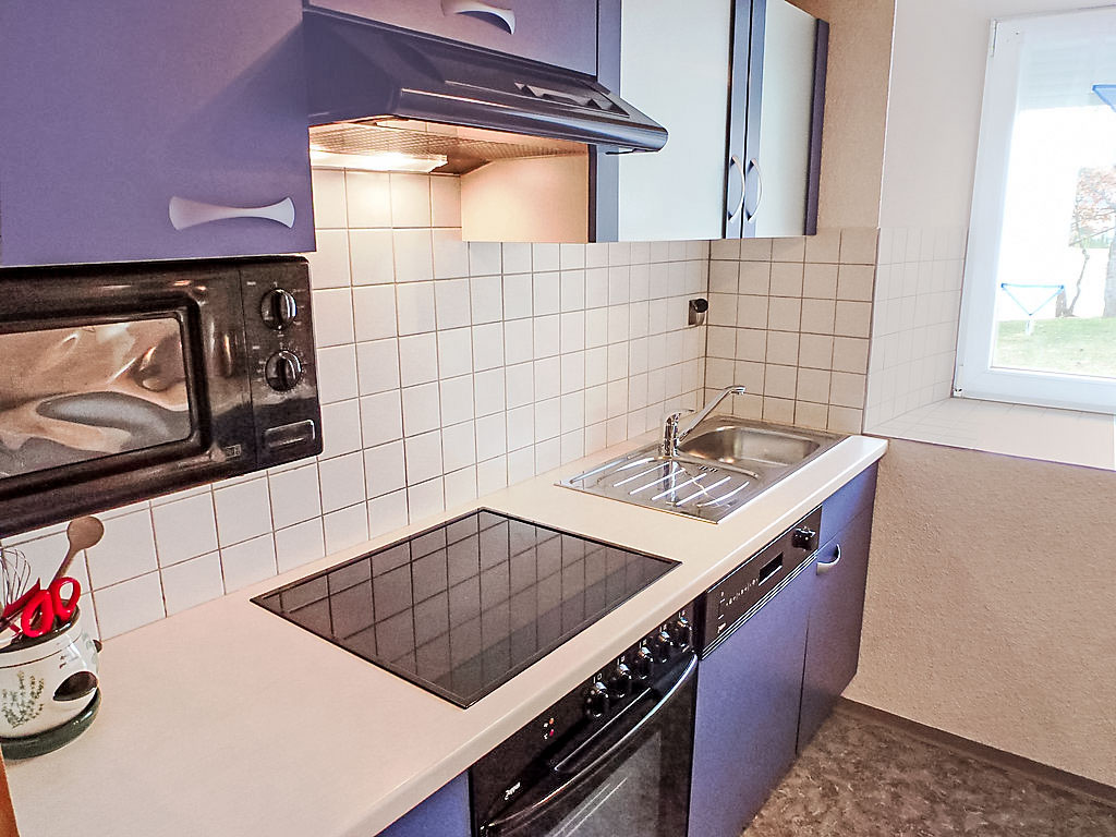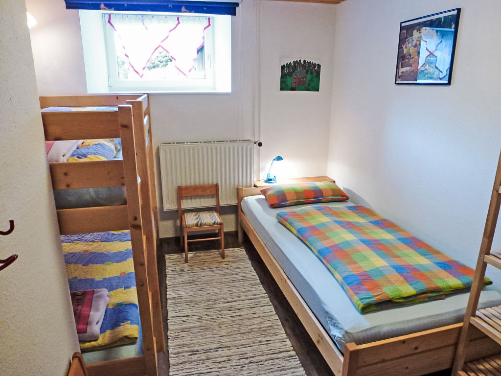 3-Zimmer-Wohnung 90 m2, im Erdgeschoss. Hell, gemütlich eingerichtet: Wohn-/Esszimmer mit Kabel-TV (Flachbildschirm), Stereoanlage und DVD. 1 Doppelzimmer. Ausgang zur Terrasse. 1 Zimmer mit 1 Bett (90 cm, Länge 200 cm), 1 x 2 Etagenbetten (90 cm, Länge 200 cm). Küche (Backofen, Geschirrspüler, 4 Glaskeramikherd Platten, Mikrowelle, elektrische Kaffeemaschine). Sep. WC, Bad/Dusche/WC. Grosse Terrasse. Terrassenmöbel, Gartengrill (mobil). Zur Verfügung: Waschmaschine (extra). Internet (Wireless LAN, gratis). Bitte beachten: Nichtraucher-Unterkunft.