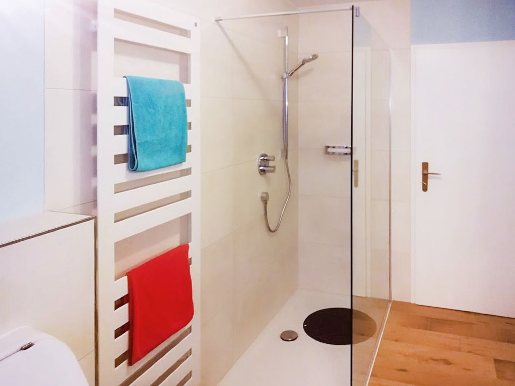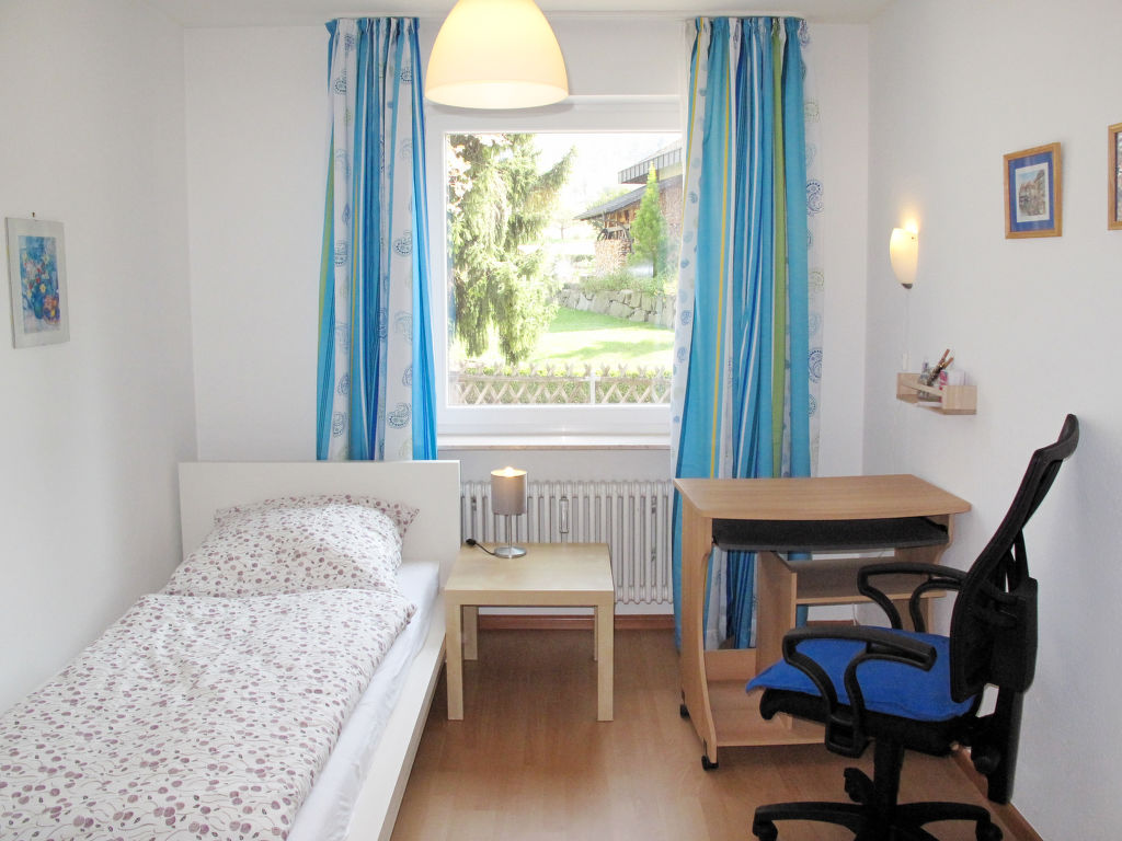 4-Zimmer-Wohnung 112 m2, im erhöhten Erdgeschoss. Hell, einfach eingerichtet: Wohn-/Schlafzimmer mit 1 Doppeldiwanbett, Essecke, Kabel-TV und DVD. Ausgang zum Balkon, zur Terrasse. 1 Zimmer mit 1 Doppelbett. 1 Zimmer mit 1 Bett. 1 Zimmer mit 1 Bett. Küche (Backofen, Geschirrspüler, 4 Glaskeramikherd Platten, Toaster, Wasserkocher, Mikrowelle, elektrische Kaffeemaschine). Ausgang zum Balkon. Dusche/WC, sep. WC. Ölheizung. Parkettböden. Balkon, Terrasse, Gartensitzplatz. Terrassenmöbel, Balkonmöbel, Gartengrill, Liegestühle (2). Zur Verfügung: Kinderhochstuhl, Babybett. Internet (Wireless LAN, gratis). Bitte beachten: Nichtraucher-Unterkunft. Rauchmelder.