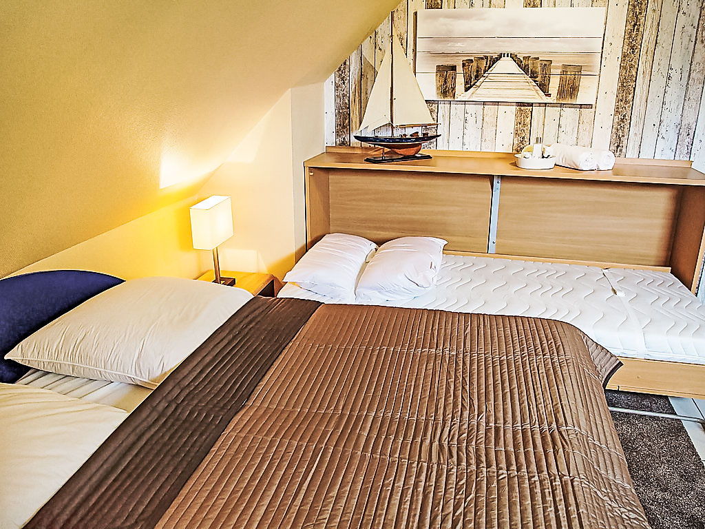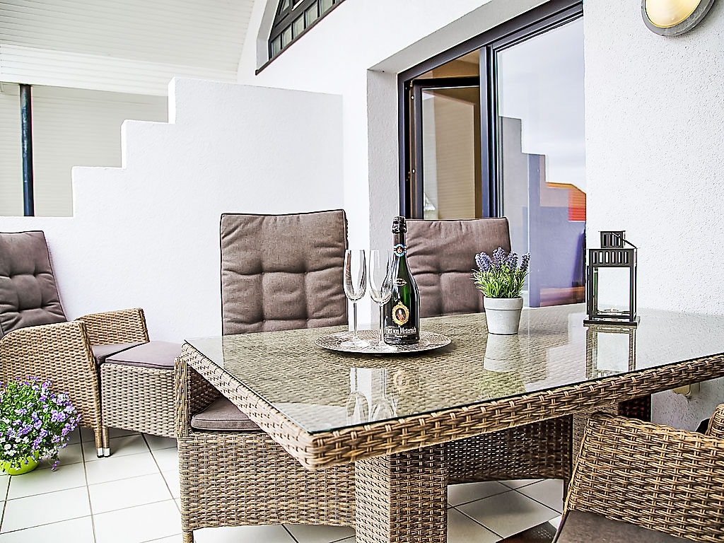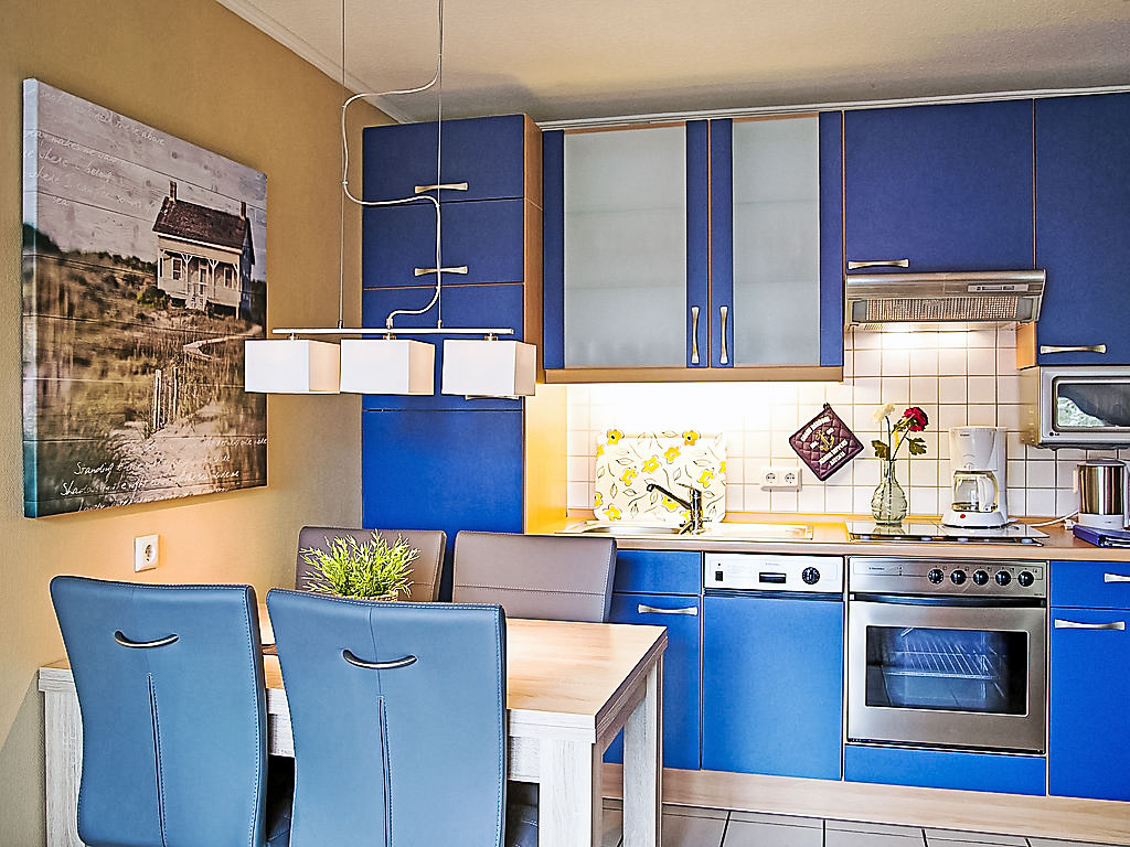 "Witthuus-Langeoog", 3-Zimmer-Wohnung 74 m2 im 1. Stock. Teilweise abgeschrägt, komfortabel und stilvoll eingerichtet: Wohn-/Esszimmer 25 m2 mit Sat-TV (Flachbildschirm), Stereoanlage und DVD. Ausgang zum Balkon. 1 Zimmer 12 m2 mit 1 Doppelbett (2 x 200 cm, Länge 90 cm), 1 Wandschrankbett (190 cm, Länge 90 cm). 1 Zimmer 12 m2 mit 1 Doppelbett (2 x 90 cm, Länge 200 cm). Kochnische (Backofen, Geschirrspüler, 4 Glaskeramikherd Platten, Toaster, Wasserkocher, Mikrowelle, elektrische Kaffeemaschine). Dusche/WC. Fussbodenheizung. Balkon 15 m2, Südostlage. Balkonmöbel, Elektrogrill, Liegestühle. Zur Verfügung: Kinderhochstuhl, Haartrockner. Internet (Wireless LAN, gratis). Parkplatz beim Haus. Bitte beachten: Nichtraucher-Unterkunft.