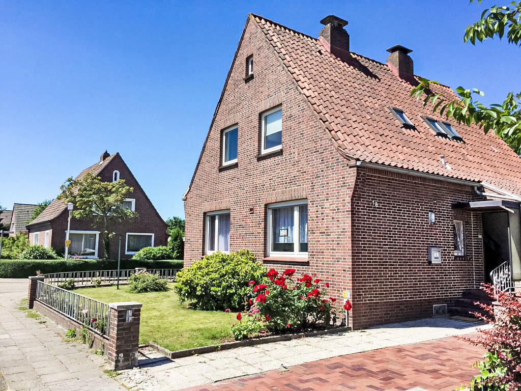 Zweifamilienhaus. 1 km vom Zentrum von Norden, ruhige Lage, 4.5 km vom Meer, 4.5 km vom Strand. Im Hause: Zentralheizung. Einkaufsgeschäft, Restaurant, Bäckerei, Bushaltestelle 400 m, Bahnstation 2.5 km, Sandstrand 4.5 km, Freibad 14 km, Hallenbad 4.5 km. Golfplatz (9 Loch) 5.5 km, Surfschule 4 km, Tennishalle 2.5 km, Minigolf 4 km.