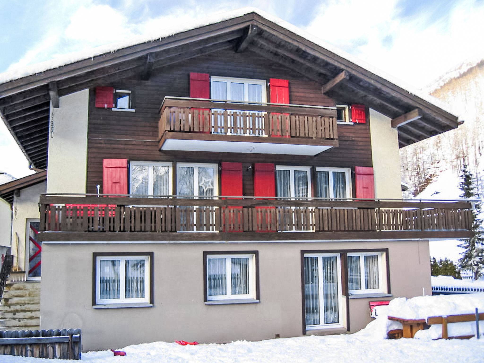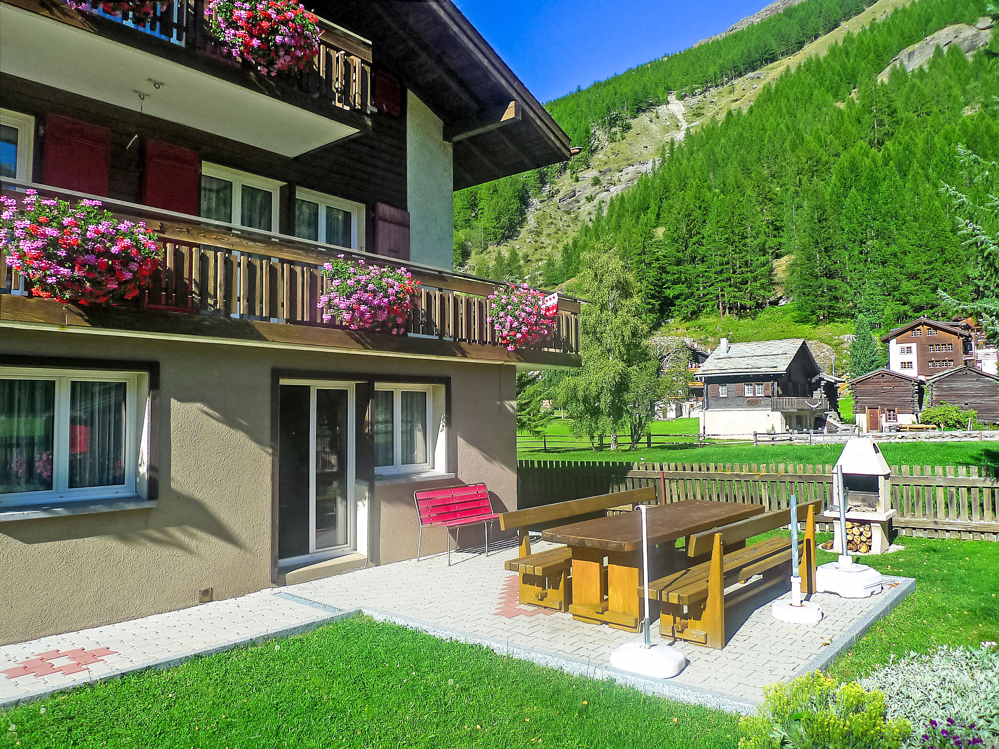 Chalet "Amara", auf 2 Stockwerken, umgeben von Bäumen und Wiesen. Ausserhalb des Ortes, 2.5 km vom Zentrum von Saas Grund, ruhige Lage, an einer Strasse. Zur Alleinbenutzung: Garten. Gartenmöbel, Grill. Parkplatz beim Haus. Einkaufsgeschäft 2 km, Restaurant 300 m, Bushaltestelle 100 m. Skisportanlagen 2.5 km.