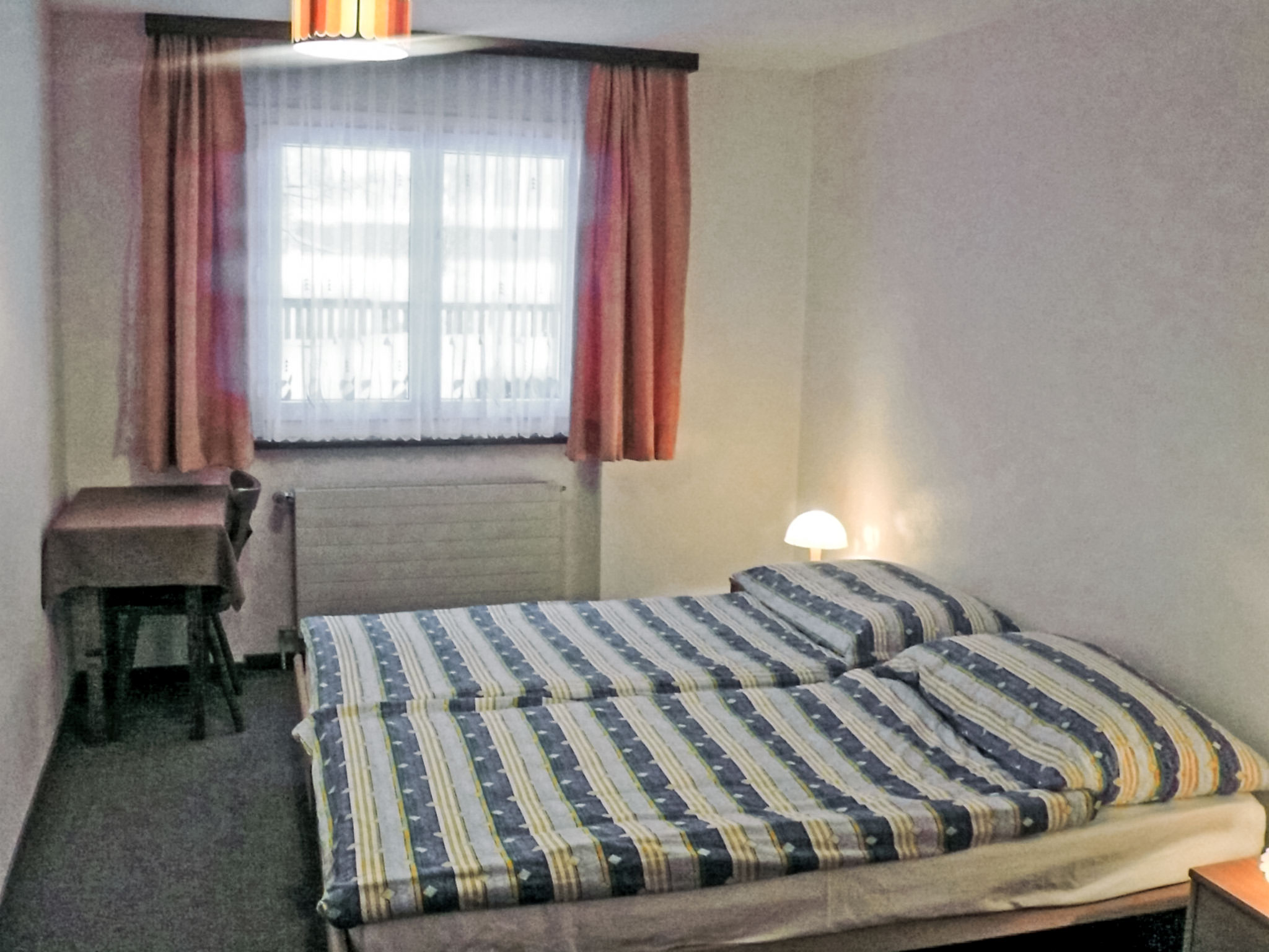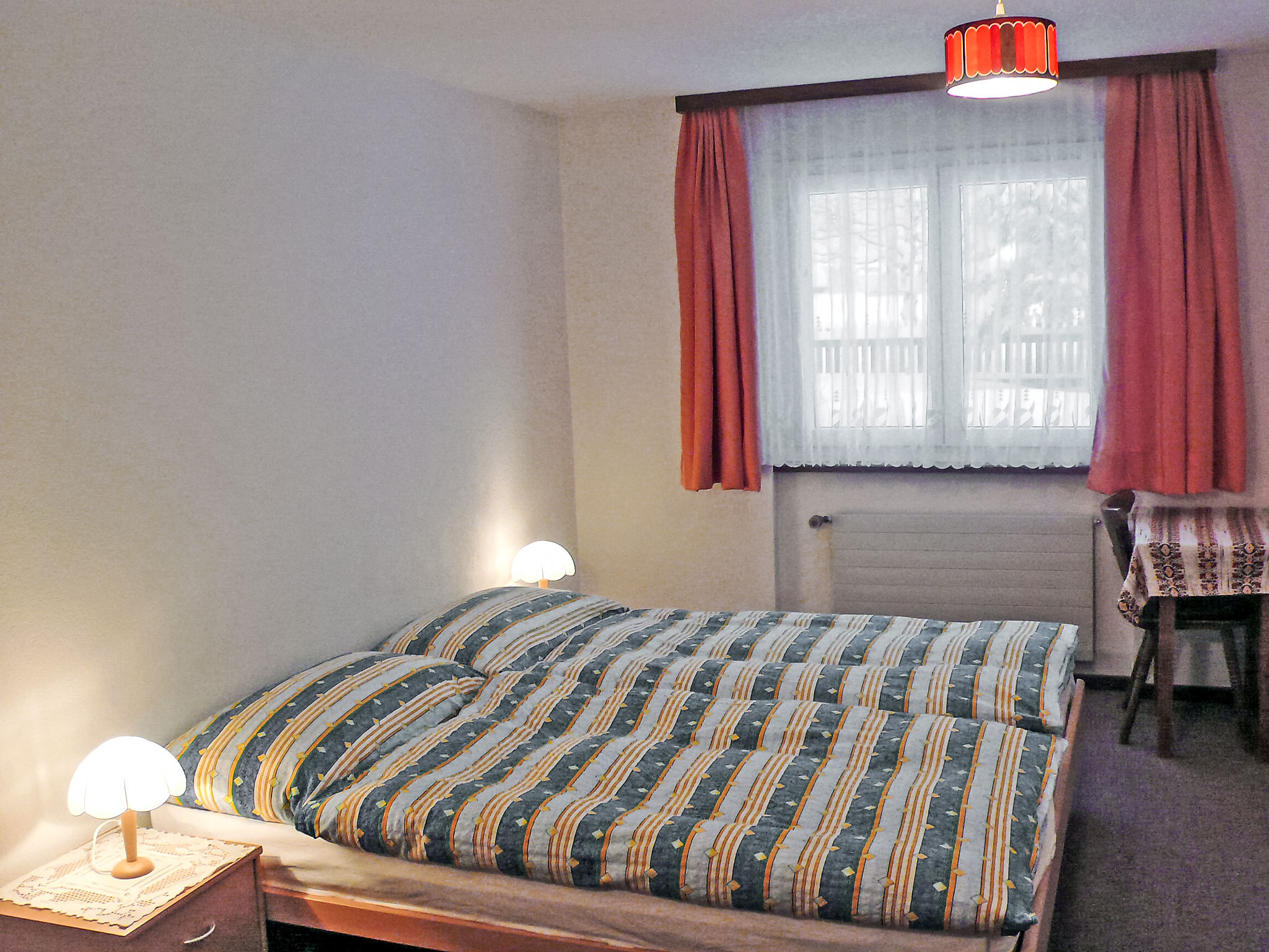 3-Zimmer-Wohnung 65 m2, im Erdgeschoss. Gemütlich eingerichtet: Wohn-/Esszimmer mit Sat-TV, Flachbildschirm und Radio. Ausgang zum Garten, zum Gartensitzplatz. 2 Doppelzimmer, jedes Zimmer mit 2 Betten und Waschbecken. Offene Küche (Backofen, Geschirrspüler, 4 Glaskeramikherd Platten, Mikrowelle). Dusche/WC. Grosser Gartensitzplatz. Gartengrill, Liegestühle. Sehr schöne Sicht auf die Berge und die Landschaft. Zur Verfügung: Internet (Wireless LAN, gratis). Parkplatz beim Haus. Bitte beachten: Nichtraucher-Unterkunft. 2 Haustiere/Hunde erlaubt.