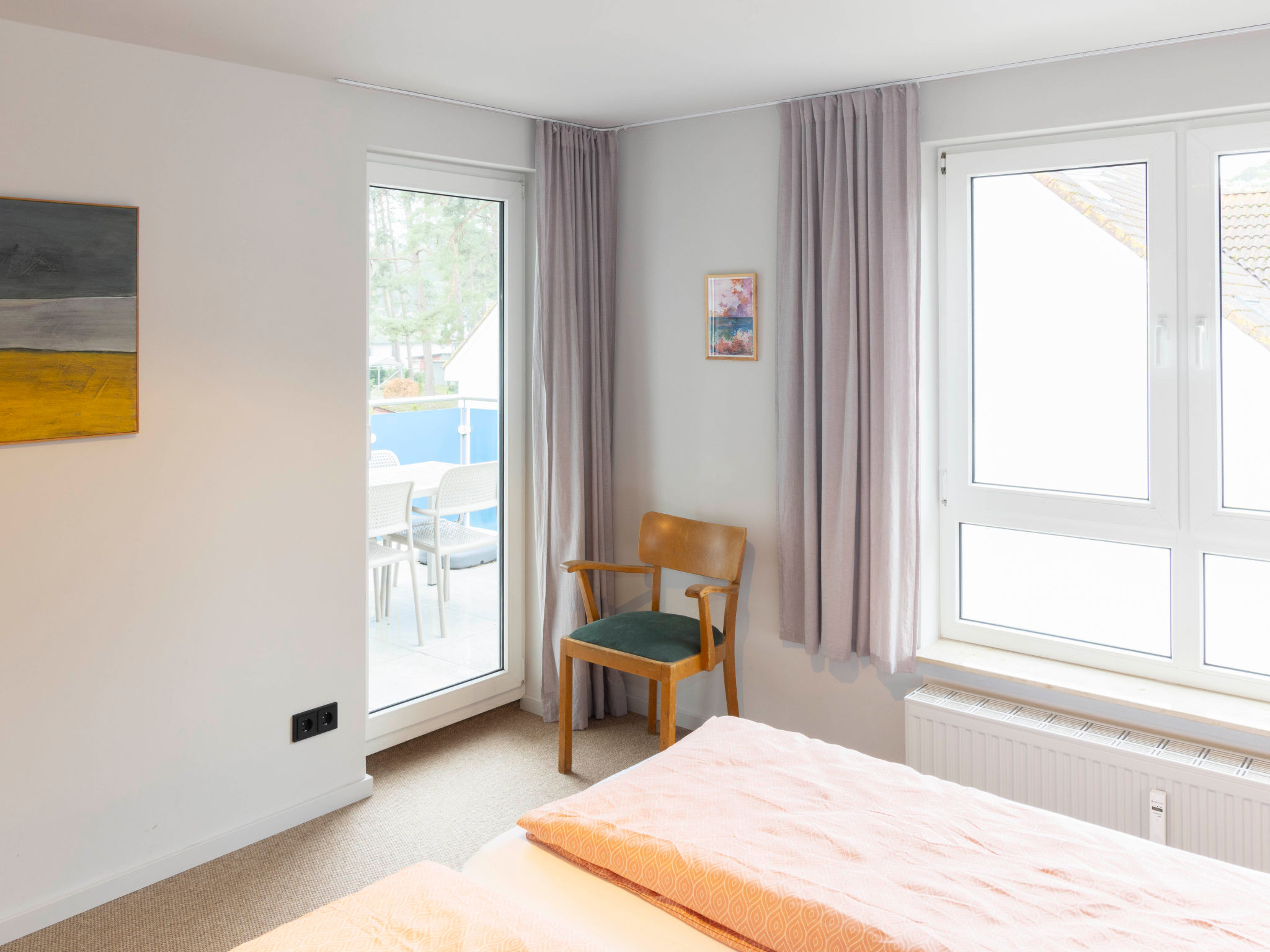 Ferienanlage "Blaumuschel". 30 Wohnungen in der Residenz. 1 km vom Zentrum von Lubmin, am Ortsrand, 12 km vom Zentrum von Greifswald, 50 km vom Zentrum von Stralsund, direkter Zugang zum Strand. Im Hause: Empfang, Restaurant, Sonnenterrasse, Zentralheizung. Supermarkt 1 km, Sandstrand 30 m. Alle Häuser/Wohnungen sind individuell eingerichtet.