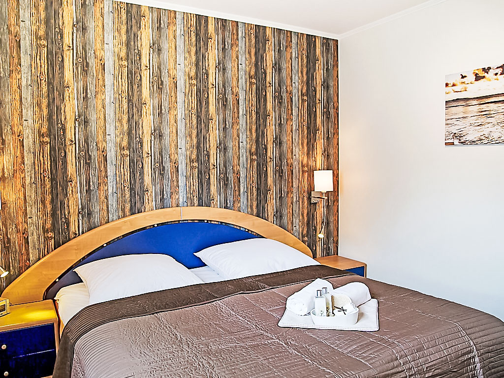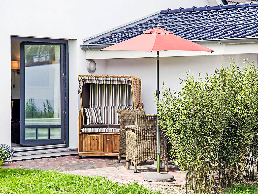 "Witthuus-Borkum", 2-Zimmer-Wohnung 42 m2, im Erdgeschoss. Komfortabel und stilvoll eingerichtet: Wohn-/Esszimmer 19 m2 mit Sat-TV (Flachbildschirm), Stereoanlage und DVD. Ausgang zur Terrasse. 1 Zimmer 11 m2 mit 1 Doppelbett (2 x 90 cm, Länge 200 cm). Kochnische (Backofen, Geschirrspüler, 4 Glaskeramikherd Platten, Toaster, Wasserkocher, Mikrowelle, elektrische Kaffeemaschine). Dusche/WC. Fussbodenheizung. Terrasse 12 m2, Ostlage. Terrassenmöbel, Gartengrill. Zur Verfügung: Kinderhochstuhl, Haartrockner. Internet (Wireless LAN, gratis). Parkplatz beim Haus. Bitte beachten: Nichtraucher-Unterkunft. Strandkorb auf der Terrasse. Garten (eingezäunt) zur Mitbenutzung. Bei Reservierung der Zusatzbetten steht 1 Doppeldiwanbett (130 cm, Länge 200 cm) im Wohnzimmer zur Verfügung.