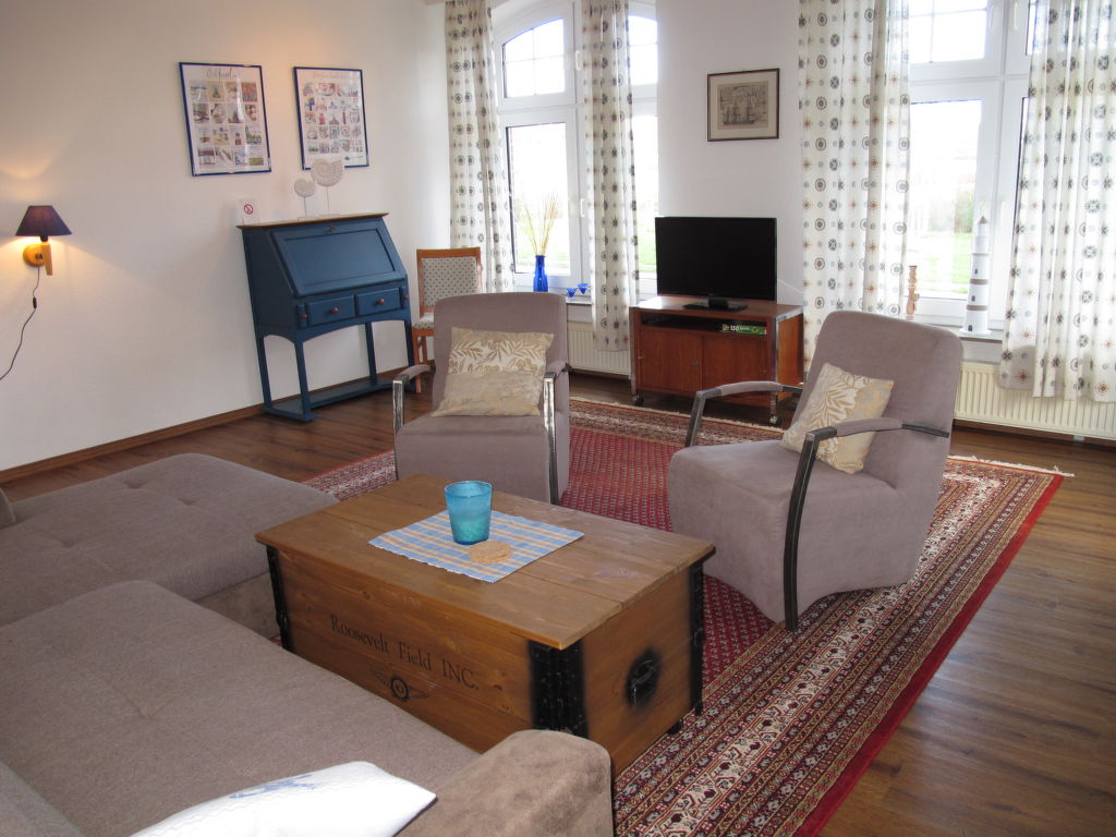 Mehrfamilienhaus "Villa Butterburg". 6 km vom Zentrum von Dornumersiel, am Ortsrand, 1 km vom Zentrum von Dornum, 55 km vom Zentrum von Wilhelmshaven, 6 km vom Meer. Zur Mitbenutzung: Grundstück 4'000 m2, Garten (nicht eingezäunt) mit Rasen und Bäumen. Kinderspielplatz (Rutschbahn, Schaukel). In der Anlage: Trampolin, Zentralheizung, Waschmaschine (zur Mitbenutzung, extra). Parkplatz beim Haus. Einkaufsgeschäft 500 m, Supermarkt 1 km, Sandstrand "Dornumersiel" 6 km, Freibad 6 km. Die VILLA BUTTERBURG, eine ehemalige Molkerei aus dem Jahr 1906, wurde regionaltypisch aus rotem Klinker erbaut und im Laufe der letzten Jahre immer wieder renoviert und modernisiert. Kanu nach Absprache mit Besitzer vor Ort (Gebühr).