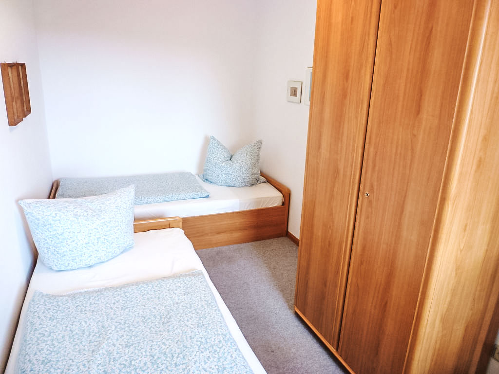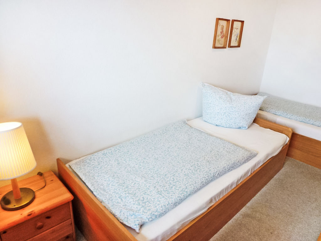 3-Zimmer-Wohnung 75 m2 im 2. Stock. Wohn-/Schlafzimmer mit 1 Doppeldiwanbett und Sat-TV (Flachbildschirm), Radio und CD. Ausgang zum Balkon. 1 Doppelzimmer. 1 Zimmer mit 2 Betten. Küche (4 Kochplatten, Backofen, Mikrowelle, elektrische Kaffeemaschine). Dusche/WC. Balkonmöbel. Zur Verfügung: Internet (Wireless LAN, gratis). Parkplatz Nr. 20/29. Bitte beachten: Nichtraucher-Unterkunft.