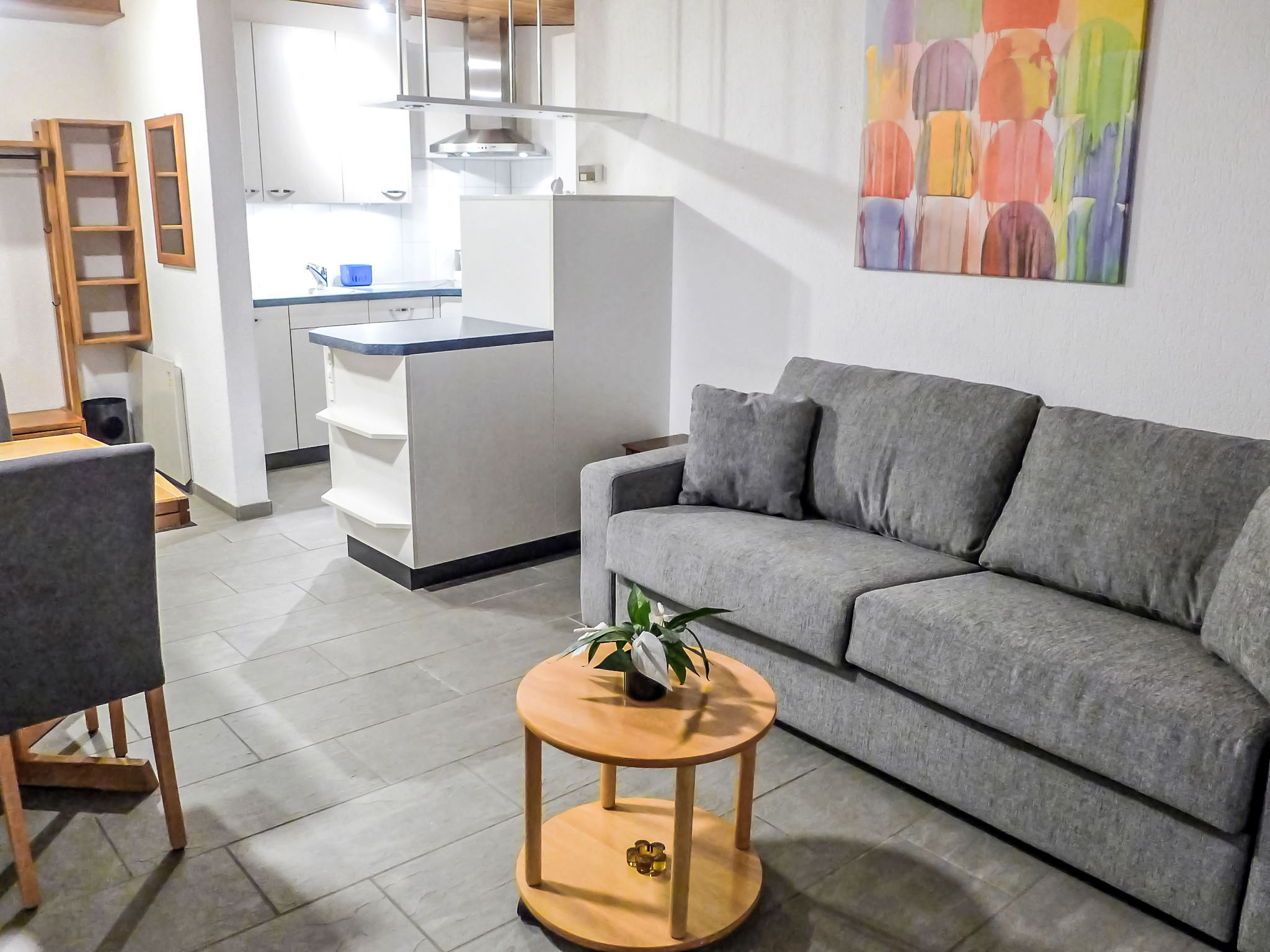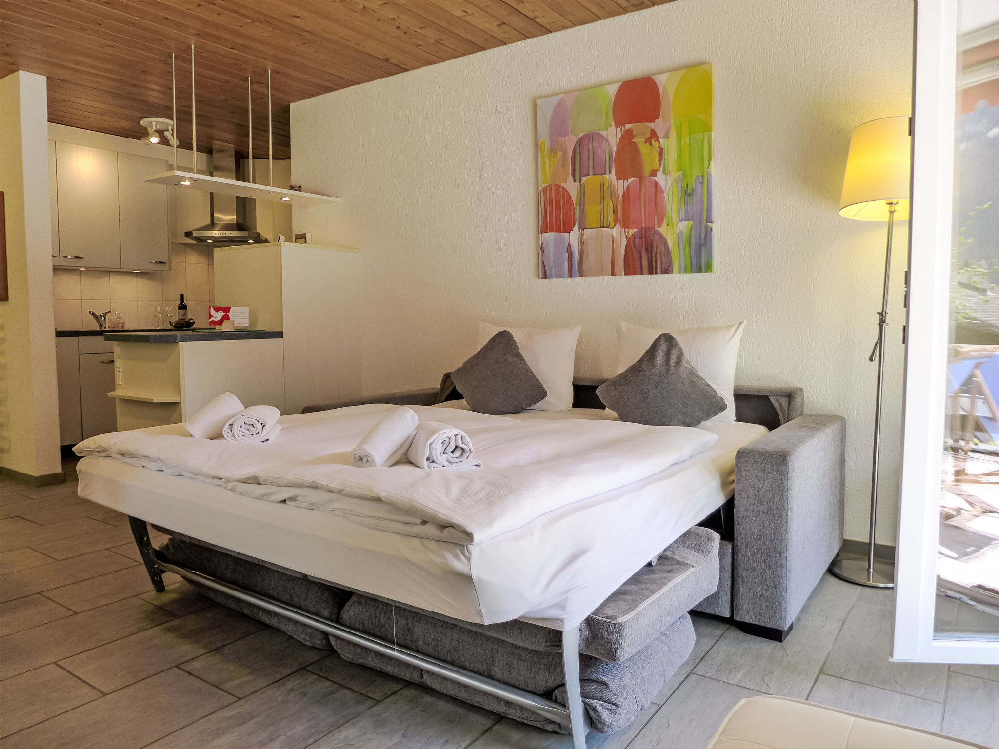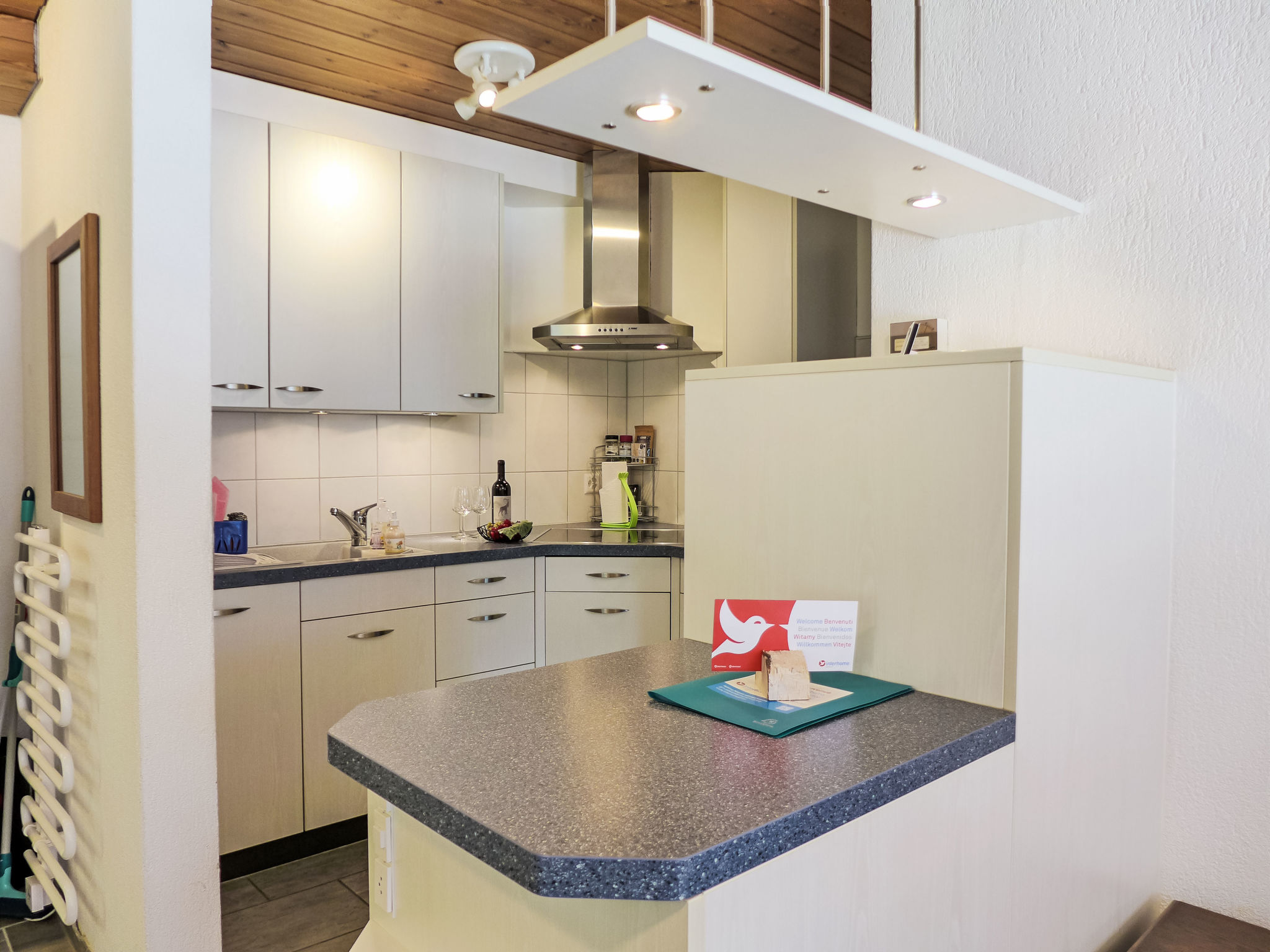 2-Zimmer-Wohnung 45 m2, im erhöhten Erdgeschoss, Südlage. Gemütlich eingerichtet: Wohn-/Schlafzimmer mit 1 Doppeldiwanbett (160 cm, Länge 200 cm), Sat-TV und Digital-TV (Flachbildschirm), Radio. Ausgang zur Terrasse. 1 Zimmer mit 1 Doppelbett (2 x 90 cm, Länge 200 cm). Offene Küche (Backofen, Geschirrspüler, 4 Glaskeramikherd Platten, Toaster, Wasserkocher, elektrische Kaffeemaschine, Kapseln für die Kaffeemaschine (Nespresso) extra, Racletteofen, Fondue Set (Käse)). Dusche/WC. Fussbodenheizung. Terrasse, Südlage und Westlage. Terrassenmöbel. Herrliche Sicht auf die Berge und Eigernordwand. Zur Verfügung: Haartrockner. Internet (Wireless LAN, gratis). Garage Nr. 2, Höhe 247 cm, Breite 212 cm. Bitte beachten: Nichtraucher-Unterkunft. Eigener Eingang, Feuerlöscher.