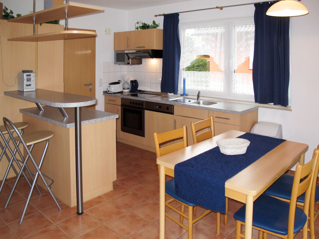 2-Zimmer-Wohnung 50 m2, im Erdgeschoss. Objekt geeignet für 2 Erwachsene + 2 Kinder. Gemütlich eingerichtet: Wohn-/Schlafzimmer mit 1 Doppeldiwanbett, Esstisch, Sat-TV und Stereoanlage. Ausgang zur Terrasse. 1 Doppelzimmer. Kochnische (4 Kochplatten, Backofen, Geschirrspüler, Wasserkocher, elektrische Kaffeemaschine). Dusche/WC. G-Heizung. Terrasse 10 m2. Terrassenmöbel, Gartengrill (mobil). Zur Verfügung: Kinderhochstuhl, Babybett (extra). Parkplatz beim Haus. Bitte beachten: Nichtraucher-Unterkunft. 1 Haustier/Hund erlaubt. Rauchmelder. Maximale Belegung: 2 Erwachsene und 2 Kinder bis 12 Jahre. Internetzugang nur an der Rezeption.