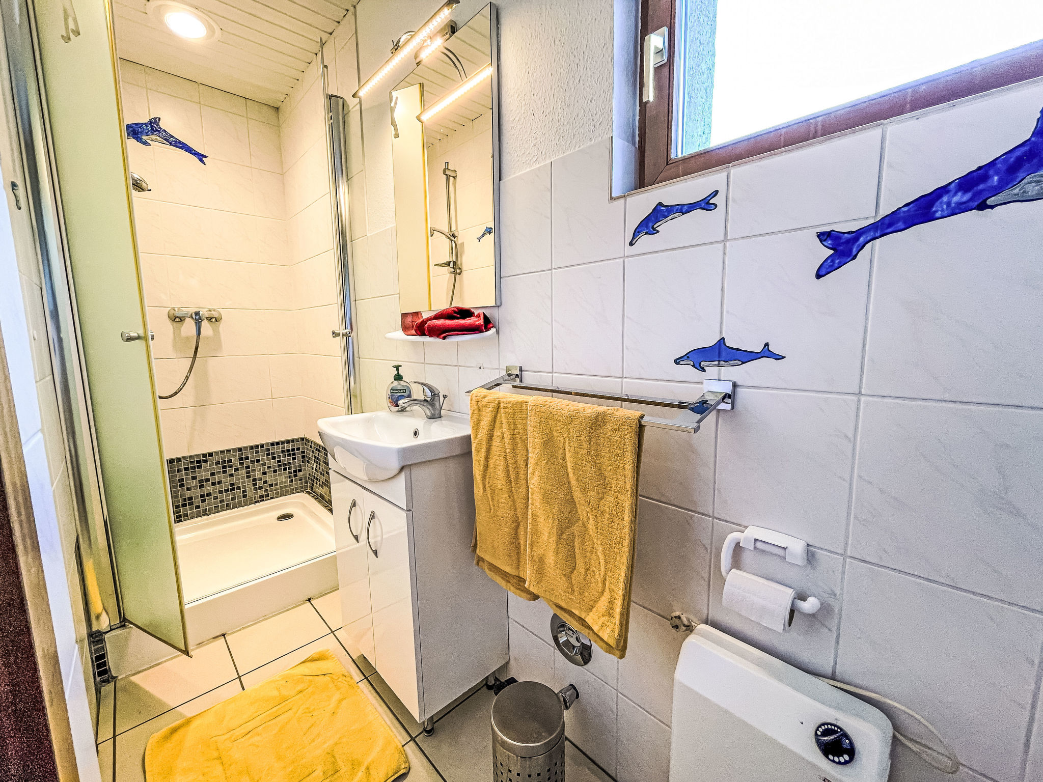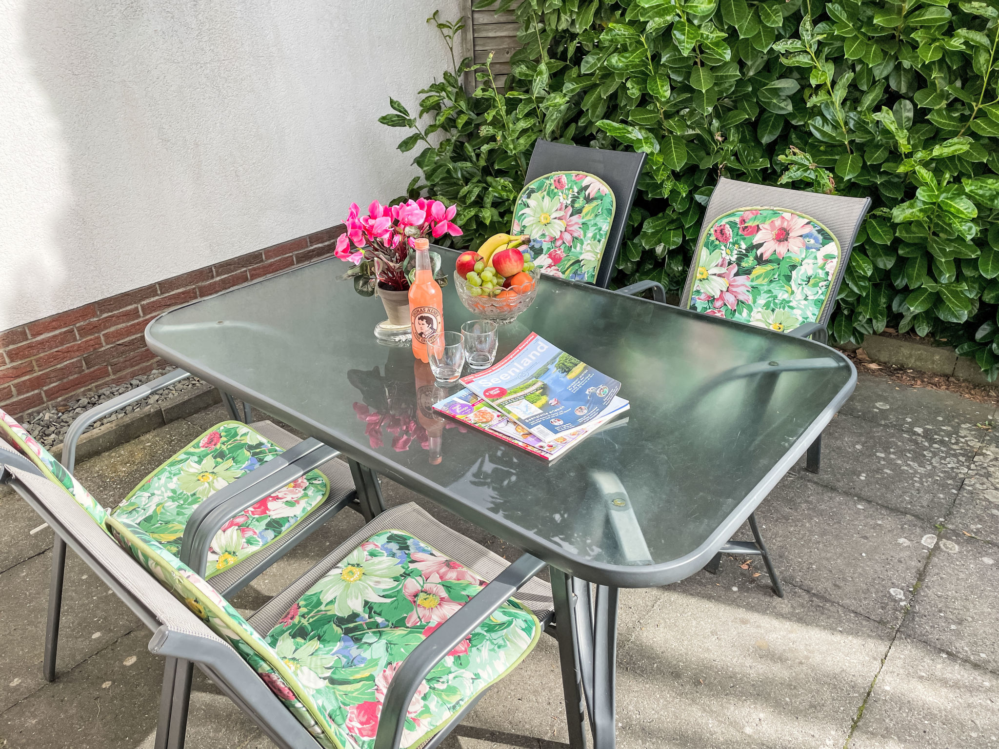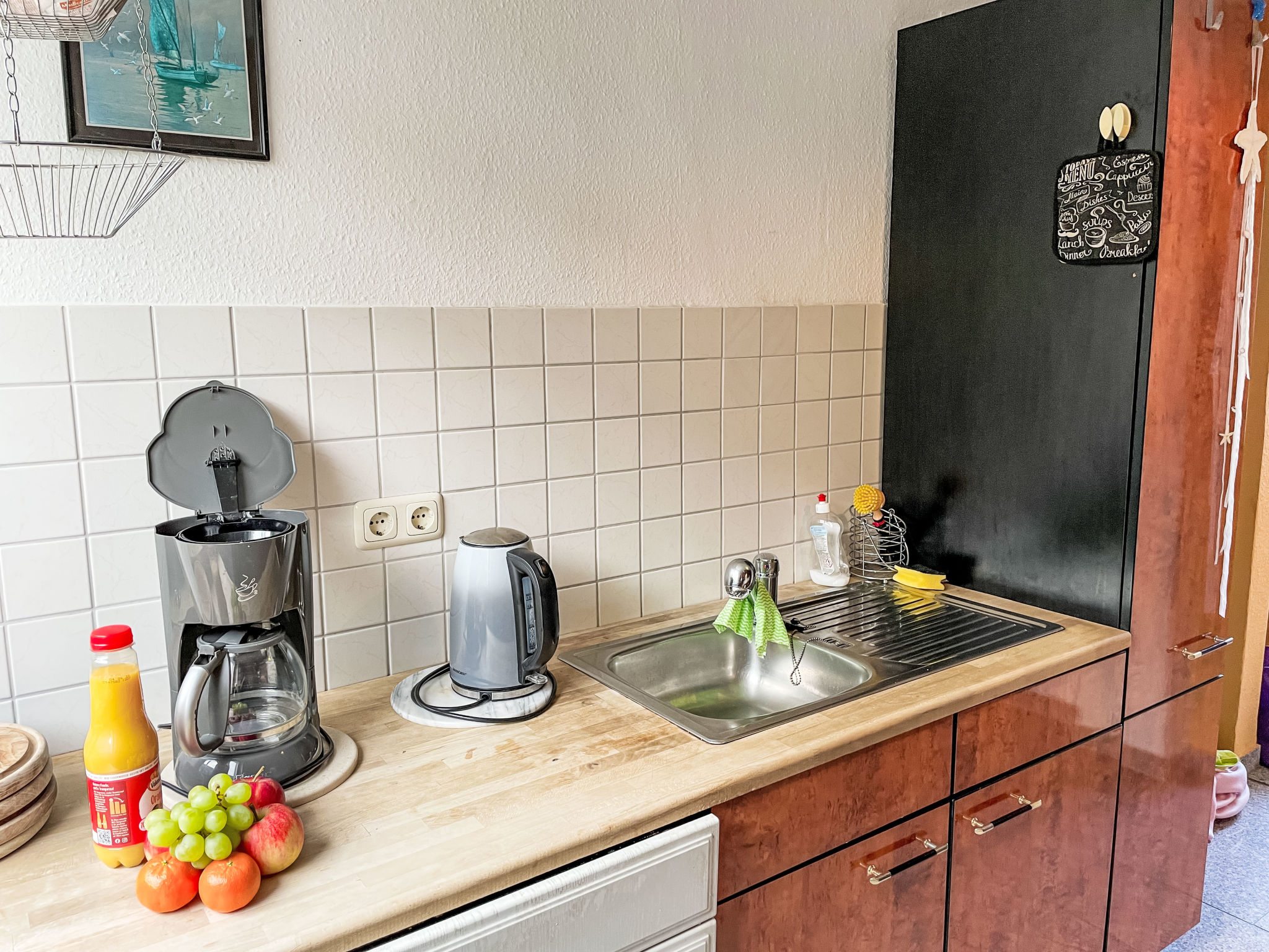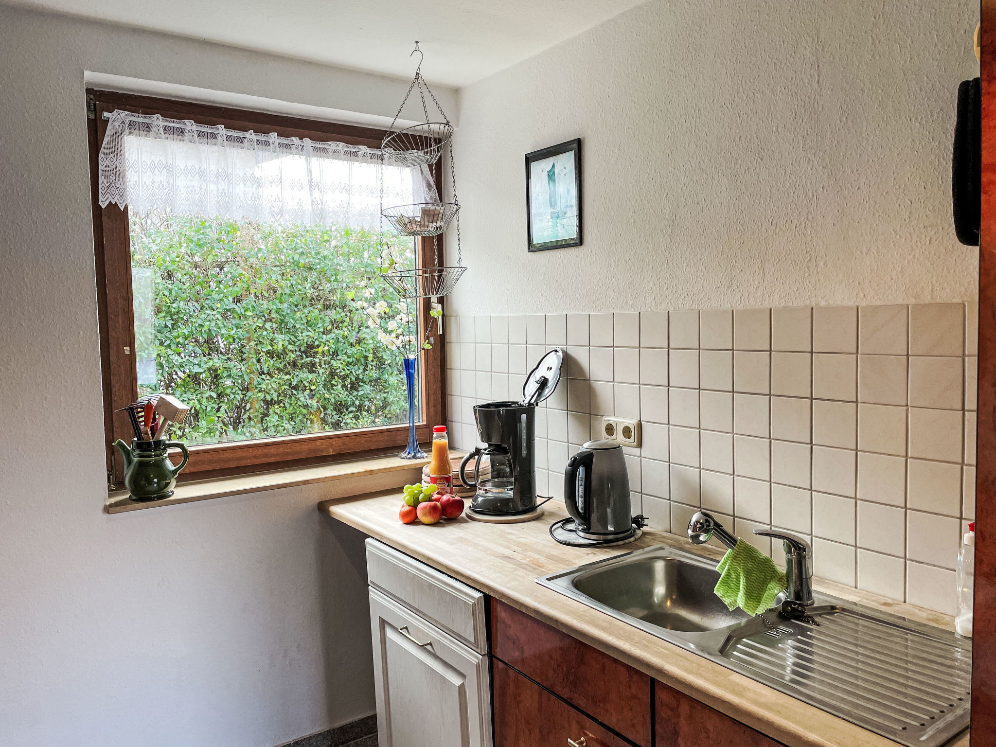 2-Zimmer-Doppelhaushälfte 50 m2, im Erdgeschoss. Zweckmässig eingerichtet: Wohn-/Schlafzimmer mit 1 Doppeldiwanbett, Schwedenofen, Esstisch, Sat-TV, Radio und CD. Ausgang zur Terrasse. 1 Zimmer mit 1 franz. Bett (160 cm, Länge 200 cm). Küche (Backofen, Geschirrspüler, 4 Glaskeramikherd Platten, Toaster, Wasserkocher, Mikrowelle, elektrische Kaffeemaschine). Dusche/WC. G-Heizung, Fussbodenheizung. Terrasse. Terrassenmöbel, Gartengrill (mobil), Liegestühle (2). Zur Verfügung: Babybett bis 2 Jahre (extra), Holz (extra). Bitte beachten: Nichtraucher-Haus. 2 Haustiere/Hunde erlaubt. Rauchmelder, Feuerlöscher.