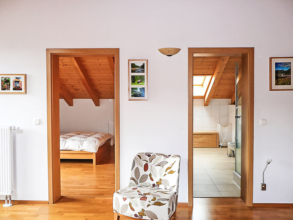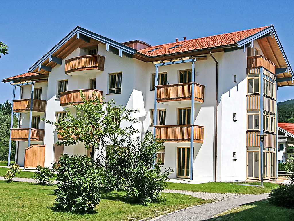 Modernes Appartementhaus "Bibelöd". Im Ortsteil Bibelöd, 2 km vom Zentrum von Ruhpolding, ruhige Lage in einem Wohnquartier, in einer Sackgasse. Im Hause: Fahrstuhl, Zentralheizung. Gemeinschaftsgarage. Lebensmittelgeschäft, Supermarkt, Restaurant 800 m, Bahnstation "Bibelöd" 200 m, Freibad, Hallenbad 800 m. Golfplatz (18 Loch) 4 km, Tennis, Skilift 800 m. Jede Wohnung verfügt über einen eigenen Kellerraum mit Waschmaschine und Trockner.