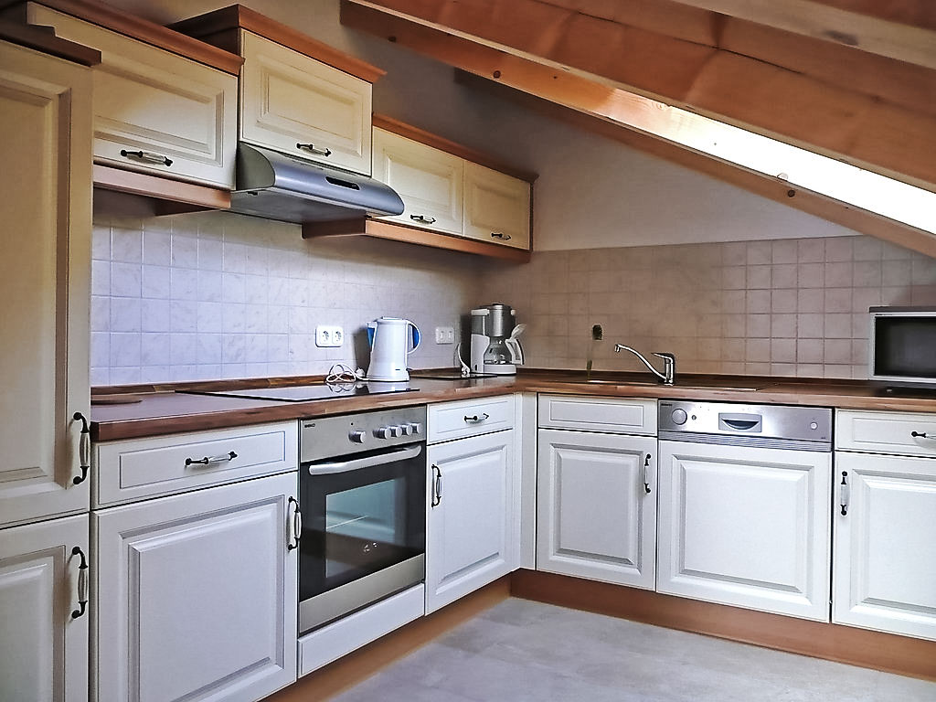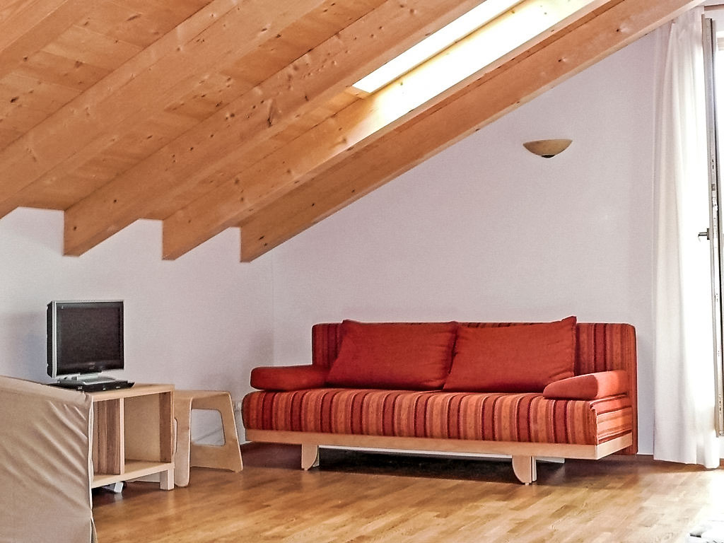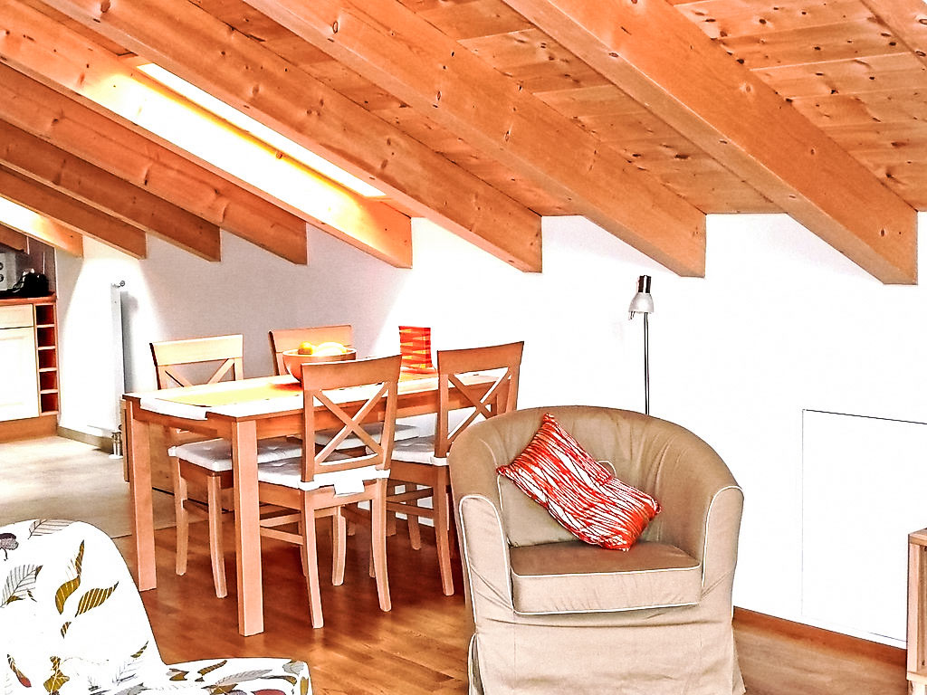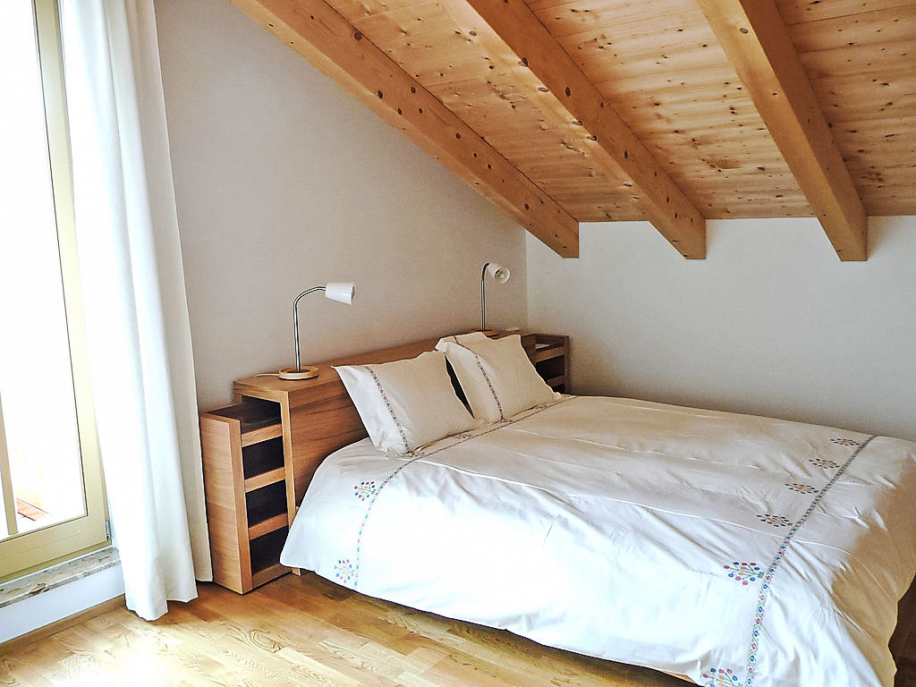 2-Zimmer-Wohnung 50 m2, im Dachgeschoss. Gemütlich eingerichtet: Wohn-/Esszimmer mit 1 Doppeldiwanbett, Kabel-TV, Radio, CD und DVD. Ausgang zum Balkon. 1 Doppelzimmer. Ausgang zum Balkon. Kochnische (Backofen, Geschirrspüler, Mikrowelle, Tiefkühler, elektrische Kaffeemaschine). Dusche/WC. Balkonmöbel. Zur Verfügung: Waschmaschine (extra). Wäschetrockner (extra). Internet (Wireless LAN, gratis). Parkplatz Nr. 16. Bitte beachten: Nichtraucher-Unterkunft.