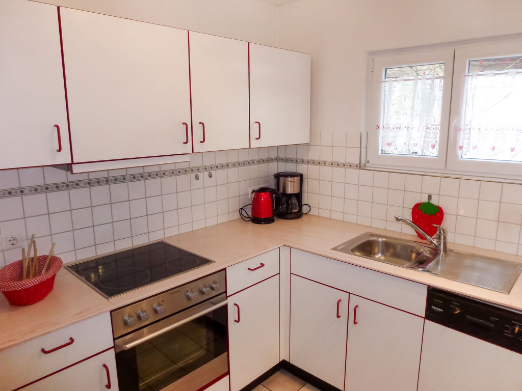 4-Zimmer-Haus 78 m2, im Erdgeschoss. Gemütlich eingerichtet: Wohn-/Esszimmer mit Sat-TV (Flachbildschirm), Radio. Ausgang zur Terrasse. 1 Zimmer mit 2 Betten (90 cm, Länge 200 cm). 1 Zimmer mit 1 Doppelbett (2 x 90 cm, Länge 200 cm), Waschbecken und Sat-TV (Flachbildschirm). 1 Zimmer mit 1 Doppelbett (2 x 90 cm, Länge 200 cm). Küche (Backofen, Geschirrspüler, 4 Glaskeramikherd Platten, Toaster, Wasserkocher, Mikrowelle, elektrische Kaffeemaschine). Bad, sep. WC. Terrassenmöbel. Zur Verfügung: Telefon, Kinderhochstuhl (extra). Internet (DSL/LAN, gratis). Garage.