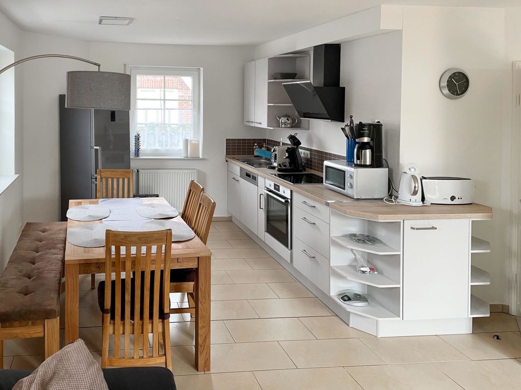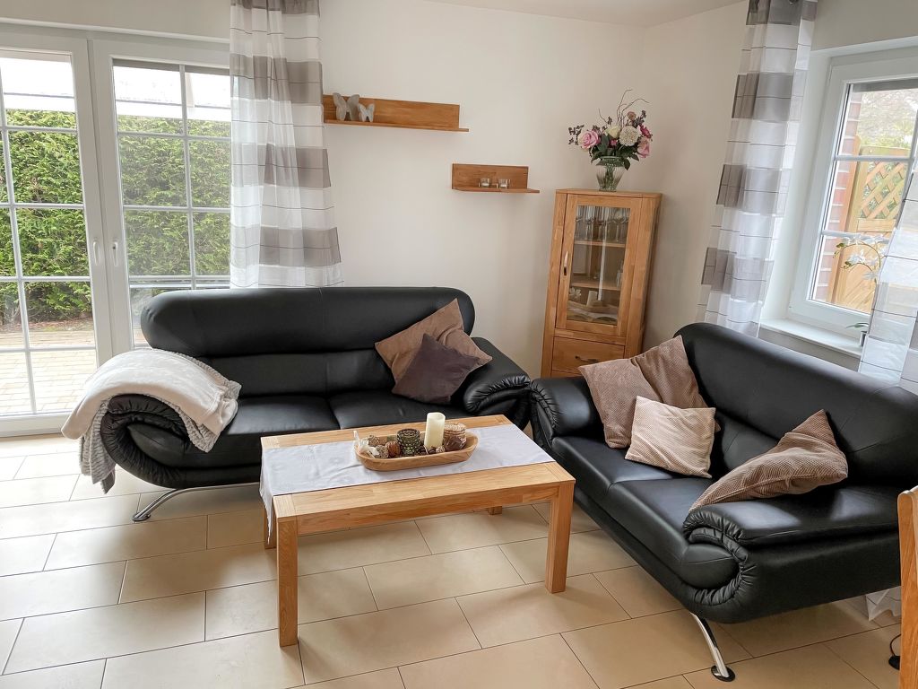 "Deichhuus Een", 4-Zimmer-Haus 100 m2 auf 2 Stockwerken, im Erdgeschoss. Stilvoll eingerichtet: Wohn-/Esszimmer mit Sat-TV (Flachbildschirm), Radio und Stereoanlage. 1 Doppelzimmer. Offene Küche (Backofen, Geschirrspüler, 4 Glaskeramikherd Platten, Mikrowelle, elektrische Kaffeemaschine) mit Esstisch. Dusche/WC. Bodenheizung. Obergeschoss: 1 Doppelzimmer mit Sat-TV (Flachbildschirm), DVD und DVD Sammlung vorhanden. 1 Zimmer mit 2 Betten und Sat-TV (Flachbildschirm). Dusche/WC. Terrasse, kleiner Garten. Terrassenmöbel, Gartengrill, Liegestühle (2). Zur Verfügung: Waschmaschine (extra). Wäschetrockner (extra), Sauna (extra), Safe, Bügeleisen, Kinderhochstuhl, Haartrockner. Internet (Wireless LAN, gratis). Bitte beachten: Nichtraucher-Unterkunft. 2 Haustiere/Hunde erlaubt. REISEN UND SPAREN: 15 Prozent Preisermässigung bei Belegung mit maximal 4 Personen.