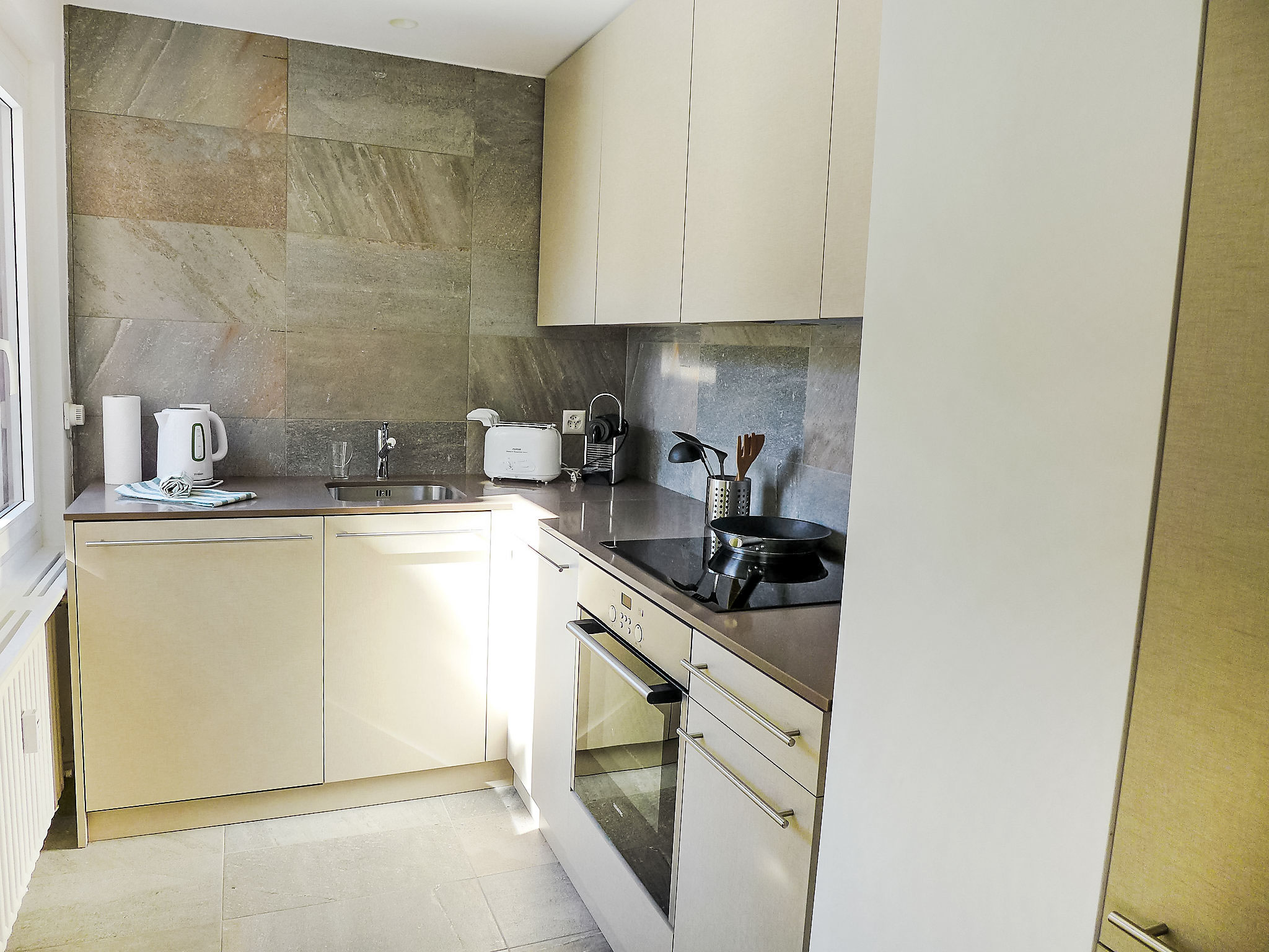 "Chesa La Soliva", 2-Zimmer-Wohnung 47 m2 im 1. Stock. Vollständig renoviert im Jahre 2015, sehr modern und geschmackvoll eingerichtet: Wohn-/Esszimmer mit 1 Doppeldiwanbett (1 x 150 cm, Länge 200 cm). Ausgang zum Balkon, Richtung Westen. 1 Zimmer mit 1 franz. Bett (180 cm, Länge 200 cm), TV. Kleine, offene Küche (Backofen, Geschirrspüler, 4 Glaskeramikherd Platten, Toaster, Wasserkocher, Tiefkühler, elektrische Kaffeemaschine, Kapseln für die Kaffeemaschine (Nespresso) extra). Dusche/WC. Natursteinböden. Seitliche Sicht auf die Berge und die Ortschaft. Zur Verfügung: Haartrockner. Internet (Wireless LAN, gratis). Parkplatz Nr. 20 (1 Auto). Bitte beachten: geeignet für Familien. Nichtraucher-Unterkunft. 1 kleines Haustier/Hund erlaubt. Kein Fahrstuhl.