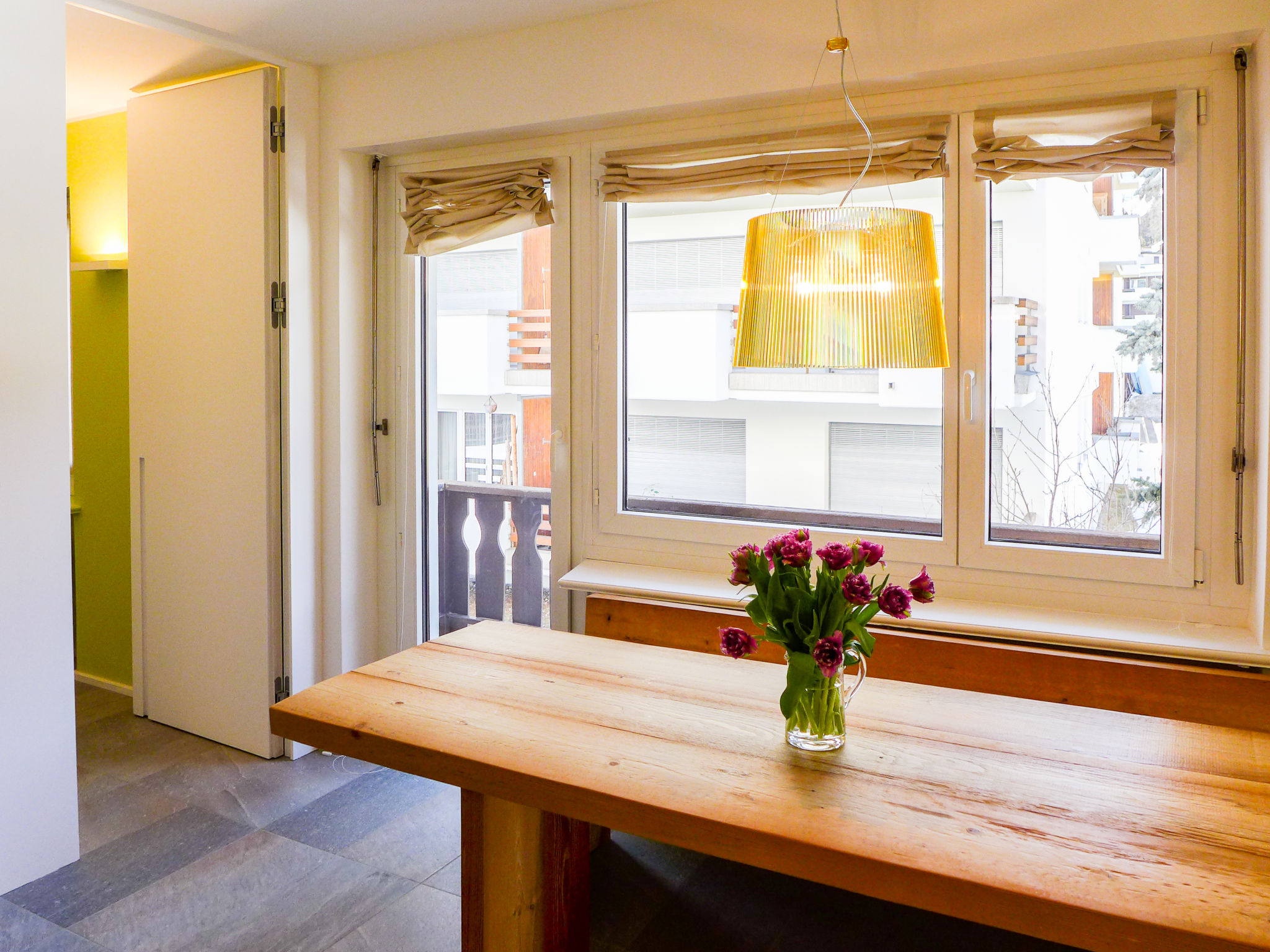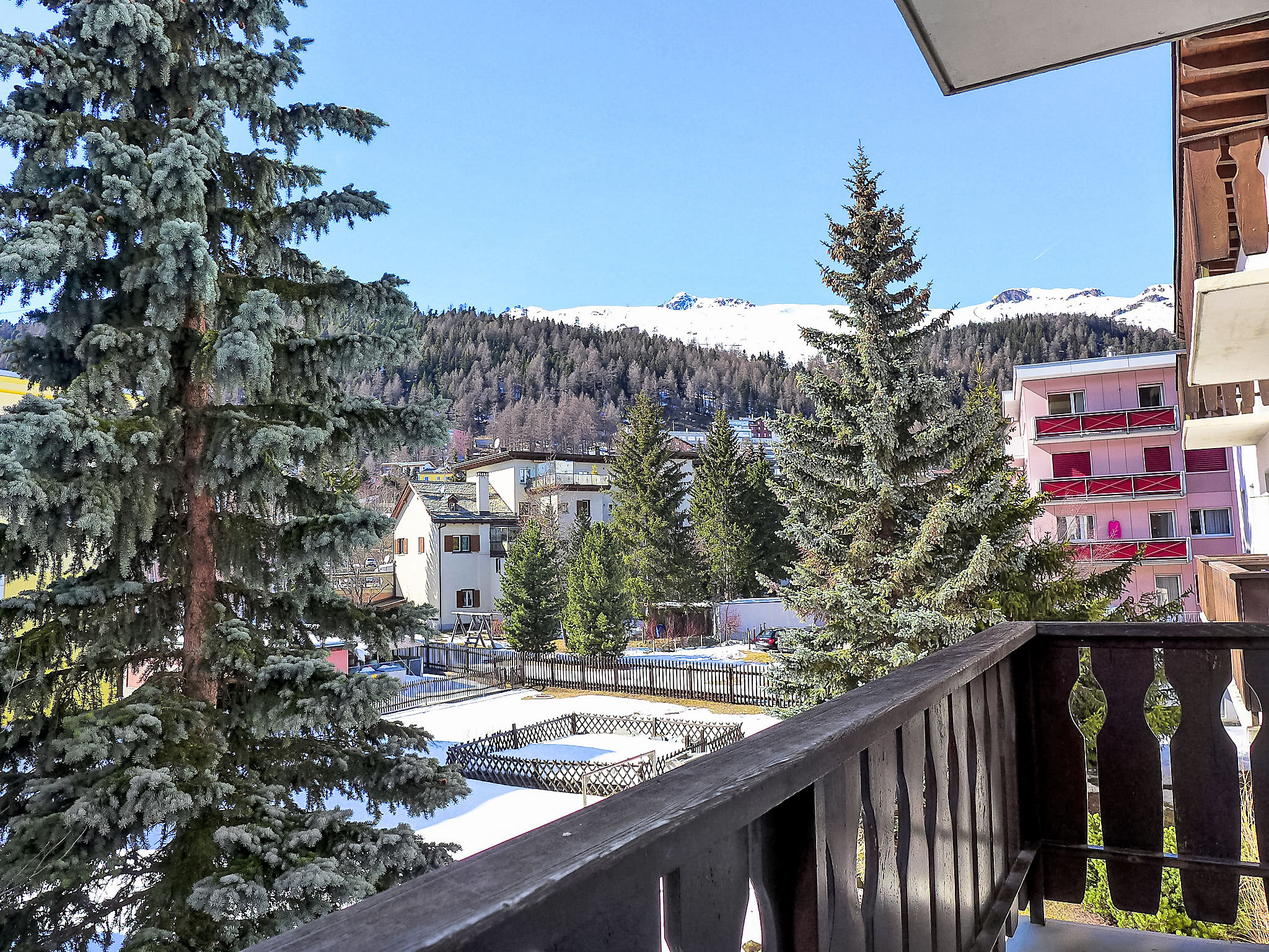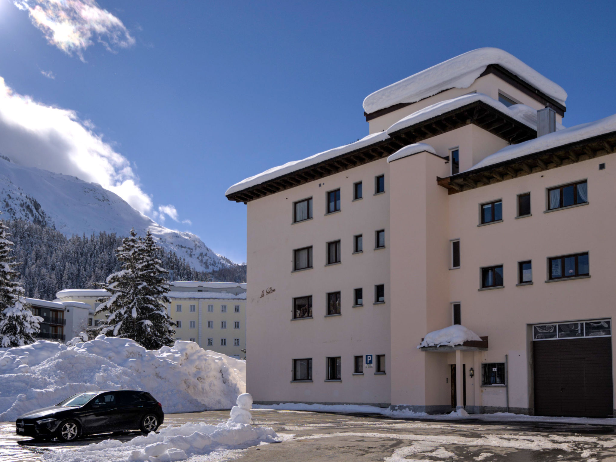 St. Moritz Bad: Altes, einfaches Mehrfamilienhaus "Chesa La Soliva", auf 4 Stockwerken, Baujahr 1960. Im Ortszentrum von St. Moritz Bad, 400 m vom Waldrand, 250 m vom See, 900 m vom Skigebiet. Zur Mitbenutzung: kleiner Garten. Im Hause: Waschmaschine, Wäschetrockner (zur Mitbenutzung, extra). Parkplatz Nr. 20 auf dem Grundstück. Einkaufsgeschäft 200 m, Supermarkt 500 m, Restaurant, Bar 200 m, Bäckerei 260 m, Fahrradverleih 200 m, Bushaltestelle "St. Moritz Bad, Kath. Kirche" 260 m, Bahnstation 1.7 km, Hallenbad 450 m, Thermalbad "Heilbadzentrum St.Moritz" 600 m, See St. Moritzer See 250 m. Golfplatz (18 Loch) 7 km, Surfschule 5.4 km, Tennis 1 km, Tennishalle 1 km, Minigolf 450 m, Reitstall 2.9 km, Wanderwege ab Haus, Radweg 250 m, Luftseilbahn, Skilift, Skipisten 900 m, Skiverleih 200 m, Skibushaltestelle 260 m, Skischule 1.7 km, Kinderskischule 1.7 km, Schlittelbahn 5.3 km, Langlaufloipe 450 m, Eisfeld 300 m, Kinderspielplatz 500 m. Nahe gelegene Sehenswürdigkeiten: Segantini Museum 1.9 km, Engadiner Museum 850 m, Mili Weber-Haus 2.6 km, Olympia Bob Run mit Museum 2.3 km, Nietzsche Museum in Sils-Maria 9.6 km. Bekannte Skigebiete sind gut erreichbar: Corviglia Piz Nair 900 m, Corvatsch - Furtschellas 6.6 km, Diavolezza - Lagalb 19.4 km. Bekannte Seen in der Umgebung sind gut erreichbar: St. Moritzer See 250 m, Silvaplaner See 5.3 km, Silser See 9.6 km. Wandergebiete: Stazerwald & Stazersee, Corviglia Piz Nair, Muottas Muragl. Bitte beachten: kein Fahrstuhl vorhanden. Die Schlüsselübergabe findet bei der Agentur Interhome in St. Moritz Bad statt.