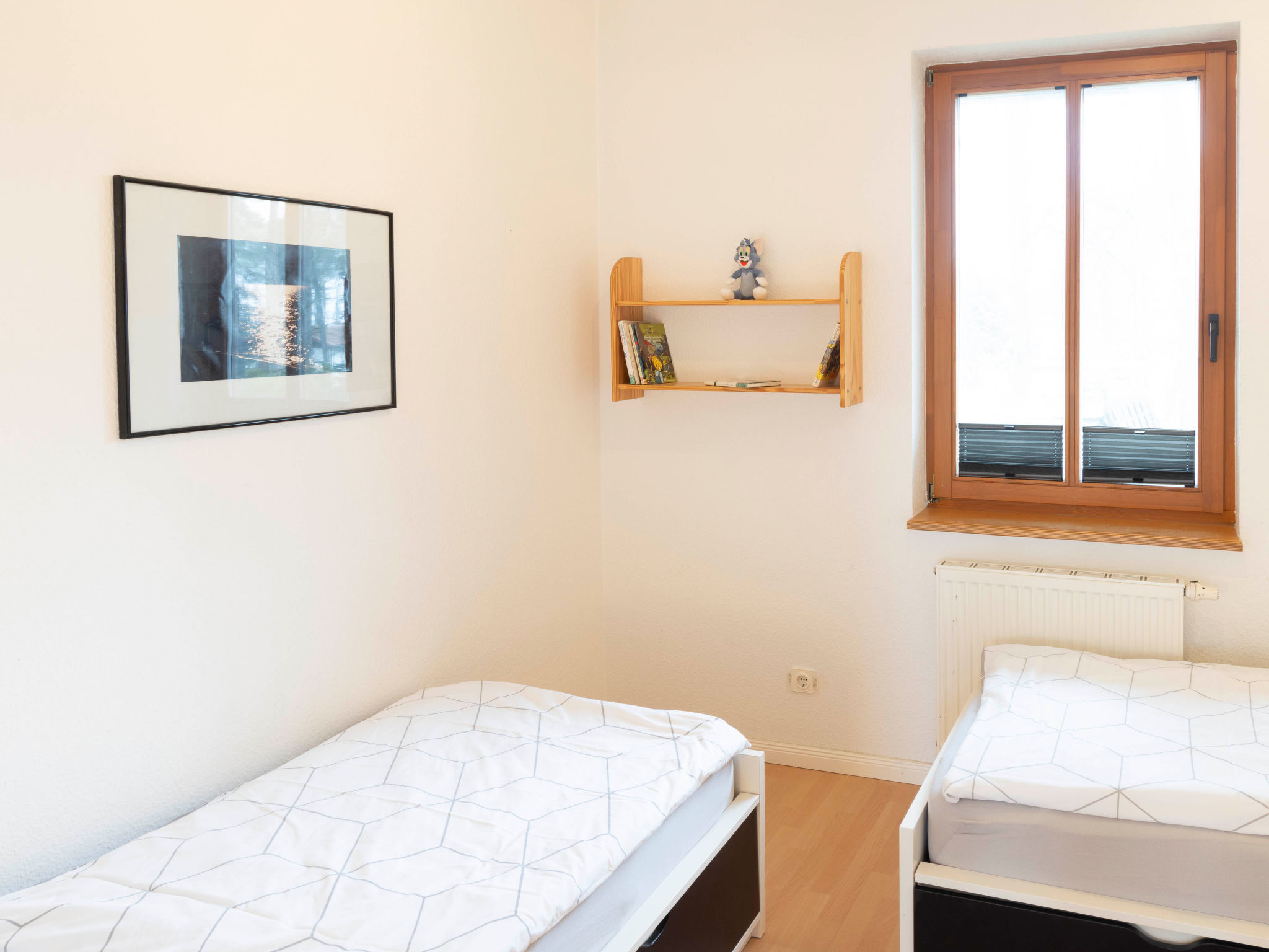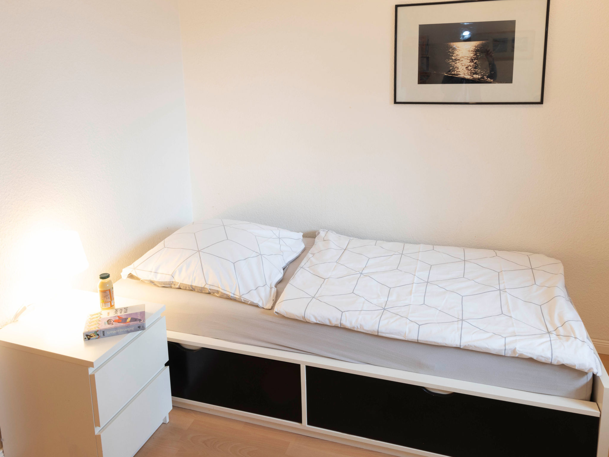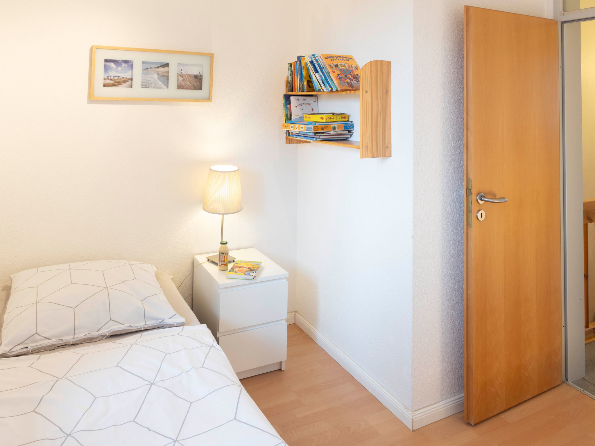 3-Zimmer-Reihenhaus 75 m2 auf 2 Stockwerken. Schön und gemütlich eingerichtet: Wohnzimmer mit Kabel-TV, Radio und CD. Ausgang zur Terrasse. Offene Küche (Backofen, Geschirrspüler, 4 Glaskeramikherd Platten, Toaster, Wasserkocher, Mikrowelle, Tiefkühler, elektrische Kaffeemaschine) mit Esstisch. Obergeschoss: 1 Zimmer mit 1 Doppelbett und Kabel-TV. Ausgang zum Balkon. 1 Zimmer mit 2 Betten. Dusche/WC. Balkon, Terrasse teilweise überdacht, kleiner Garten. Terrassenmöbel, Abstellkammer. Zur Verfügung: Waschmaschine, Kinderhochstuhl, Babybett. Internet (Wireless LAN, gratis). Parkplatz. Bitte beachten: Nichtraucher-Haus. 1 Haustier/Hund erlaubt. Rauchmelder.