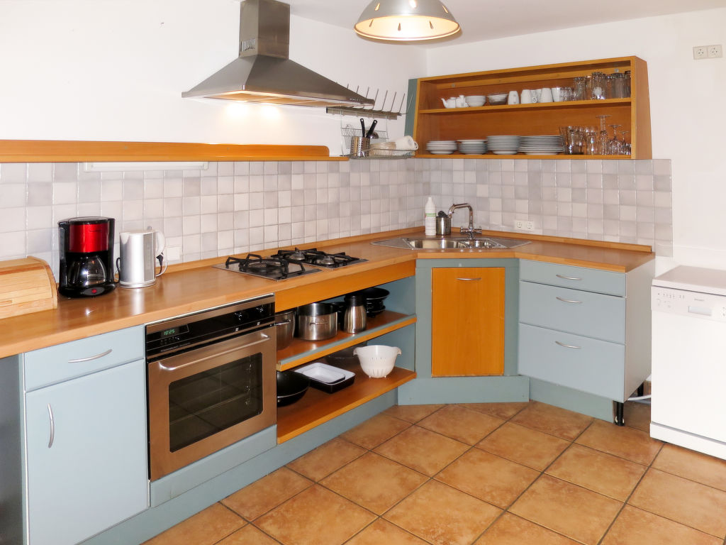 5-Zimmer-Haus 140 m2 auf 2 Stockwerken. Einfach und gemütlich eingerichtet: Wohn-/Schlafzimmer mit 1 Doppeldiwanbett, Esstisch und Sat-TV (Flachbildschirm). Ausgang zur Terrasse. Küche (Backofen, Geschirrspüler, 3 Flammen, Toaster, Wasserkocher, elektrische Kaffeemaschine). Sep. WC. Obergeschoss: 4 Zimmer, jedes Zimmer mit 1 Doppelbett. Bad/Dusche/WC, Doppelwaschbecken. Heizung. Holzböden. Terrasse teilweise überdacht. Terrassenmöbel, Gartengrill (mobil), Liegestühle. Zur Verfügung: Kinderhochstuhl, Babybett. Internet (Wireless LAN, gratis). Bitte beachten: Nichtraucher-Haus. Maximal 2 Haustiere/Hunde erlaubt. Eigener Eingang, Rauchmelder, Feuerlöscher.