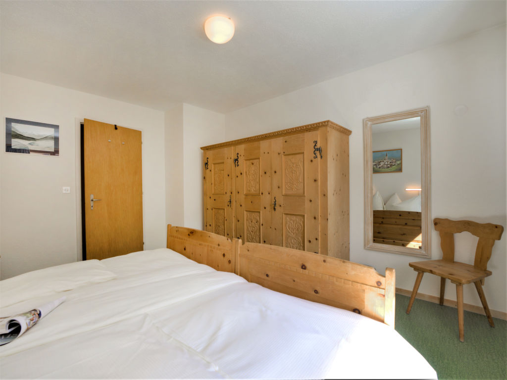 "Chesa Islas", 3-Zimmer-Wohnung 80 m2 im 3. Stock. Zweckmässig und gemütlich eingerichtet: Wohnzimmer mit TV. Ausgang zum Balkon. 1 Zimmer mit 2 Betten (90 cm, Länge 190 cm). 1 Doppelzimmer mit 1 Doppelbett (2 x 90 cm, Länge 190 cm). Küche (Backofen, Geschirrspüler, 4 Glaskeramikherd Platten, Toaster, Wasserkocher) mit Esstisch. Bad/Dusche/WC. Kleiner Balkon 7 m2. Balkonmöbel. Schöne Sicht auf die Berge und die Landschaft. Zur Verfügung: Haartrockner. Internet (Wireless LAN, gratis). Parkplatz Nr. 14. Bitte beachten: geeignet für Familien. Nichtraucher-Unterkunft.