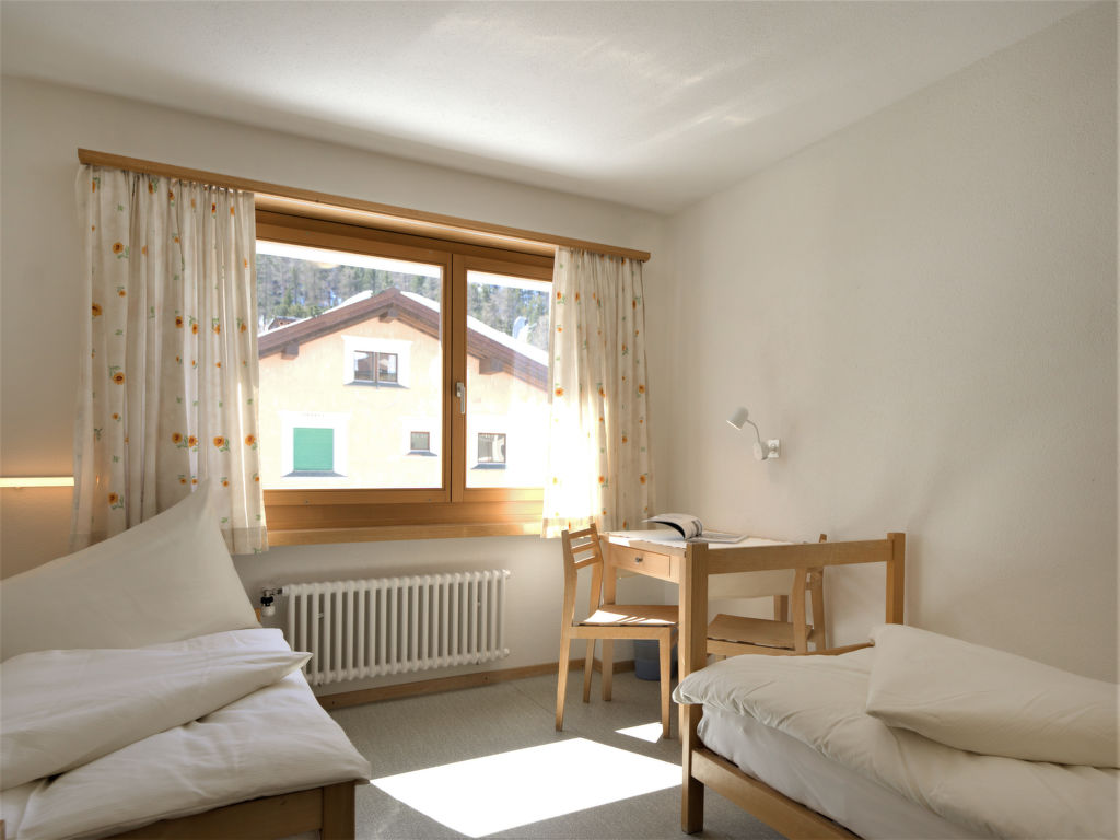 Pontresina 9 km von St. Moritz: Einfaches Mehrfamilienhaus "Chesa Islas", auf 5 Stockwerken, Baujahr 1968, renoviert im Jahre 2003. Am Ortsrand, 500 m vom Zentrum von Pontresina, ruhige, sonnige Lage, 300 m vom Waldrand, 100 m vom Fluss. Im Hause: Waschmaschine, Wäschetrockner (zur Mitbenutzung, extra), Trockenraum. Parkplatz Nr. 14. Einkaufsgeschäft, Supermarkt, Restaurant, Bäckerei, Café 500 m, Fahrradverleih 900 m, Bushaltestelle "Pontresina, Post" 400 m, Bahnstation 1.4 km, Hallenbad 750 m, See St. Moritzer See 7.3 km. Golfplatz (18 Loch) 6.6 km, Surfschule 14 km, Tennis 1.8 km, Tennishalle 9.7 km, Minigolf 9.5 km, Reitstall 1.5 km, Wanderwege ab Haus, Radweg 500 m, Luftseilbahn 6.6 km, Skilift 850 m, Skiverleih 900 m, Skischule, Kinderskischule, Langlaufloipe 500 m, Eisfeld 1.8 km, Kinderspielplatz 1.8 km. Nahe gelegene Sehenswürdigkeiten: Museum Alpin 550 m, Kirche St. Maria 600 m, Alp-Schaukäserei Morteratsch (Sommer) 4.8 km, Segantini Museum in St. Moritz 9.6 km, Bernina Express UNESCO Welterbe. Bekannte Skigebiete sind gut erreichbar: Corviglia Piz Nair 6.6 km, Diavolezza - Lagalb 10.7 km, Corvatsch - Furtschellas 15.2 km. Bekannte Seen in der Umgebung sind gut erreichbar: St. Moritzer See 7.3 km, Silvaplaner See 14 km, Silser See 18 km. Wandergebiete: Stazerwald & Stazersee, Muottas Muragl, Val Roseg & Val Morteratsch. Bitte beachten: geeignet für Familien. Be- und Entladen am Ferienhaus möglich. Die Schlüsselübergabe findet bei der Agentur Interhome in St. Moritz statt, 9 km.
