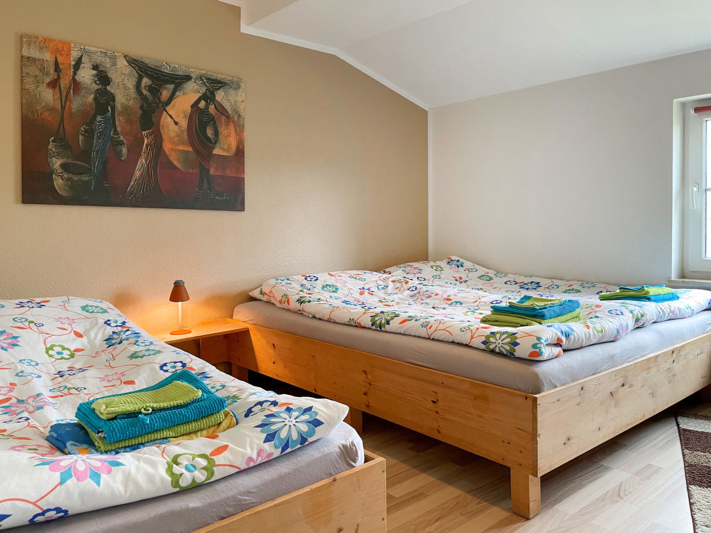 2-Zimmer-Wohnung 50 m2, im Erdgeschoss. Schön und gemütlich eingerichtet: Wohnzimmer 13 m2 mit Sat-TV. 1 Zimmer 13 m2 mit 1 Bett (90 cm, Länge 200 cm), 1 Doppelbett (2 x 90 cm, Länge 200 cm). Abgeschrägte Küche 8 m2 (4 Kochplatten, Backofen, Mikrowelle, elektrische Kaffeemaschine) mit Esstisch. Dusche/WC. Kleine Terrasse. Terrassenmöbel. Zur Verfügung: Waschmaschine, Kinderhochstuhl. Internet (Wireless LAN, gratis). Bitte beachten: Nichtraucher-Unterkunft. 2 Haustiere/Hunde erlaubt.