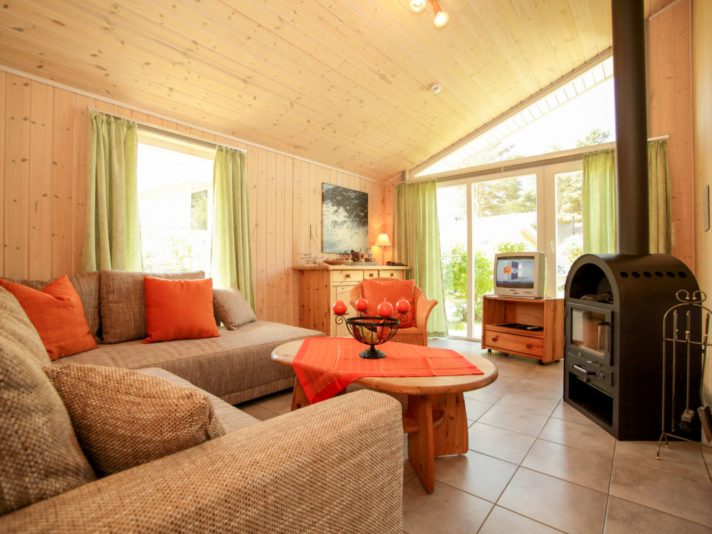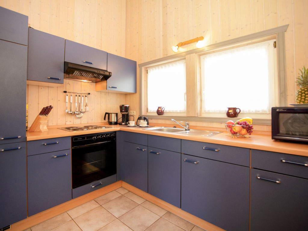 "Seeschwalbe", 3-Zimmer-Doppelhaushälfte 77 m2. Gemütlich und mit viel Holz eingerichtet: Wohn-/Esszimmer mit Schwedenofen, Kabel-TV und Radio. Ausgang zur Terrasse. 1 Doppelzimmer. 1 Zimmer mit 2 Betten. Offene Küche (4 Kochplatten, Backofen, Geschirrspüler, elektrische Kaffeemaschine). Dusche/WC, Whirlbadewanne, Sauna. E-Heizung. Teppichboden. Terrasse teilweise überdacht, Rasen 300 m2. Terrassenmöbel, Abstellkammer. Zur Verfügung: Kinderhochstuhl, Babybett (extra). Internet (Wireless LAN, gratis). Parkplatz beim Haus. Bitte beachten: Rauchmelder.