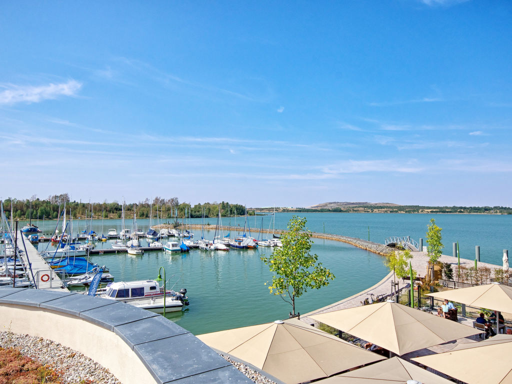 Moderne Ferienanlage "Lagovida". 98 Wohnungen in der Residenz. 5 km vom Zentrum von Espenhain, 10 km vom Zentrum von Großpösna, 25 km vom Zentrum von Leipzig, direkt am See, direkter Zugang zum Strand. Zur Mitbenutzung: Privatstrand, Tischtennis, Beachvolleyball, Kinderspielplatz. In der Anlage: Empfang, Restaurant, Bar, Kiosk, Einstellraum für Fahrräder, Waschmaschine, Wäschetrockner (zur Mitbenutzung, extra), Fahrradverleih. Brötchenservice, Frühstück und Halbpension möglich (extra). Einkaufsgeschäft 10 km, Supermarkt 10 km, Sandstrand 100 m. Golfplatz (9 Loch) 10 km, Minigolf 10 m. Die Ferienanlage liegt auf einem ca. 2,5 ha großen, hübsch angelegten Grundstück auf einer Halbinsel im See. Mittelpunkt der Anlage ist das Hotel Casa Marina. Fahrradgarage gegen Bezahlung, € 1 pro Fahrrad/Nacht.