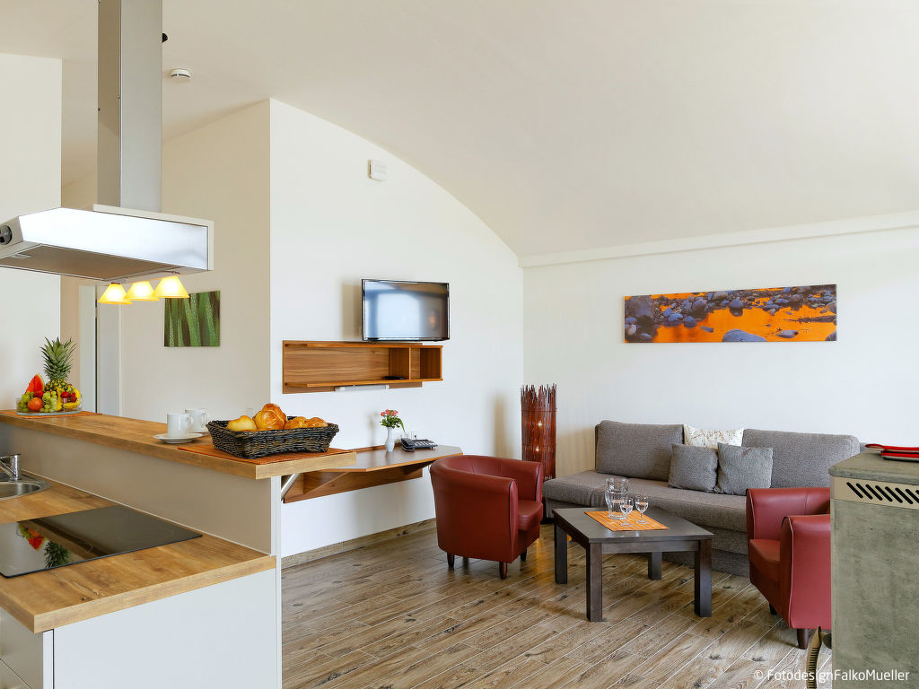 "Dünenhaus Comfort", 2-Zimmer-Reihenhaus 57 m2. Hell, geschmackvoll eingerichtet: Wohn-/Schlafzimmer mit 1 Diwanbett, Schwedenofen, Esstisch, Sat-TV und Radio. Ausgang zur Terrasse. 1 Doppelzimmer. Offene Küche (Backofen, Geschirrspüler, 4 Glaskeramikherd Platten, Toaster, Wasserkocher, elektrische Kaffeemaschine). Dusche/WC, Sauna. Fussbodenheizung. Terrasse teilweise überdacht. Terrassenmöbel, Liegestühle (2). Sicht auf den See. Zur Verfügung: Safe, Kinderhochstuhl, Babybett (extra), Haartrockner. Internet (Wireless LAN, gratis). Parkplatz beim Haus. Bitte beachten: Nichtraucher-Haus. Maximal 2 Haustiere/Hunde erlaubt. Rauchmelder. Die Sauna kann auch eine Infrarotsauna sein. Eigener Strandzugang.