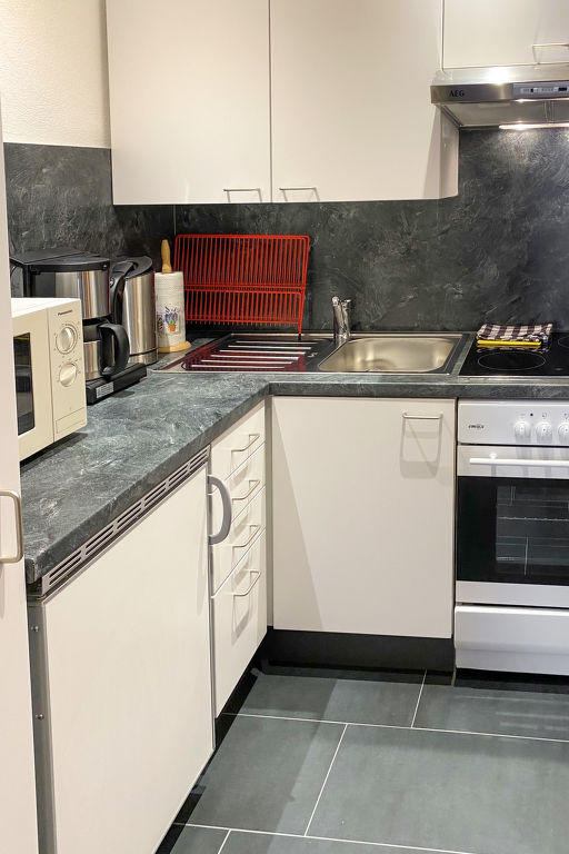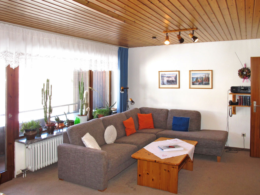2-Zimmer-Wohnung 58 m2 im 1. Stock. Wohn-/Esszimmer mit Esstisch und Sat-TV. Ausgang zum Balkon. 1 Zimmer mit 1 Doppelbett. Kleine Küche (Backofen, 4 Glaskeramikherd Platten, Toaster, Mikrowelle, elektrische Kaffeemaschine). Bad/WC. Heizung. Teppichboden. 2 Balkone. Balkonmöbel. Zur Verfügung: Internet (Wireless LAN, gratis). Bitte beachten: Nichtraucher-Unterkunft. 1 Haustier/Hund erlaubt. Rauchmelder.