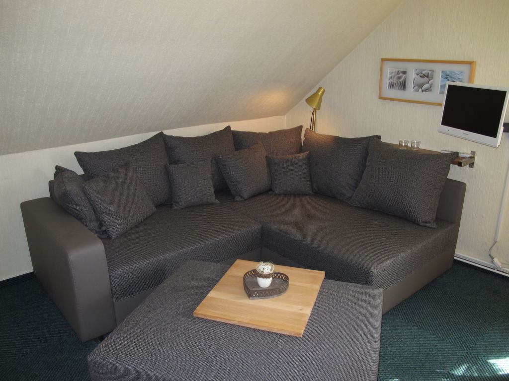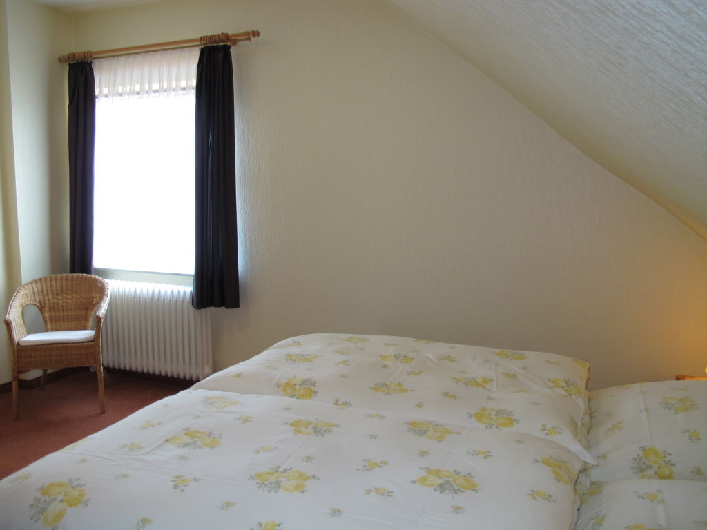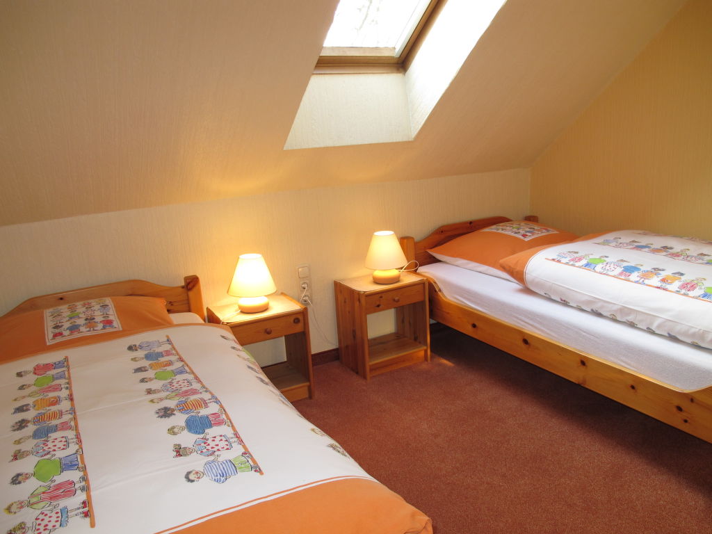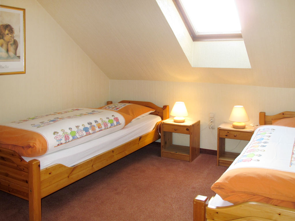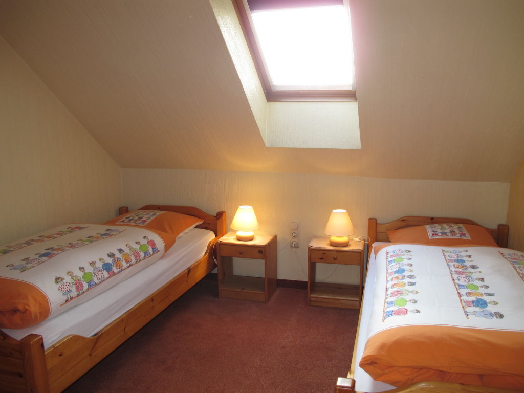 3-Zimmer-Wohnung 55 m2 im 1. Stock. Gemütlich und mit viel Holz eingerichtet: Wohn-/Esszimmer mit Sat-TV, Radio und CD. 1 abgeschrägtes Zimmer mit 1 Doppelbett. 1 abgeschrägtes Zimmer mit 2 Betten. Offene Küche (4 Kochplatten, Backofen, Toaster, Wasserkocher, Mikrowelle, elektrische Kaffeemaschine). Dusche/WC. Terrasse, Gartensitzplatz. Terrassenmöbel, Gartengrill, Liegestühle (2). Zur Verfügung: Kinderhochstuhl, Babybett. Internet (Wireless LAN, gratis). Bitte beachten: Nichtraucher-Unterkunft.