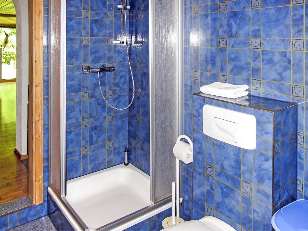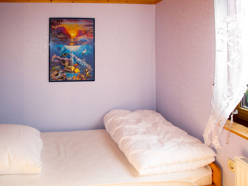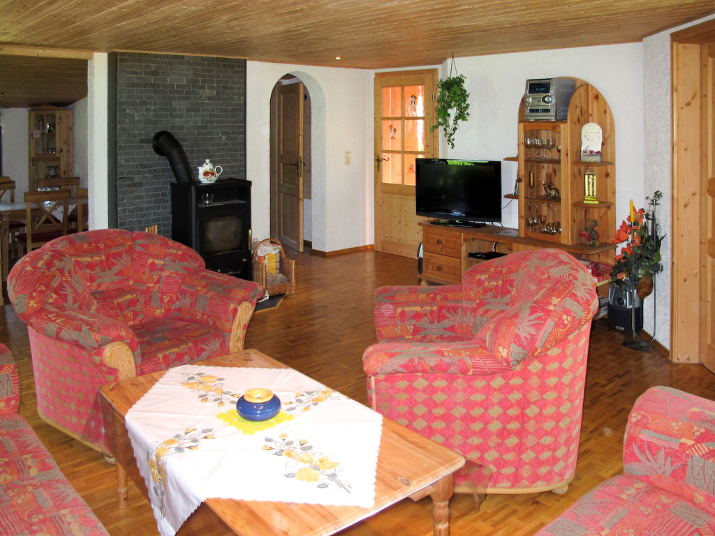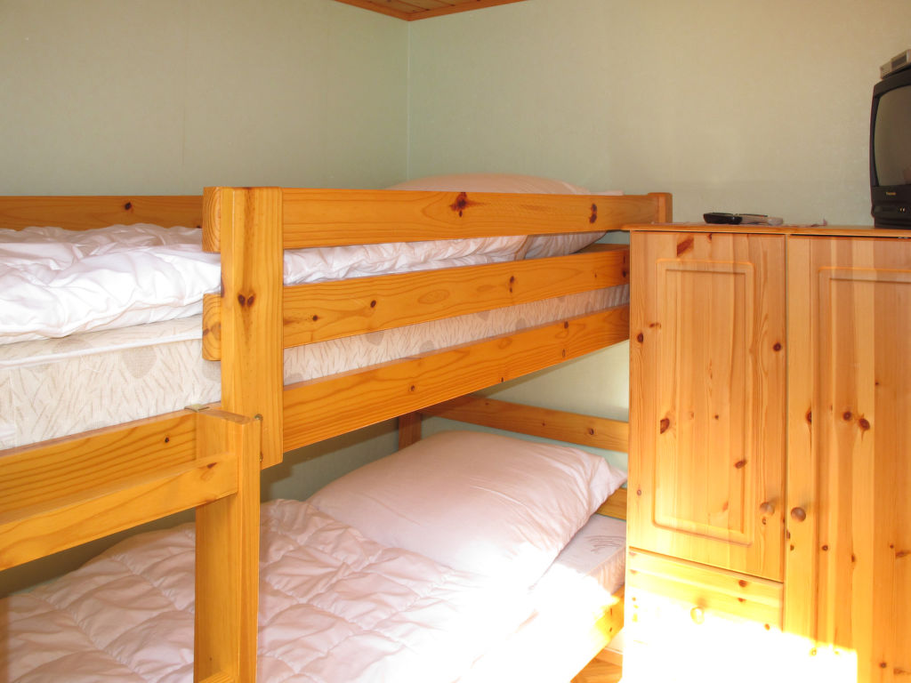 4-Zimmer-Haus 68 m2. Gemütlich eingerichtet: Wohnzimmer, Deckenhöhe 210 cm mit Schwedenofen, Sat-TV, Radio und CD. Ausgang zur Terrasse. 1 Zimmer mit 1 franz. Bett (160 cm, Länge 200 cm). 1 kleines Zimmer mit 1 x 2 Etagenbetten. 1 kleines Zimmer mit 1 Bett. Offene Küche (Backofen, Geschirrspüler, 4 Glaskeramikherd Platten, Toaster, Mikrowelle, Tiefkühler, elektrische Kaffeemaschine) mit Esstisch. Dusche/WC. Ölheizung. Parkettböden. Zur Verfügung: Holz (extra). Bitte beachten: Rauchmelder, Feuerlöscher.
