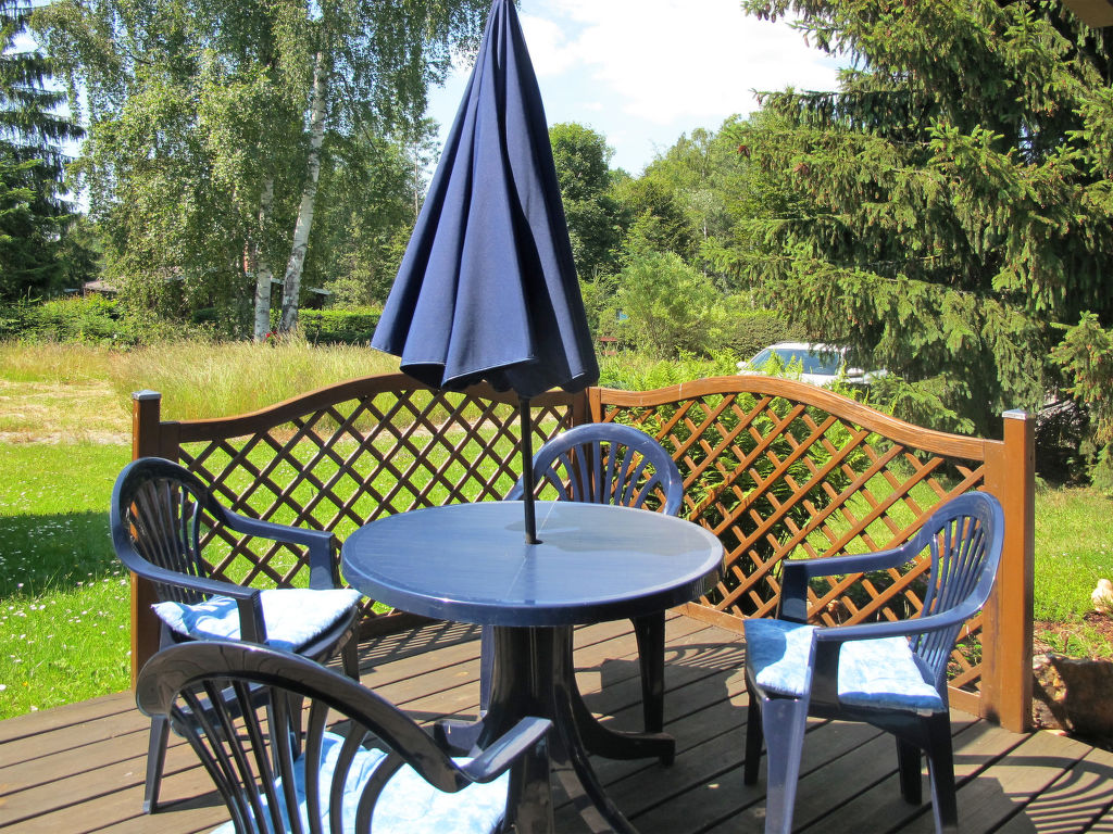 Holzhaus "Erlbacher". Im Ortsteil Eubabrunn, 3 km vom Zentrum von Erlbach, 6 km vom Zentrum von Markneukirchen, 10 km vom Zentrum von Adorf. Zur Alleinbenutzung: Grundstück 400 m2 mit Bäumen, Wiese. Terrasse, Gartenmöbel, Parkplatz auf dem Grundstück. Einkaufsgeschäft 3 km, Supermarkt 6 km, Restaurant 1 km, Freibad 6 km. Wanderwege ab Haus 100 m. Nahe gelegene Sehenswürdigkeiten: Vogtländisches Freilichtmuseum 500 m.