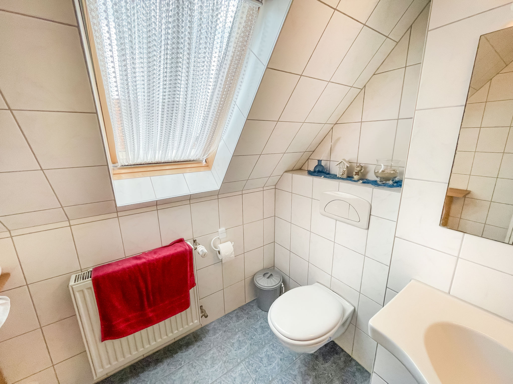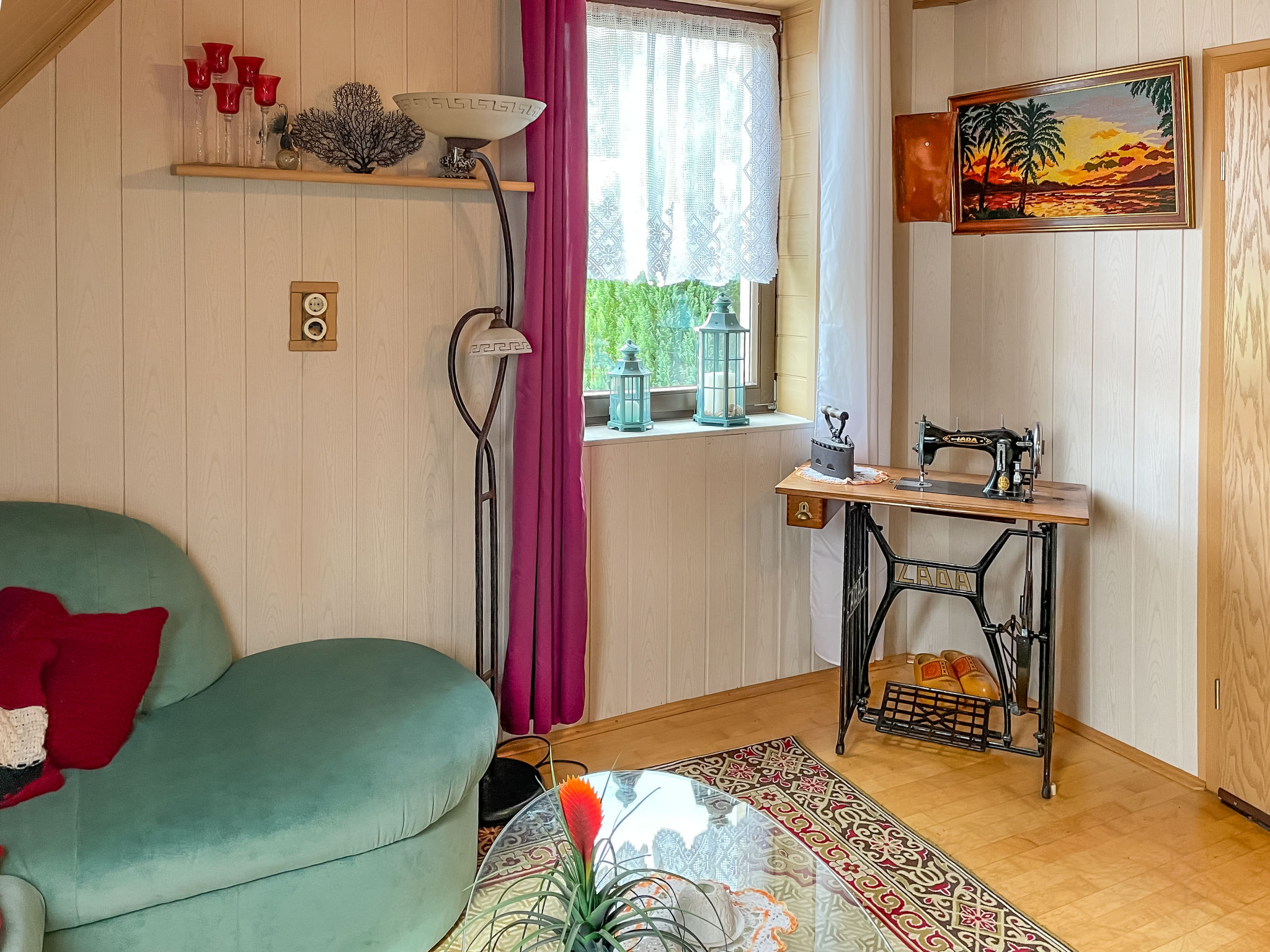 2-Zimmer-Wohnung 50 m2, im Dachgeschoss. Zweckmässig eingerichtet: abgeschrägtes Wohn-/Schlafzimmer mit 1 Doppeldiwanbett, Schwedenofen, Sat-TV, Radio, CD und DVD. 1 abgeschrägtes Zimmer mit 1 franz. Bett. Kochnische (4 Kochplatten, Backofen, Toaster, Wasserkocher, Mikrowelle, elektrische Kaffeemaschine) mit Esstisch. Dusche/WC. G-Heizung. Zur Verfügung: Kinderhochstuhl, Babybett (extra). Internet (Wireless LAN, gratis). Bitte beachten: Nichtraucher-Unterkunft. Rauchmelder.