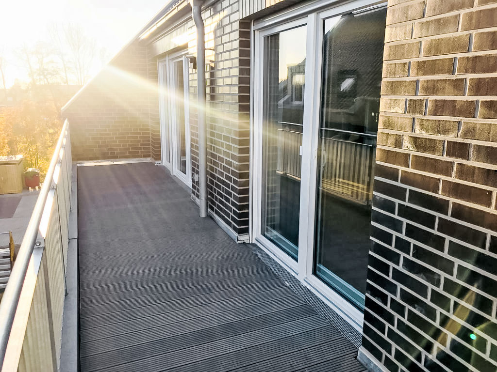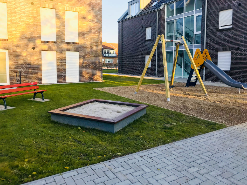 Mehrfamilienhaus. Im Ortszentrum, 1 km vom Meer, 1 km vom Strand. Zur Mitbenutzung: Kinderspielplatz. Im Hause: Fahrstuhl, Zentralheizung. Parkplatz beim Haus. Supermarkt 500 m, Restaurant 100 m, Bäckerei, Café 250 m, Bushaltestelle 200 m, Bahnstation "Norddeich" 1 km, Fähre 1 km, Sandstrand 1 km, Freibad 14 km, Hallenbad 800 m. Golfplatz (9 Loch) 8 km, Surfschule 1 km, Tennis 2.5 km.