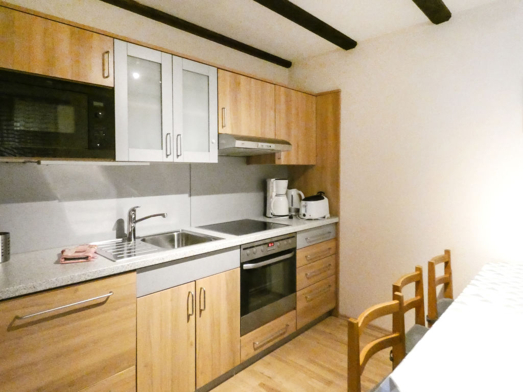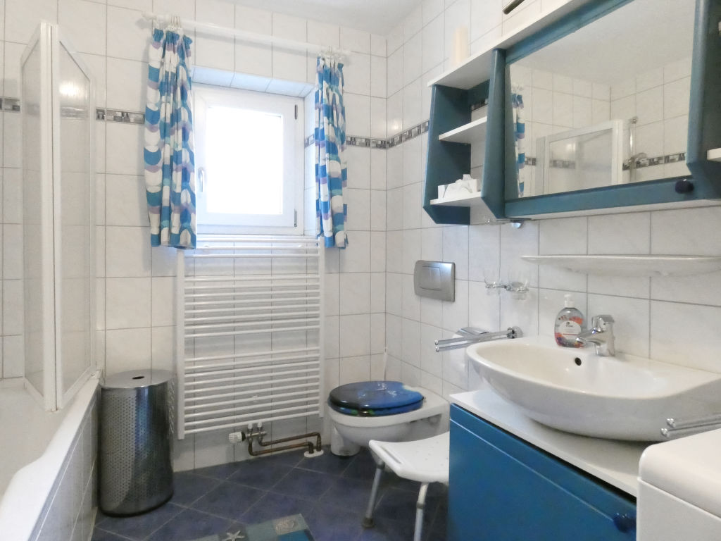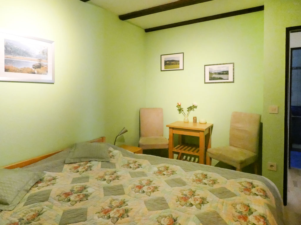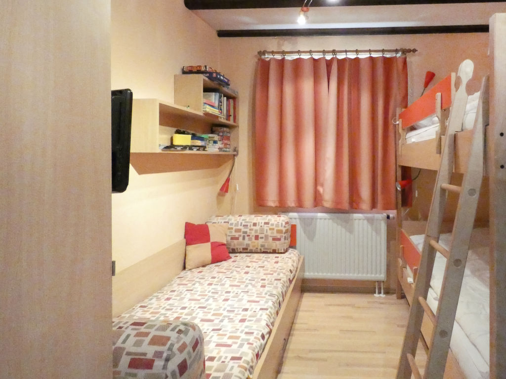 3-Zimmer-Wohnung 75 m2, im Erdgeschoss. Gemütlich eingerichtet: Wohn-/Esszimmer 35 m2 mit Sat-TV (Flachbildschirm), Video, CD, DVD und DVD Sammlung vorhanden. Ausgang zum Garten, zur Terrasse. 1 Zimmer 13 m2 mit 1 Doppelbett (190 cm, Länge 200 cm). 1 Zimmer 9 m2 mit 1 Bett (80 cm, Länge 190 cm), 1 x 2 Etagenbetten (90 cm, Länge 190 cm), Sat-TV (Flachbildschirm), Video, CD und DVD. Offene Küche 9 m2 (Backofen, Geschirrspüler, 4 Glaskeramikherd Platten, Mikrowelle, elektrische Kaffeemaschine) mit Esstisch. Bad/Dusche/WC. G-Heizung. Grosse Terrasse 30 m2 teilweise überdacht, Garten 250 m2, Rasen 150 m2. Terrassenmöbel, Gartengrill (mobil), Liegestühle (2), Sitzplatz. Schöne Sicht auf die Berge. Zur Verfügung: Waschmaschine, Safe, Bügeleisen, Kinderhochstuhl, Haartrockner. Internet (Wireless LAN, gratis). Blu-Ray Player. Bitte beachten: Nichtraucher-Unterkunft. Eigener Eingang, Allergikergeeignet, Rauchmelder. Das kostenlos buchbare Zusatzbett befindet sich im 9 m2 grossen Schlafzimmer. Bücher- und Spielesammlung vorhanden. See 150 m.