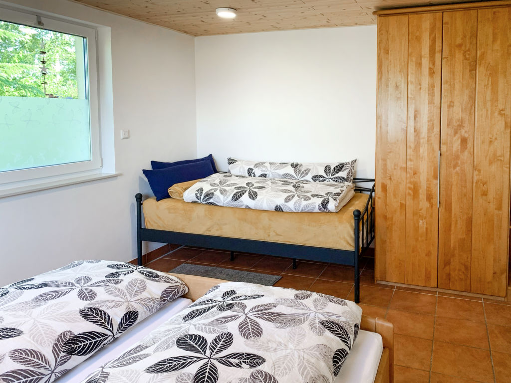 2-Zimmer-Wohnung 54 m2, im Erdgeschoss. Schön und gemütlich eingerichtet: Wohn-/Esszimmer 20 m2 mit Sat-TV (Flachbildschirm), Radio. 1 Zimmer 15 m2 mit 1 Bett (90 cm, Länge 200 cm), 1 Doppelbett (2 x 90 cm, Länge 200 cm). Kochnische (Backofen, Geschirrspüler, 4 Induktionskochplatten, Toaster, Wasserkocher, Mikrowelle, elektrische Kaffeemaschine). Bad/Dusche/WC. Terrasse. Terrassenmöbel, Gartengrill (mobil). Zur Verfügung: Haartrockner. Internet (Wireless LAN, gratis). Bitte beachten: Nichtraucher-Unterkunft. Rauchmelder.