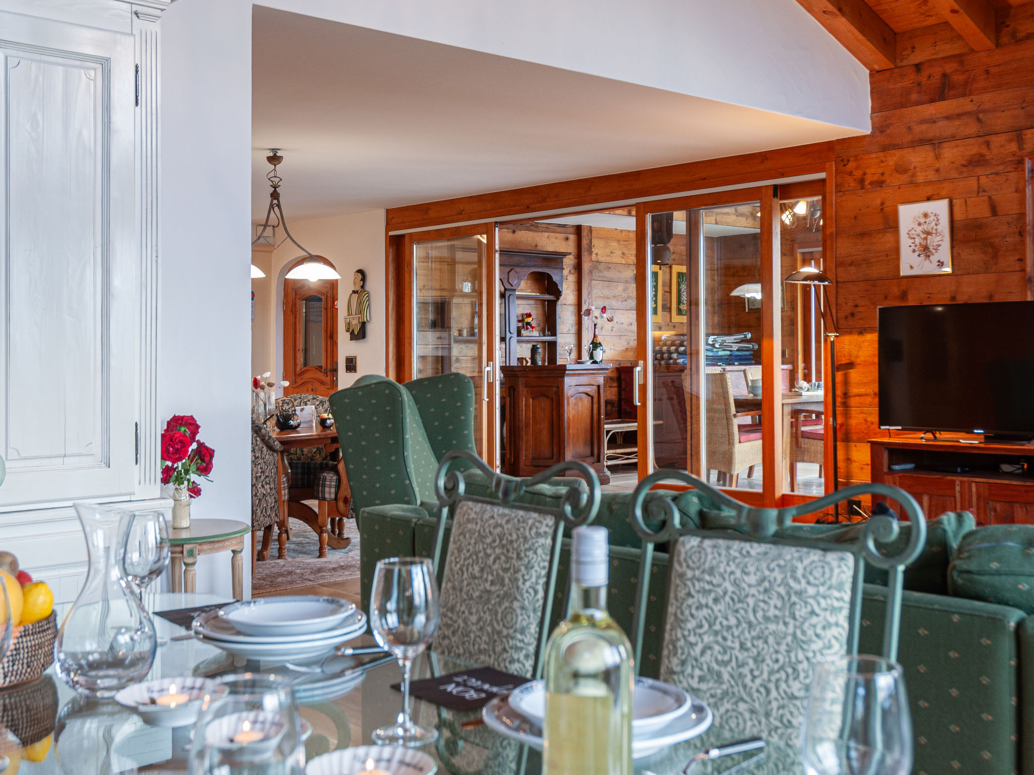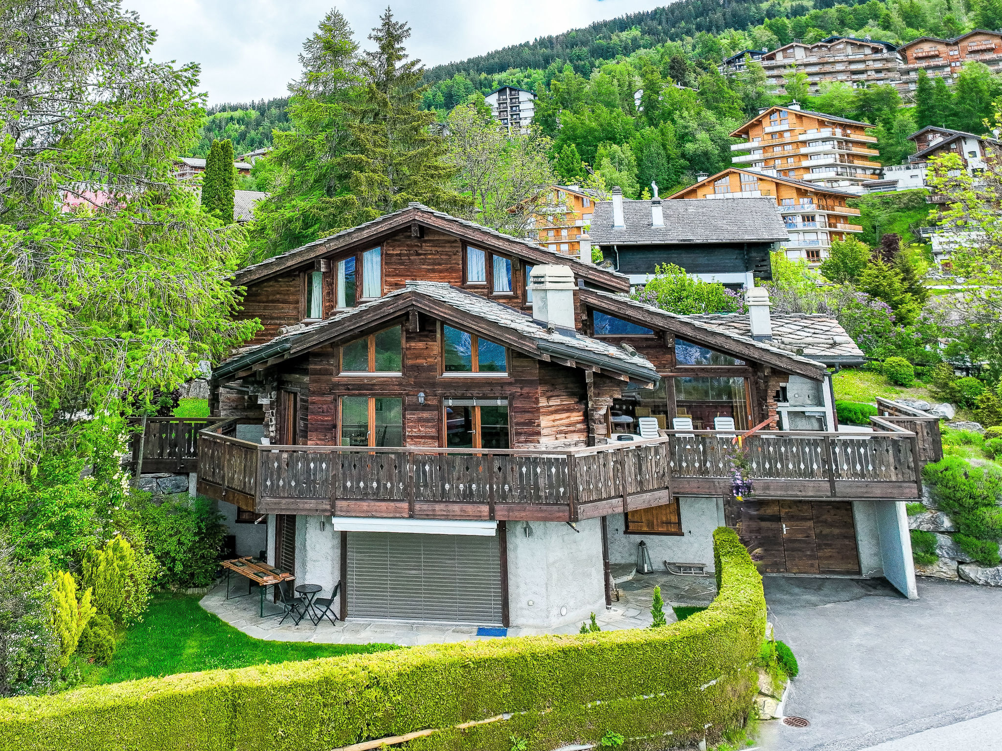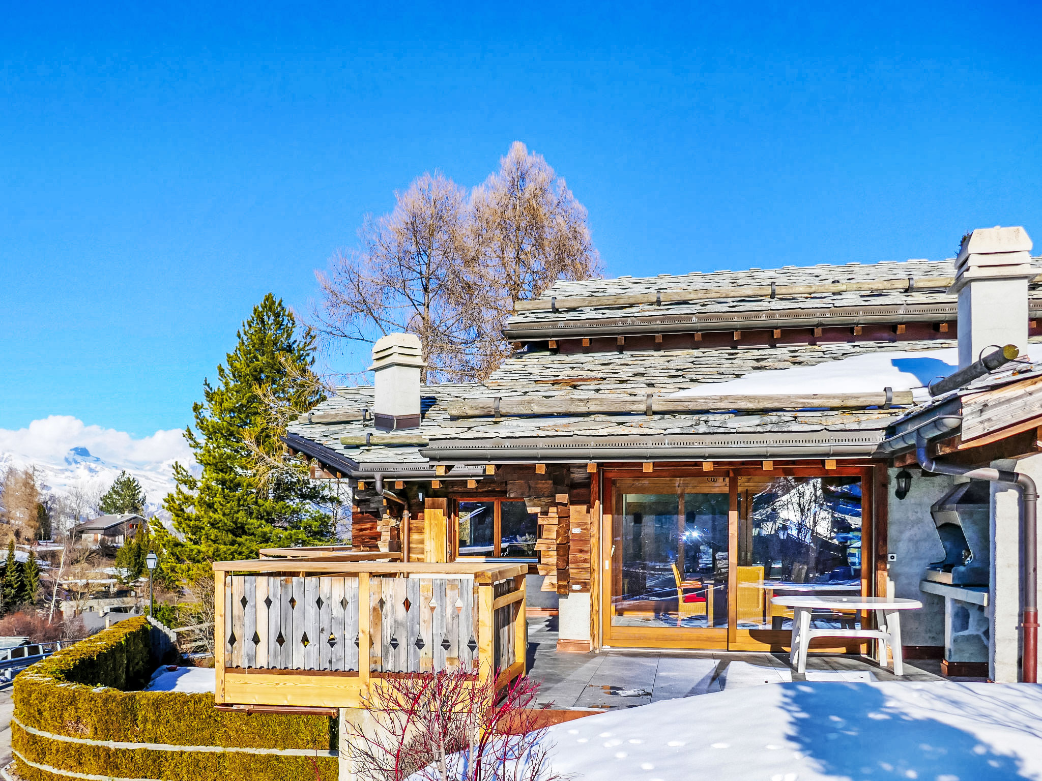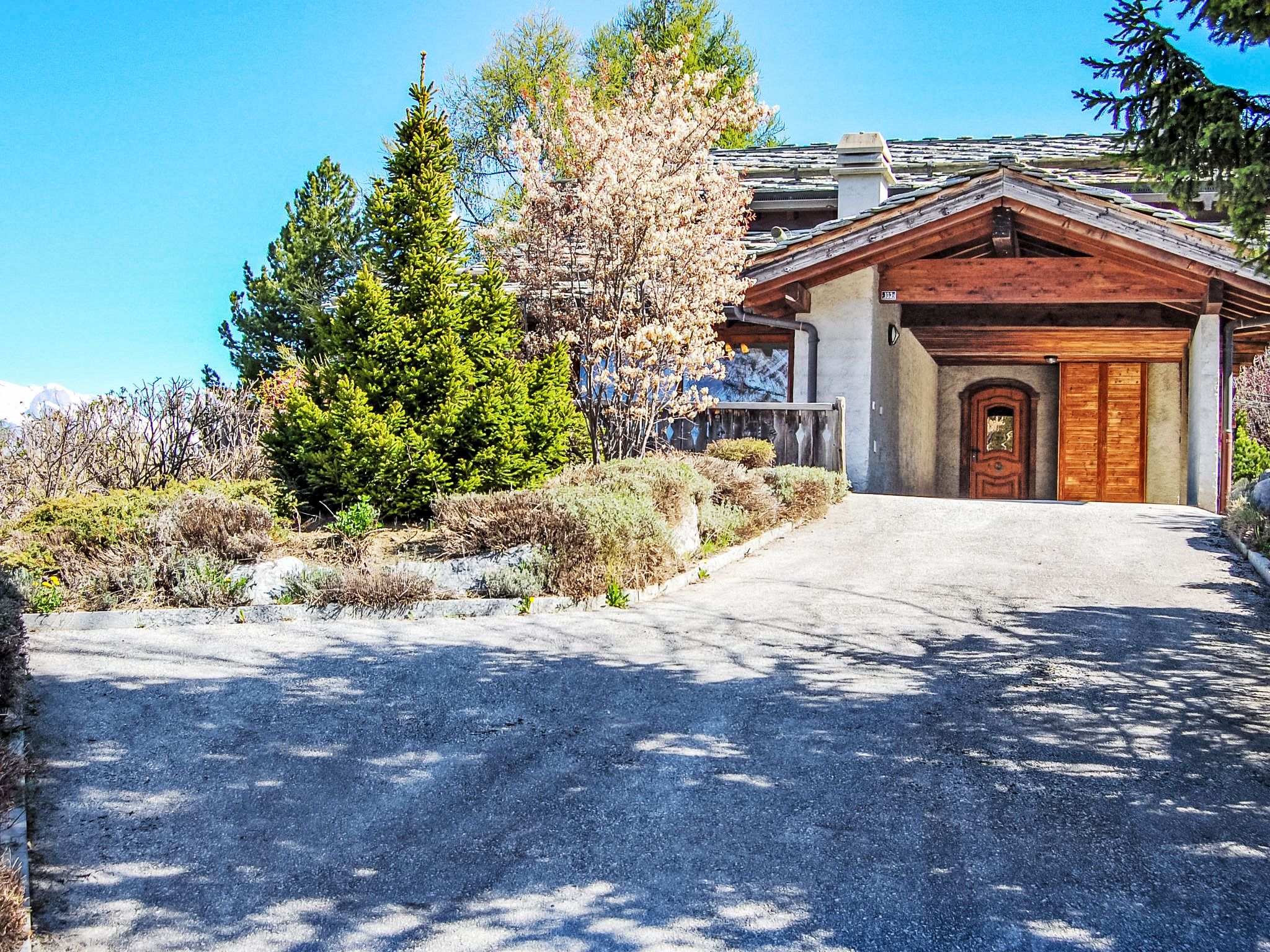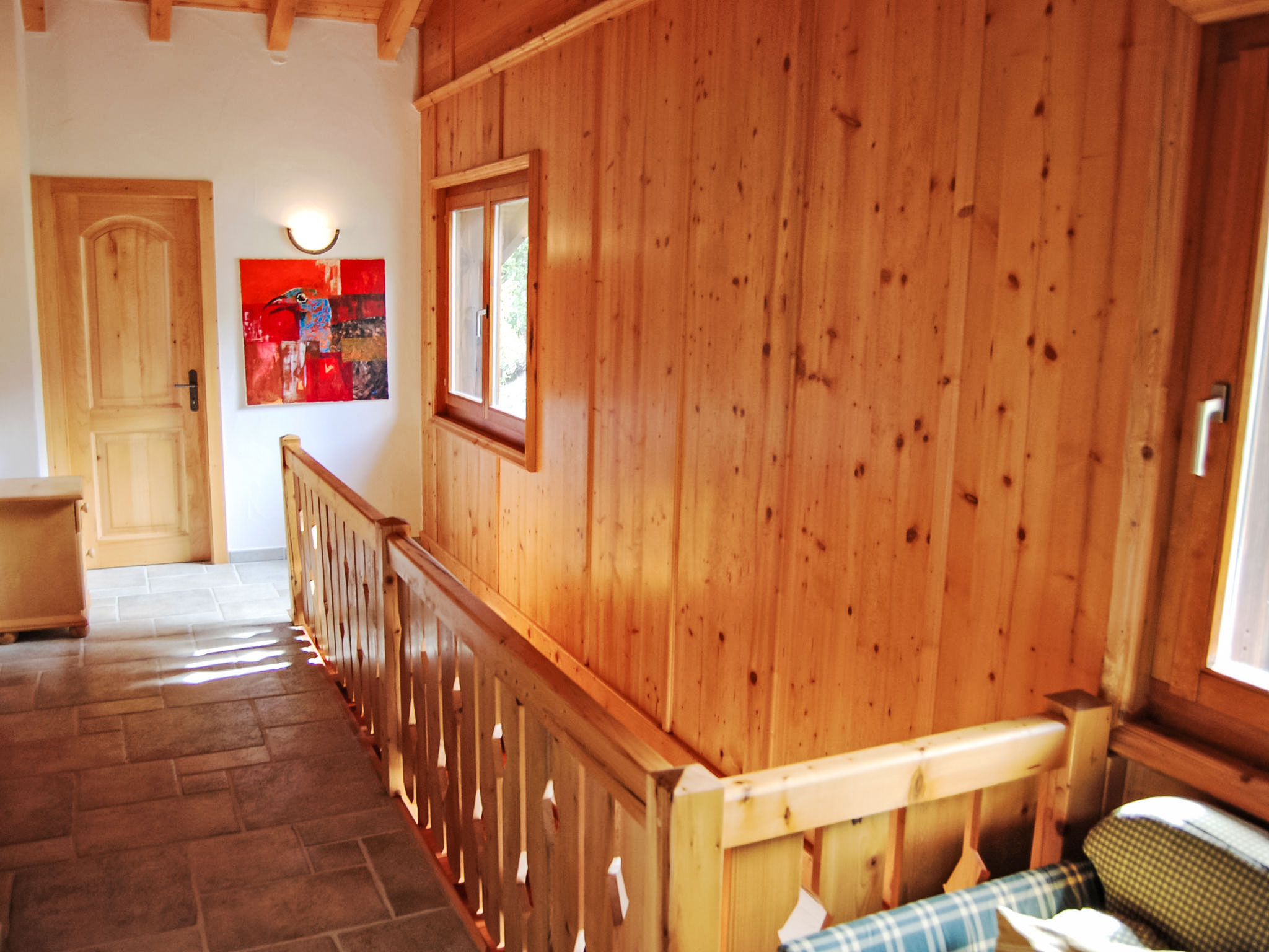 "Belle Vue", 4-Zimmer-Chalet 180 m2 auf 2 Stockwerken. Geräumig und hell, teilweise abgeschrägt, sehr komfortabel und schön eingerichtet: Eingang. Ausgang zur Veranda. Grosses Wohn-/Esszimmer mit Veranda, Schiebetür, Panoramafenster mit offenem Kamin, Sat-TV, Kabel-TV und Stereoanlage. Ausgang zum Balkon, zur Terrasse, Richtung Norden und Richtung Westen. 1 grosses Zimmer, Richtung Süden mit 1 franz. Bett (160 cm, Länge 200 cm), Bad/WC und Doppelwaschbecken. Ausgang zur Terrasse, Richtung Süden. Offene Küche (Backofen, Geschirrspüler, 4 Glaskeramikherd Platten, Mikrowelle, Tiefkühler, elektrische Kaffeemaschine, Kapseln für die Kaffeemaschine (Nespresso) extra, Racletteofen, Fondue Set (Chinoise)) mit Bar, Esstisch. Sep. WC. Obergeschoss: 1 Zimmer mit 1 franz. Bett (160 cm, Länge 200 cm), Dusche/WC. 1 Zimmer mit 2 Betten (80 cm, Länge 200 cm), 1 franz. Bett (160 cm, Länge 200 cm), Bad/WC und Doppelwaschbecken. Balkon 20 m2, Nordlage, grosse Terrasse 40 m2, Westlage, kleine Terrasse 15 m2, Südlage, Garten 180 m2, Ostlage. Terrassenmöbel, Gartengrill, Liegestühle (4). Sehr schöne Sicht auf die Berge. Zur Verfügung: Waschmaschine, Wäschetrockner, Bügeleisen, Kinderhochstuhl, Babybett. Internet (Wireless LAN, gratis). Parkplatz (3 Autos), Höhe 220 cm. Bitte beachten: Nichtraucher-Haus.