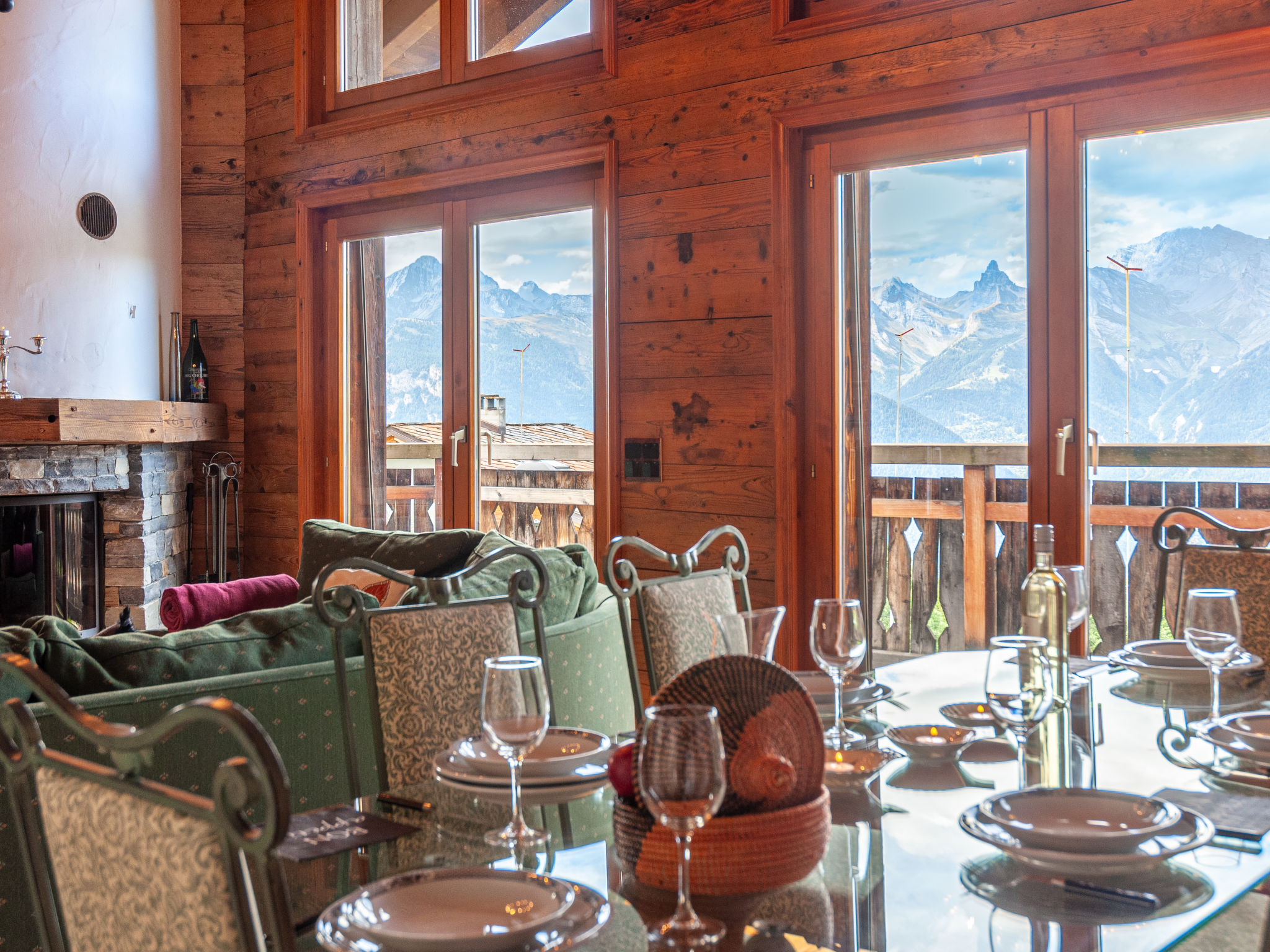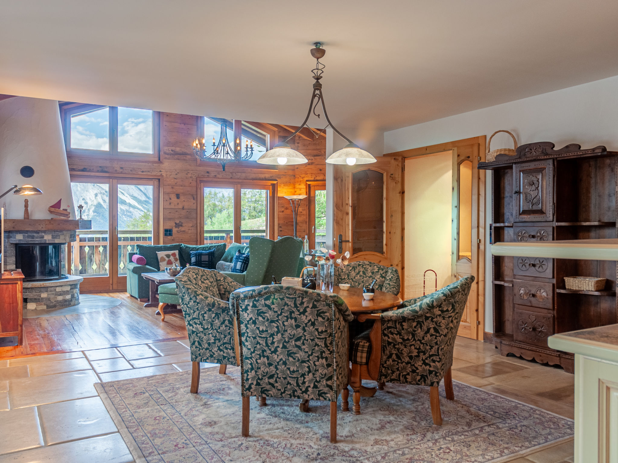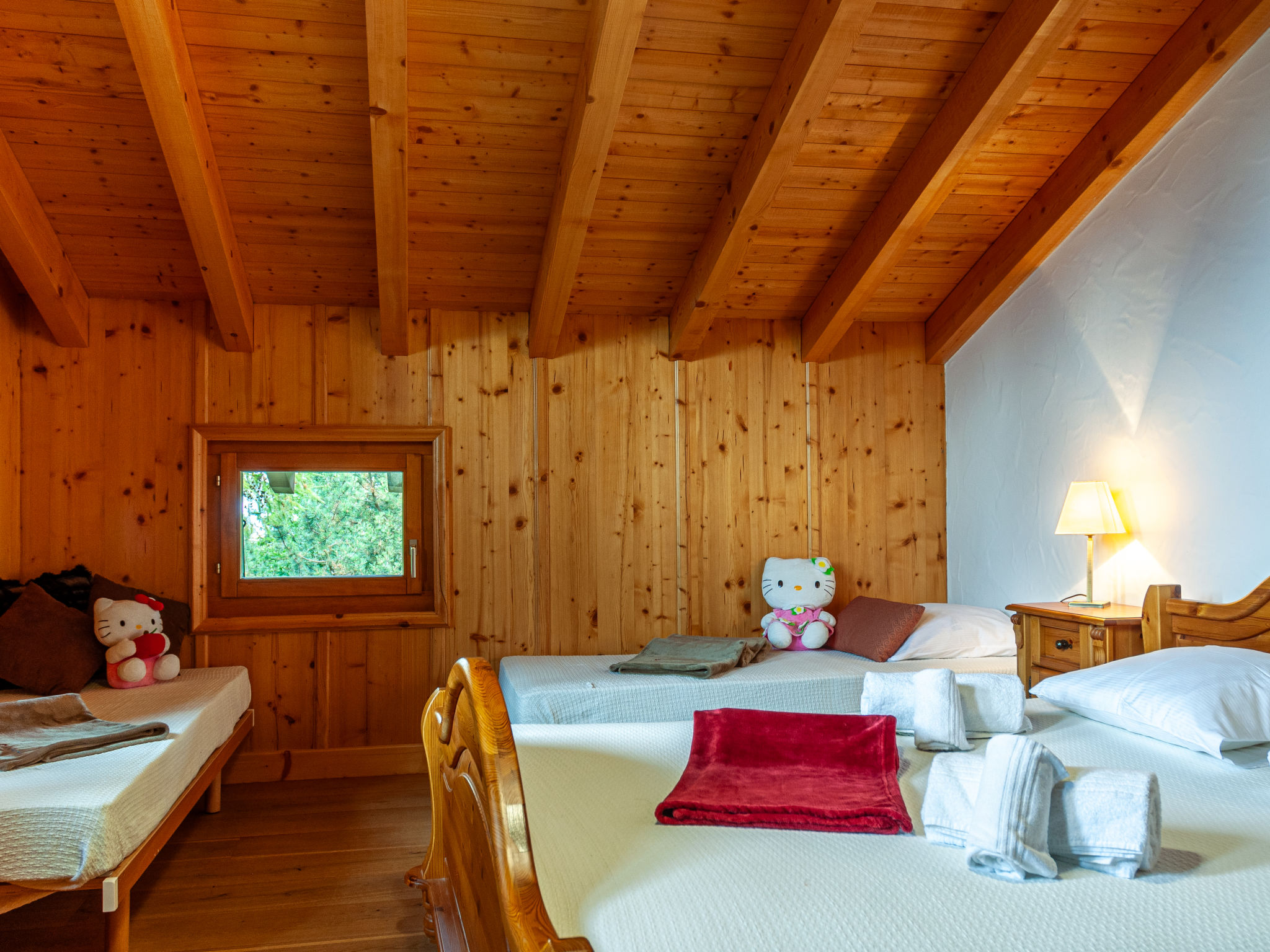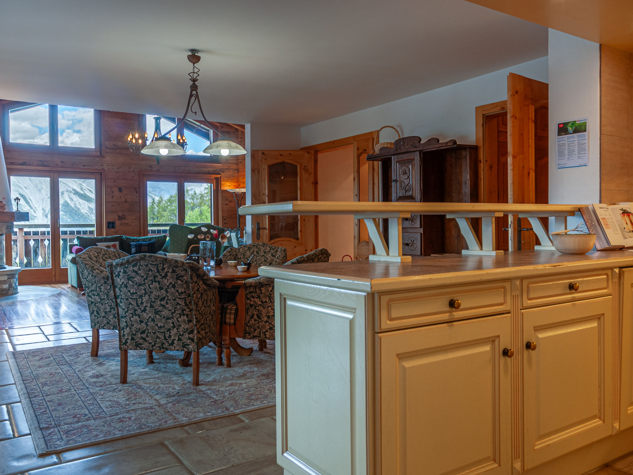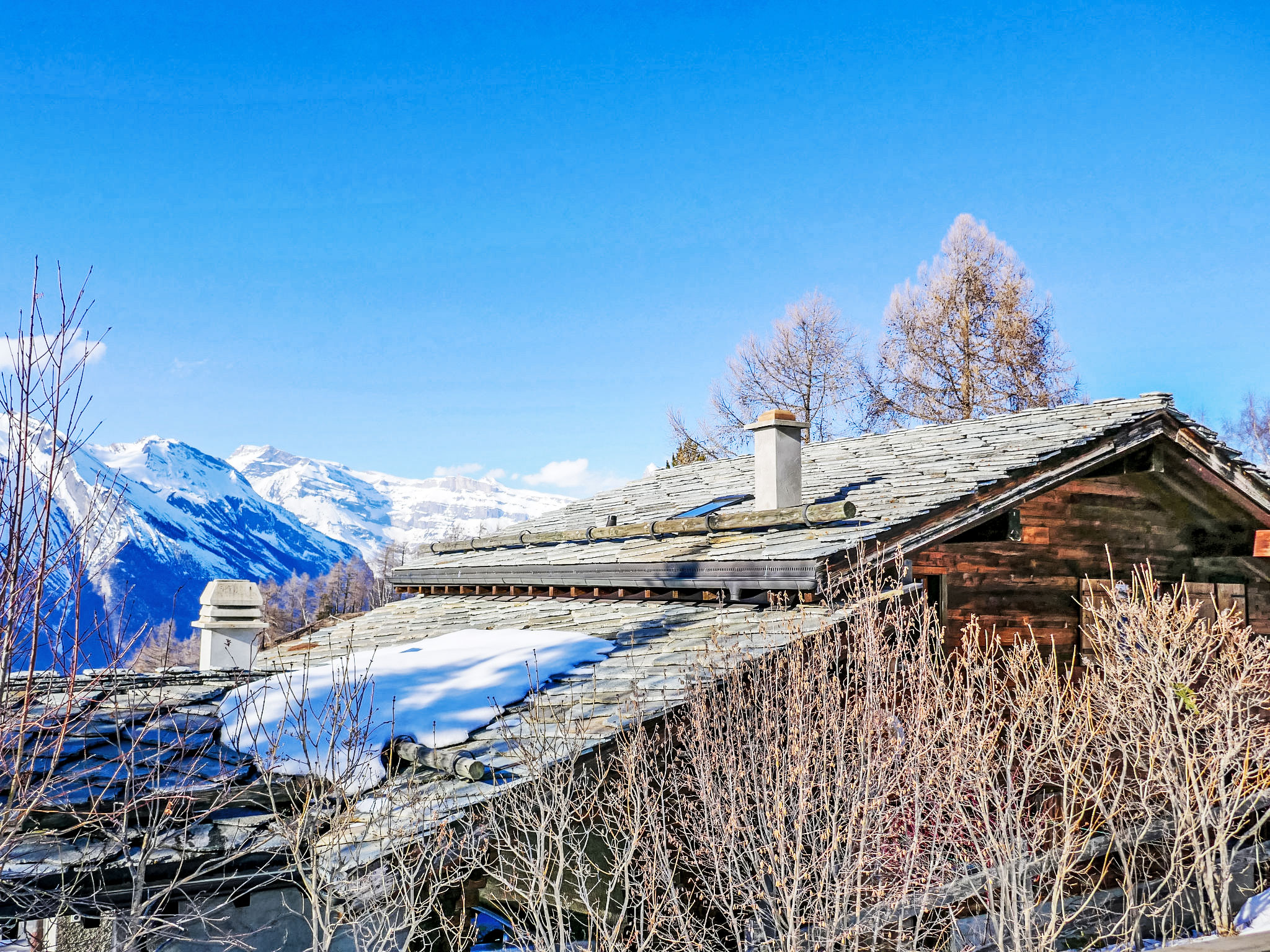 "Belle Vue", 4-Zimmer-Chalet 180 m2 auf 2 Stockwerken. Geräumig und hell, teilweise abgeschrägt, sehr komfortabel und schön eingerichtet: Eingang. Ausgang zur Veranda. Grosses Wohn-/Esszimmer mit Veranda, Schiebetür, Panoramafenster mit offenem Kamin, Sat-TV, Kabel-TV und Stereoanlage. Ausgang zum Balkon, zur Terrasse, Richtung Norden und Richtung Westen. 1 grosses Zimmer, Richtung Süden mit 1 franz. Bett (160 cm, Länge 200 cm), Bad/WC und Doppelwaschbecken. Ausgang zur Terrasse, Richtung Süden. Offene Küche (Backofen, Geschirrspüler, 4 Glaskeramikherd Platten, Mikrowelle, Tiefkühler, elektrische Kaffeemaschine, Kapseln für die Kaffeemaschine (Nespresso) extra, Racletteofen, Fondue Set (Chinoise)) mit Bar, Esstisch. Sep. WC. Obergeschoss: 1 Zimmer mit 1 franz. Bett (160 cm, Länge 200 cm), Dusche/WC. 1 Zimmer mit 2 Betten (80 cm, Länge 200 cm), 1 franz. Bett (160 cm, Länge 200 cm), Bad/WC und Doppelwaschbecken. Balkon 20 m2, Nordlage, grosse Terrasse 40 m2, Westlage, kleine Terrasse 15 m2, Südlage, Garten 180 m2, Ostlage. Terrassenmöbel, Gartengrill, Liegestühle (4). Sehr schöne Sicht auf die Berge. Zur Verfügung: Waschmaschine, Wäschetrockner, Bügeleisen, Kinderhochstuhl, Babybett. Internet (Wireless LAN, gratis). Parkplatz (3 Autos), Höhe 220 cm. Bitte beachten: Nichtraucher-Haus.