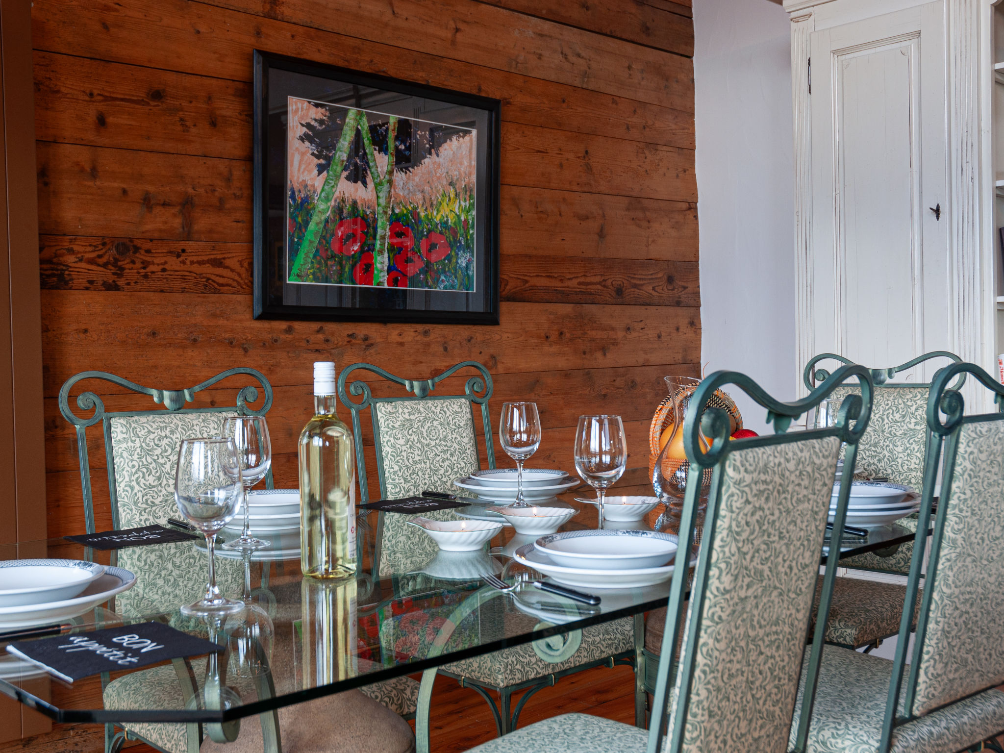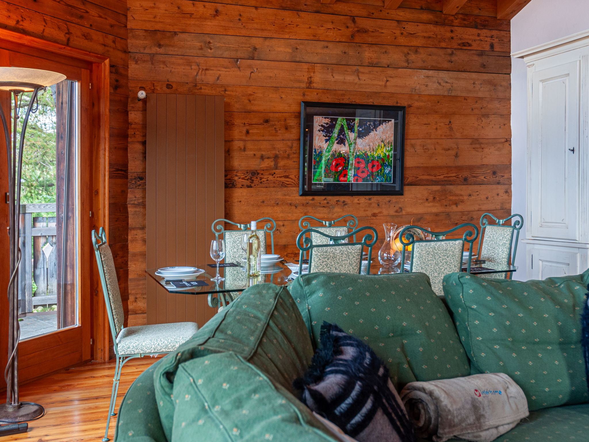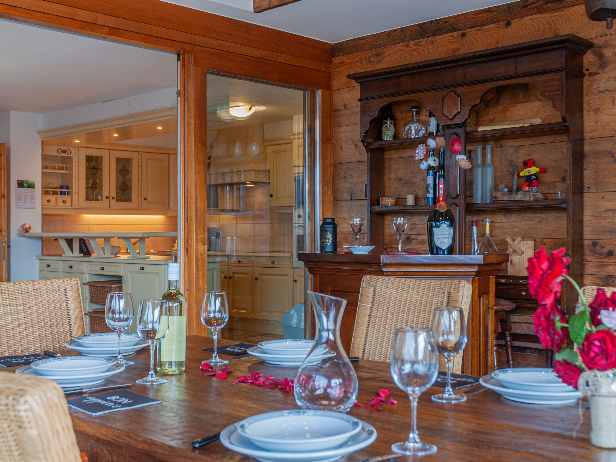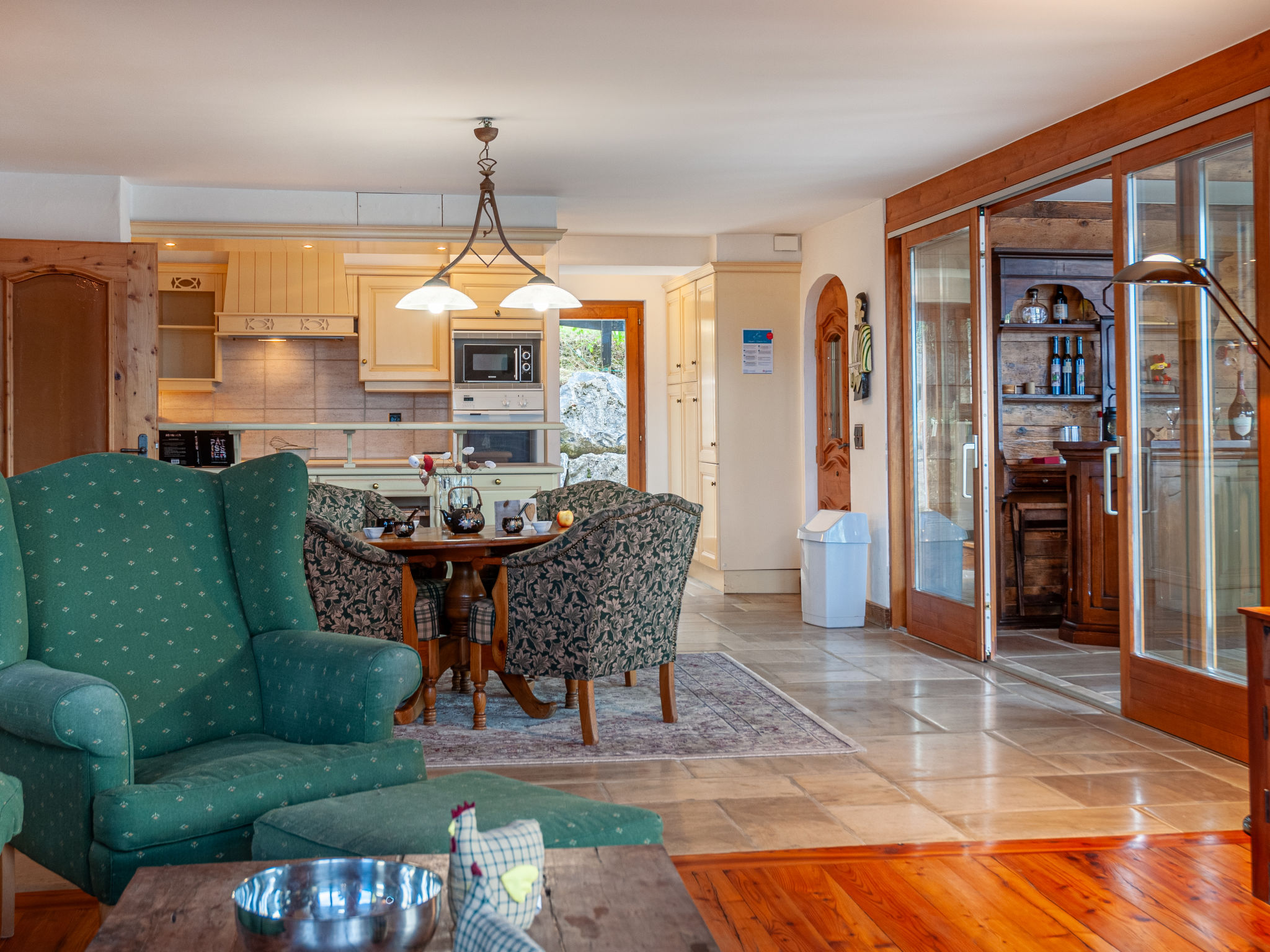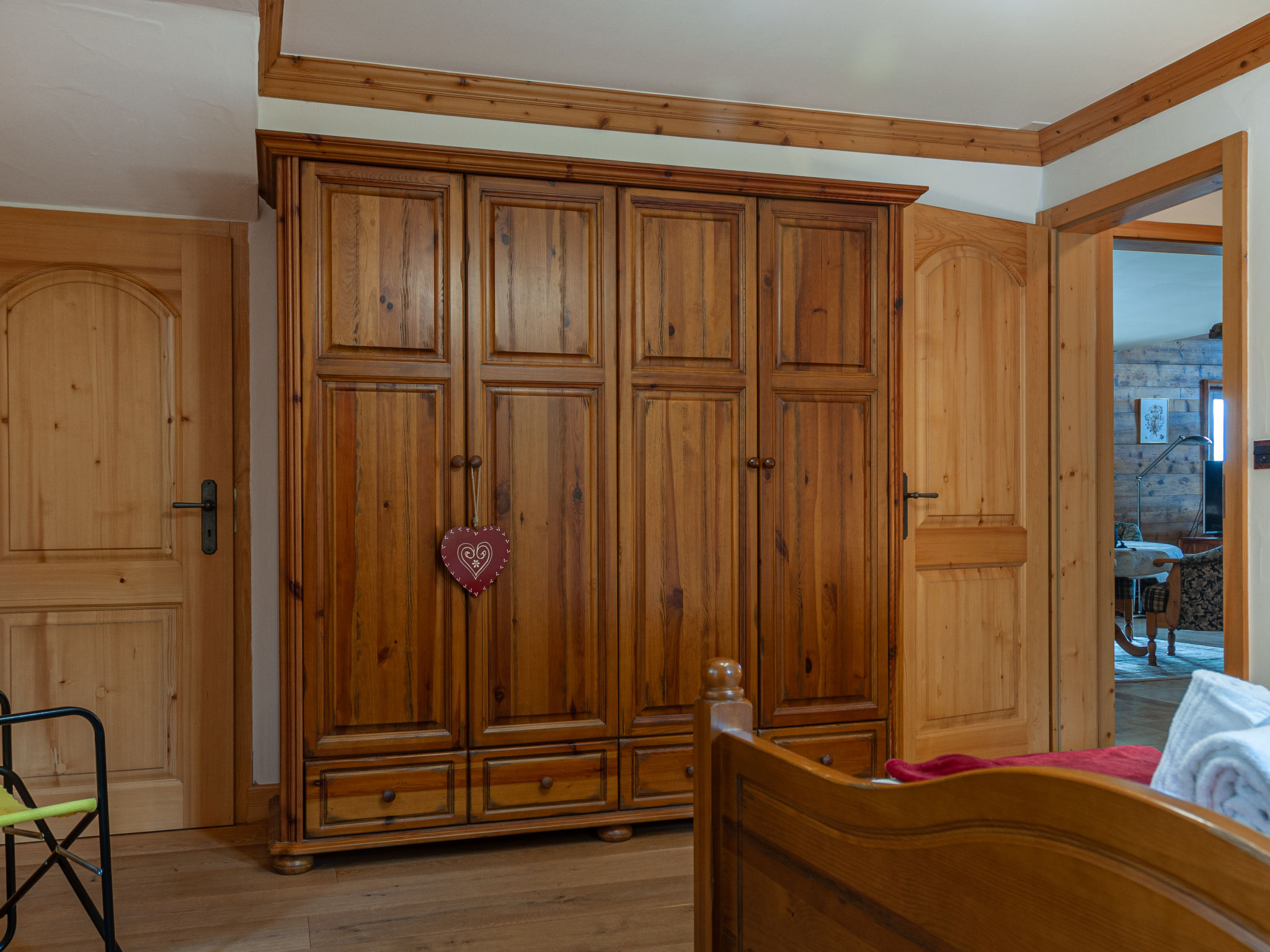 "Belle Vue", 4-Zimmer-Chalet 180 m2 auf 2 Stockwerken. Geräumig und hell, teilweise abgeschrägt, sehr komfortabel und schön eingerichtet: Eingang. Ausgang zur Veranda. Grosses Wohn-/Esszimmer mit Veranda, Schiebetür, Panoramafenster mit offenem Kamin, Sat-TV, Kabel-TV und Stereoanlage. Ausgang zum Balkon, zur Terrasse, Richtung Norden und Richtung Westen. 1 grosses Zimmer, Richtung Süden mit 1 franz. Bett (160 cm, Länge 200 cm), Bad/WC und Doppelwaschbecken. Ausgang zur Terrasse, Richtung Süden. Offene Küche (Backofen, Geschirrspüler, 4 Glaskeramikherd Platten, Mikrowelle, Tiefkühler, elektrische Kaffeemaschine, Kapseln für die Kaffeemaschine (Nespresso) extra, Racletteofen, Fondue Set (Chinoise)) mit Bar, Esstisch. Sep. WC. Obergeschoss: 1 Zimmer mit 1 franz. Bett (160 cm, Länge 200 cm), Dusche/WC. 1 Zimmer mit 2 Betten (80 cm, Länge 200 cm), 1 franz. Bett (160 cm, Länge 200 cm), Bad/WC und Doppelwaschbecken. Balkon 20 m2, Nordlage, grosse Terrasse 40 m2, Westlage, kleine Terrasse 15 m2, Südlage, Garten 180 m2, Ostlage. Terrassenmöbel, Gartengrill, Liegestühle (4). Sehr schöne Sicht auf die Berge. Zur Verfügung: Waschmaschine, Wäschetrockner, Bügeleisen, Kinderhochstuhl, Babybett. Internet (Wireless LAN, gratis). Parkplatz (3 Autos), Höhe 220 cm. Bitte beachten: Nichtraucher-Haus.
