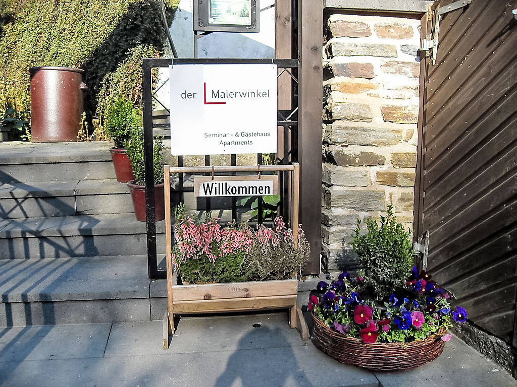 Appartementhaus "Der Malerwinkel". Am Ortsrand, 2 km vom Zentrum, ruhige Lage am Hang, direkt am Waldrand. Zur Mitbenutzung: Naturgarten. Sitzplatz, Terrasse. Im Hause: Zentralheizung. Parkplatz beim Haus. Einkaufsgeschäft 2 km, Lebensmittelgeschäft 2 km, Restaurant 1 km, Bushaltestelle 2 km, Freibad 15 km, Hallenbad 10 km. Wanderwege ab Haus 10 m. Zugang zu den Wohnungen über Aussenstufen.