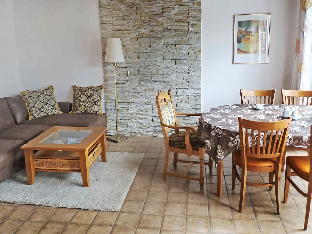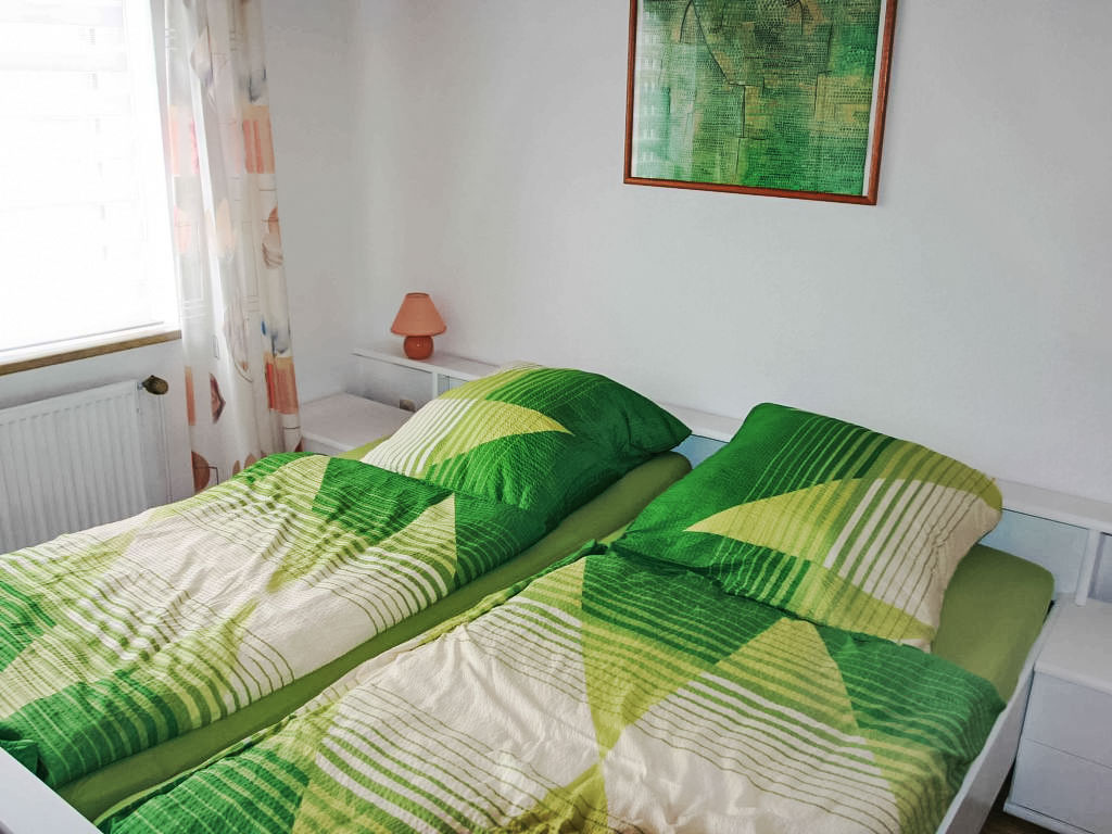 "Adda", 5-Zimmer-Doppelhaushälfte 105 m2 auf 2 Stockwerken, im Erdgeschoss. Geschmackvoll eingerichtet: Wohn-/Esszimmer 15 m2 mit Sat-TV (Flachbildschirm). Ausgang zur Terrasse. 1 Zimmer 10 m2 mit 1 Doppelbett (2 x 100 cm, Länge 200 cm). 1 Zimmer 8 m2 mit 1 Bett (90 cm, Länge 200 cm). Offene Küche 7 m2 (Backofen, Geschirrspüler, 4 Glaskeramikherd Platten, Toaster, Wasserkocher, Mikrowelle, elektrische Kaffeemaschine). Dusche/WC. Obergeschoss: 1 Zimmer 19 m2 mit 1 Doppelbett (2 x 100 cm, Länge 200 cm). Durchgangszimmer 9 m2 mit 1 Diwanbett (110 cm, Länge 200 cm), Sat-TV (Flachbildschirm). Bad/WC. Terrassenmöbel. Zur Verfügung: Waschmaschine, Kinderhochstuhl. Internet (Wireless LAN, gratis). Bitte beachten: Nichtraucher-Haus. Maximal 1 Haustier/Hund erlaubt. Die Fenster im Erdgeschoss verfügen über Aussenrollos. Badezimmer im Erdgeschoss mit Fussbodenheizung.