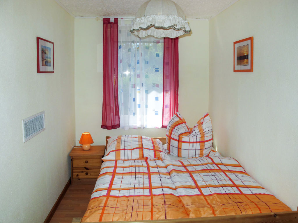 3-Zimmer-Haus 55 m2, im Erdgeschoss. Zweckmässig und mit viel Holz eingerichtet: Wohnzimmer mit Schwedenofen und Sat-TV (Flachbildschirm), Stereoanlage. Durchgangszimmer mit 1 Doppelbett. 1 Zimmer mit 1 franz. Bett (130 cm, Länge 190 cm). Küche (Backofen, Geschirrspüler, 4 Glaskeramikherd Platten, Toaster, Wasserkocher, elektrische Kaffeemaschine) mit Esstisch. Dusche/WC. E-Heizung. Terrasse 12 m2, überdacht. Terrassenmöbel, Gartengrill (mobil). Zur Verfügung: Holz (extra). Bitte beachten: Nichtraucher-Haus. Maximal 2 kleine Haustiere/Hunde erlaubt. Rauchmelder.