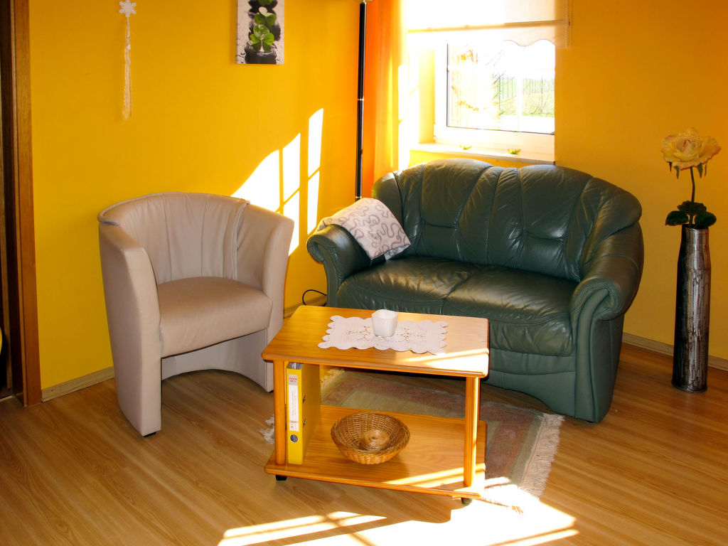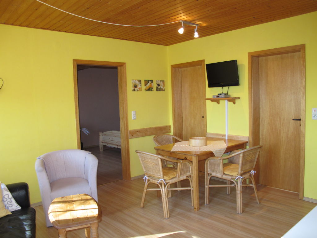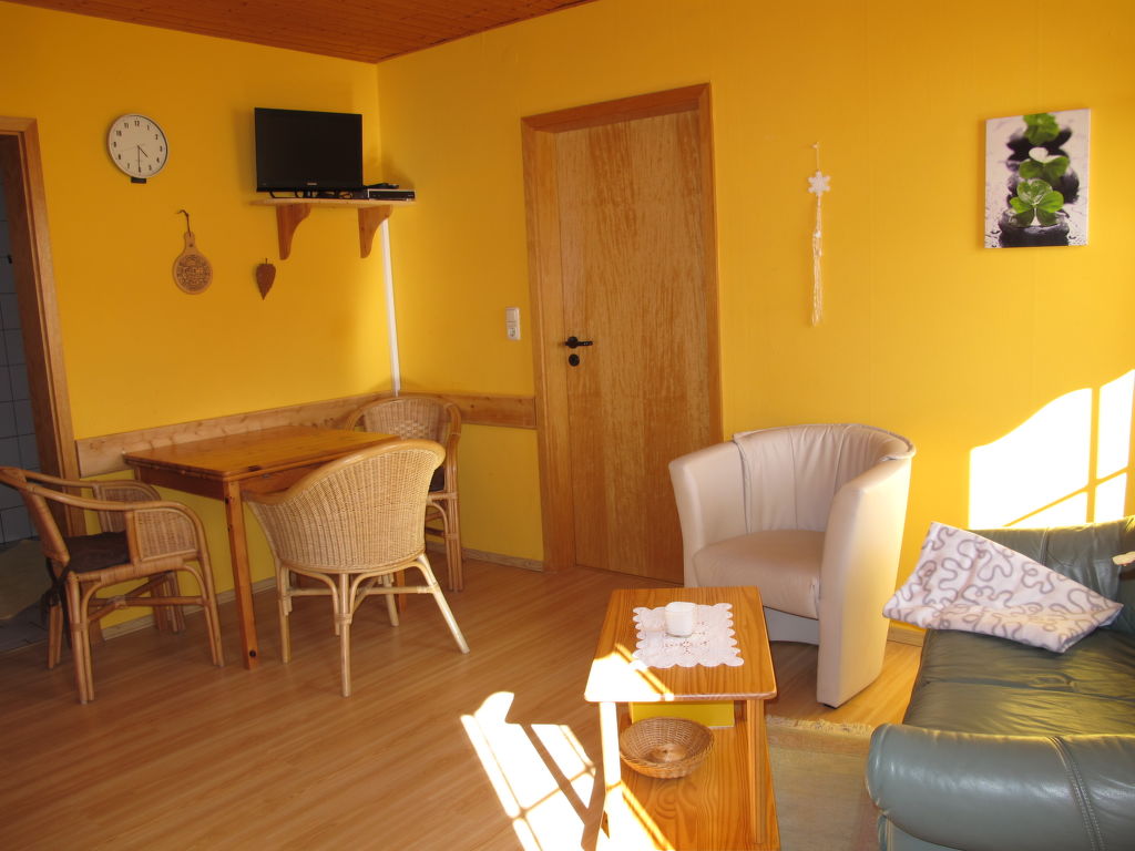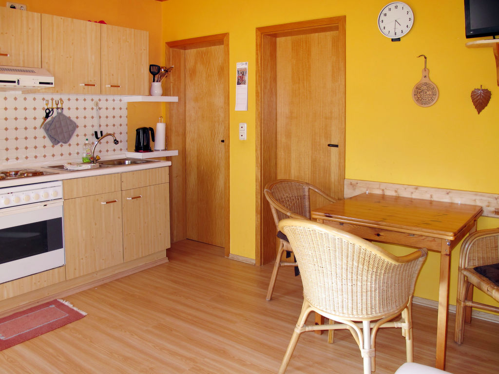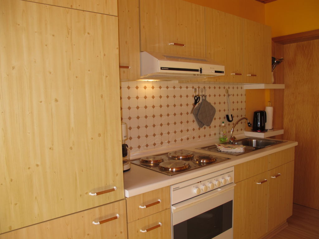 2-Zimmer-Wohnung 55 m2, im Erdgeschoss. Hell, gemütlich eingerichtet: Wohn-/Esszimmer mit Sat-TV, Radio und DVD. 1 Zimmer mit 1 Bett und 1 Doppelbett. Offene Küche (4 Kochplatten, Backofen, Toaster, Wasserkocher, elektrische Kaffeemaschine). Dusche/WC. Abstellkammer. Zur Verfügung: Kinderhochstuhl, Babybett. Internet (Wireless LAN, gratis). Bitte beachten: Nichtraucher-Unterkunft. 1 Haustier/Hund erlaubt.