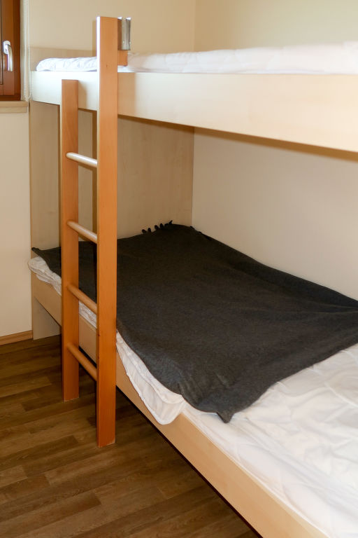 3-Zimmer-Bungalow 40 m2. Modern eingerichtet: Wohn-/Esszimmer mit Esstisch, Sat-TV, Radio und DVD. Ausgang zur Terrasse. 1 Doppelzimmer. 1 kleines Zimmer mit 1 x 2 Etagenbetten. Offene Küche (4 Flammen, Toaster, Wasserkocher, Mikrowelle, elektrische Kaffeemaschine). Dusche/WC. Fussbodenheizung. Terrasse. Terrassenmöbel. Zur Verfügung: Kinderhochstuhl, Babybett. Internet (Wireless LAN, gratis). Bitte beachten: Nichtraucher-Unterkunft. 1 Haustier/Hund erlaubt. Rauchmelder, Feuerlöscher.