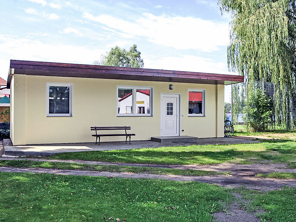 Bungalow "Goetheallee". Ruhige Lage, 20 m vom See. Zur Mitbenutzung: Grundstück 2'200 m2, Wiese. Grill. 100 m lange Zufahrt (Naturweg). Parkplatz beim Haus. Einkaufsgeschäft 250 m, Supermarkt 500 m, Restaurant 100 m, Bushaltestelle 500 m, Bahnstation "Güstrow" 20 km, Hallenbad 20 km. Golfplatz 10 km. Bekannte Seen in der Umgebung sind gut erreichbar: Krakower See 20 m. Bitte beachten: Fahrzeug empfohlen. Öffentliche Badeanstalt 1.2 km. Der Bungalow befindet sich am Krakower See auf dem Gelände des örtlichen Rudersportvereines. Zur gemeinschaftlichen Nutzung bieten sich der vereinseigene Bootssteg mit Bademöglichkeit und kostenlosem Ruderboot an.