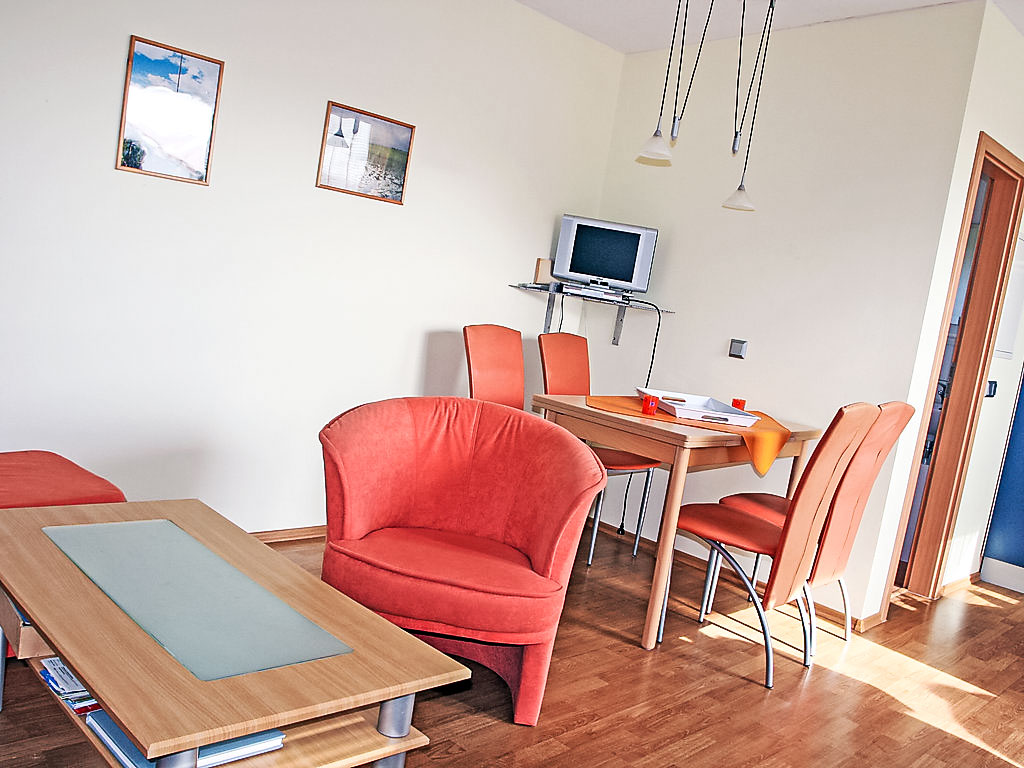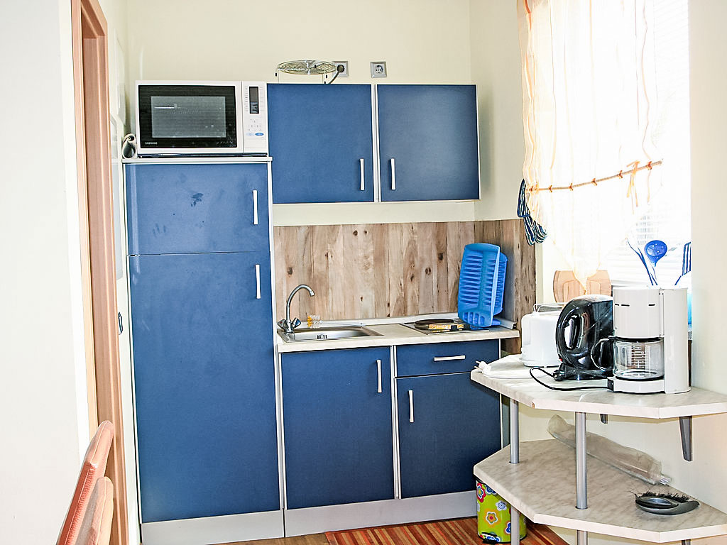 2-Zimmer-Bungalow 40 m2, im Erdgeschoss. Modern eingerichtet: Wohn-/Esszimmer mit Sat-TV, Radio und CD. 1 Zimmer mit 1 x 2 Etagenbetten, 1 Doppelbett. Kochnische (2 Kochplatten, Toaster, Wasserkocher, Mikrowelle, Tiefkühler, elektrische Kaffeemaschine). Dusche/WC. E-Heizung. Terrasse. Terrassenmöbel. Bitte beachten: Nichtraucher-Haus.