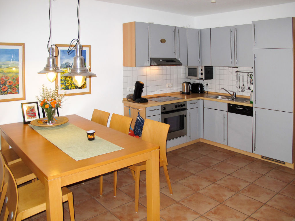 "Kap Arkona", 3-Zimmer-Wohnung 68 m2, im Erdgeschoss. Komfortabel und geschmackvoll eingerichtet: Wohn-/Esszimmer mit Esstisch, Sat-TV, Stereoanlage und DVD. Ausgang zur Terrasse. 1 Zimmer mit 1 Doppelbett. 1 Zimmer mit 2 Betten. Offene Küche (Backofen, Geschirrspüler, 4 Glaskeramikherd Platten, Toaster, Wasserkocher, Mikrowelle, elektrische Kaffeemaschine). Dusche/WC. G-Heizung. Terrasse teilweise überdacht. Terrassenmöbel, Abstellkammer. Zur Verfügung: Kinderhochstuhl, Babybett. Internet (Wireless LAN, gratis). Garage (1 Auto), Höhe 200 cm. Bitte beachten: Nichtraucher-Unterkunft. Rauchmelder, Feuerlöscher.