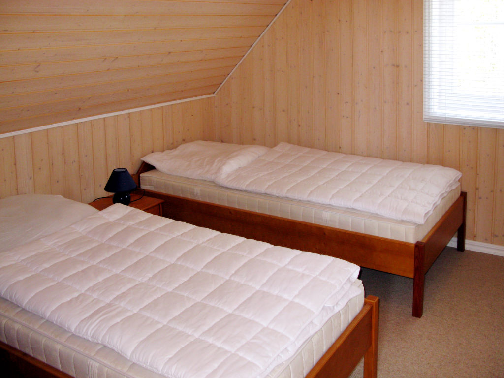 "Bornholm", 4-Zimmer-Reihenhaus 103 m2 auf 2 Stockwerken. Objekt geeignet für 6 Erwachsene. Geschmackvoll und mit viel Holz eingerichtet: Obergeschoss: (Aussentreppe) Wohn-/Esszimmer mit Schwedenofen, Kabel-TV, Stereoanlage und DVD. Ausgang zur Terrasse. Abgeschrägte, offene Galerie mit 1 Doppeldiwanbett (130 cm, Länge 200 cm). 1 Doppelzimmer. Offene Küche (Backofen, Geschirrspüler, 4 Glaskeramikherd Platten, Toaster, Wasserkocher, Mikrowelle, elektrische Kaffeemaschine). Dusche/WC, Whirlbadewanne, Sauna. 2. Obergeschoss: 1 abgeschrägtes Doppelzimmer. 1 abgeschrägtes Zimmer mit 2 Betten. Dusche/WC. E-Heizung, Fussbodenheizung. Teppichboden. Terrasse. Terrassenmöbel, Abstellkammer. Zur Verfügung: Waschmaschine, Kinderhochstuhl, Babybett (extra). Parkplatz beim Haus. Bitte beachten: Nichtraucher-Haus. Maximal 2 Haustiere/Hunde erlaubt. Rauchmelder. Im Erdgeschoss: separate Ferienwohnung DE9007.603.4.