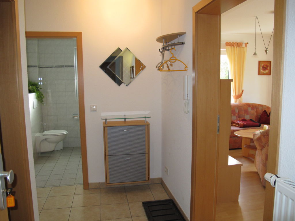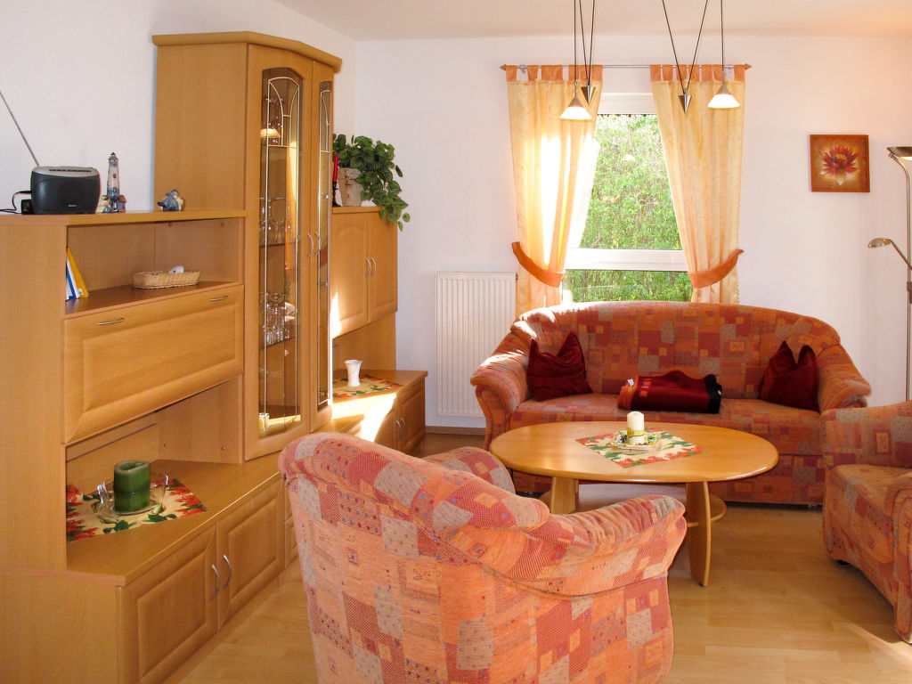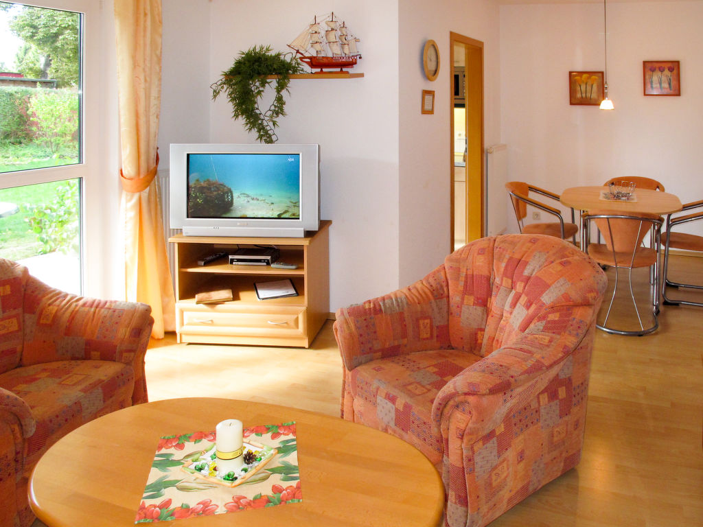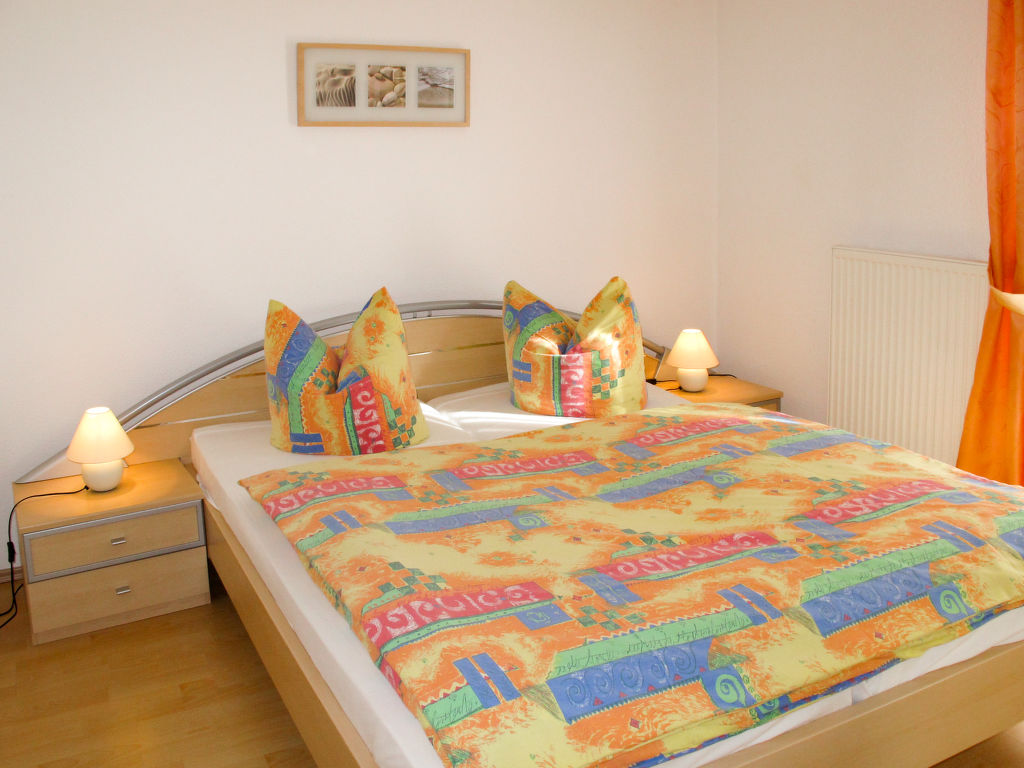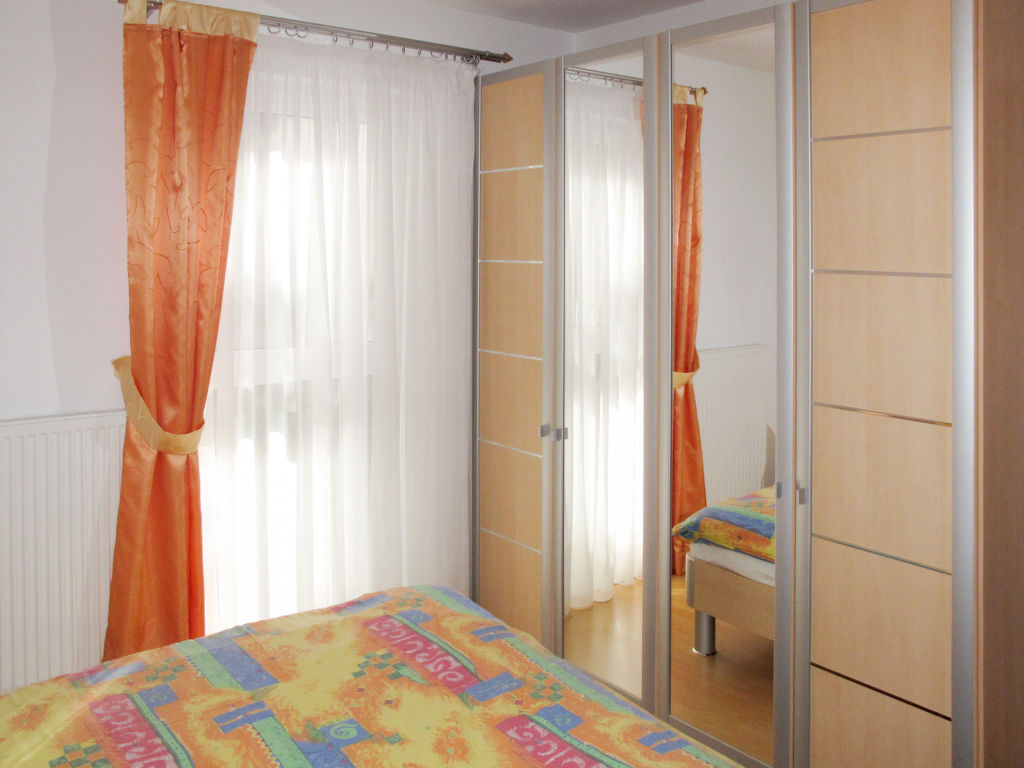 2-Zimmer-Wohnung 60 m2, im Erdgeschoss. Hell, geschmackvoll und gemütlich eingerichtet: Wohn-/Schlafzimmer mit 1 Doppeldiwanbett (160 cm, Länge 200 cm), Esstisch, Sat-TV und Radio. Ausgang zur Terrasse. 1 Doppelzimmer. Küche (Backofen, Geschirrspüler, 4 Glaskeramikherd Platten, Toaster, Wasserkocher, Mikrowelle, elektrische Kaffeemaschine). Ausgang zur Terrasse. Dusche/WC. G-Heizung. Terrasse 8 m2 teilweise überdacht. Terrassenmöbel. Zur Verfügung: Kinderhochstuhl, Babybett. Internet (Wireless LAN, gratis). Parkplatz (1 Auto). Bitte beachten: Nichtraucher-Unterkunft. Rauchmelder.